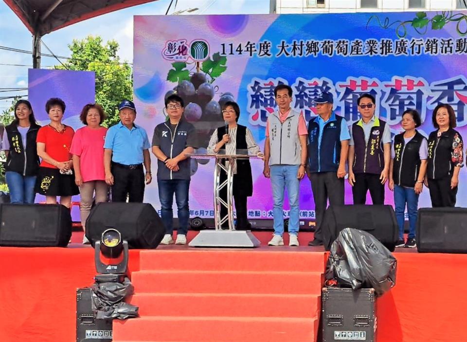 彰化縣大村鄉農會於今(7)日上午在大村火車站後站廣場辦理「114年度大村鄉葡萄產業推廣行銷暨食農教育採果體驗農特產品展售(示),米食推廣活動」,彰化縣長王惠美、大村鄉長賴志銘、大村鄉農會理事長吳榮杰、常務監事吳雨水、總幹事廖瑞樺、農業部農糧署中區分署長陳尚仁等人與會。王縣長表示,彰化是葡萄的故鄉,彰化縣巨峰葡萄種植面積約1,100公頃,全國有將近一半的巨峰葡萄來自彰化,所以每二顆葡萄來自彰化,而大村鄉的面積佔約400公頃,超過全縣的三分之一,平均每4顆葡萄就有1顆來自大村,每年5-8月是葡萄成熟時,葡萄Q彈有勁,好吃又甜,歡迎大家一起來吃在地、享當季! 今天的活動與大村火車站結合,鼓勵民眾搭乘火車前來大村鄉旅遊,不但能節能減碳,還可以用票根換取消費抵用券,抵用券有1,600張,歡迎各位趁這個機會支持彰化在地的優質農產品。農會也不惜重資準備了相當多美味的農特產品給大家品嘗,像是各式各樣的葡萄和米食品嘗,還有可愛的葡萄公仔彩繪活動,千萬不要錯過! 下午3點開始,活動會交給大村鄉公所接棒,從單車逍遙遊、農產文創市集,到壓軸的仲夏群星演唱會,節目非常精彩。由樂天女孩啦啦隊打頭陣,還有陳孟賢、金曲歌后張秀卿,還有大家最期待的男神畢書盡輪番上台,整個活動內容豐富,適合全家大小一起來參加,絕對會讓大家留下難忘的夏日時光。 與會貴賓有立委陳素月、縣議員曹嘉豪、張欣倩、農業部農糧署中區分署長陳尚仁、大村鄉長賴志銘、大村鄉民代表會主席黃錫暉、大村鄉農會理事長吳榮杰、常務監事吳雨水、總幹事廖瑞樺、彰化縣農會總幹事呂佩臻、常務監事黃正盛、縣府農業處長郭至善、副處長蕭麗玲、各農會代表、各級民意代表及地方仕紳等。