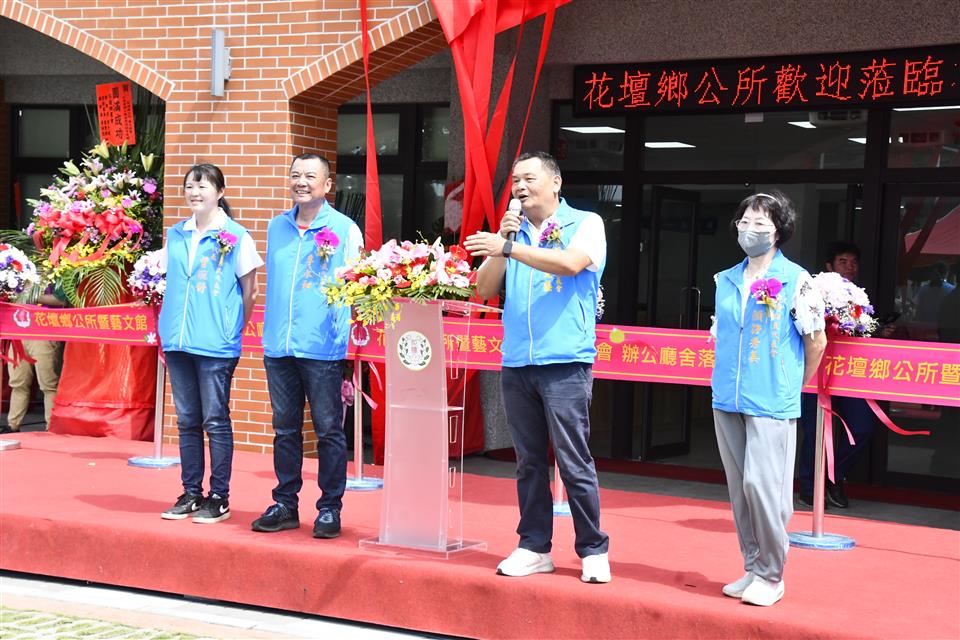 花壇鄉新地標-「花壇鄉公所、藝文館暨代表會辦公廳舍」,座落於花壇國中對面花壇鄉彰員路二段586號,緊鄰花壇鄉立幼兒園,於今(13)日正式落成啟用,彰化縣長王惠美、花壇鄉長顧勝敏、花壇鄉民代表會主席沈文盛及議員、民代與會剪綵揭牌,將於明(7/14)日起正式對外辦公,歡迎民眾蒞臨洽公、欣賞藝文活動。 王縣長表示,過去,是花壇老舊廢棄營區,現在,經過花壇鄉公所鄉長顧勝敏團隊的用心改造後,變身三合一新地標,感謝公所的用心,代表會的支持,以及議長謝典林及議員們對預算的支持,本案工程經費2億4,000萬餘元,縣府補助1,000萬元的室內裝修費,緊鄰花壇鄉立幼兒園,有藝文館,1至2樓為藝術場域,包含可容納500至1,000人的大型展示空間及靜態展覽區,還可以辦理表演及演講等活動;3至4樓為行政區域,有花壇鄉公所及鄉民代表會、調解會的辦公室。花壇不只是茉莉花的故鄉,人文薈萃,具特色,希望藉由這個場域能夠繼續把花壇發光發熱。 花壇鄉長顧勝敏表示,花壇鄉公所在民國60年興建,後來變成危樓,但是卻遲遲無法新建一棟公所,他上任時,公所預算只有1千3百多萬元,所以要新建一棟公所是不可能的,他上任簽的第一份文件是這棟大樓的PCM規劃,感謝公所同仁的打拚,代表會的支持,建設最難的就是土地,感謝時任鄉長曾文勳的協助以及所有對於這片土地爭取及付出的人,並感謝縣府的支持,讓他任內可以新建一棟公所,讓鄉民來公所、代表會洽公時有一個新的辦公環境,不僅停車方便、出入也安全,因此未來如果有要來花壇公所洽公的民眾,記得來到新的辦公大樓洽公,位置就位於花壇國中旁邊、過去的花壇舊營區。 花壇鄉民代表會主席沈文盛表示,感謝花壇鄉公所團隊的用心,鄉長從上一任開始就一步一步規劃新建公所,且不單只是嘴上說說,包括土地如何取得、如何申請、經費從何而來等問題,都身體力行。感謝所有貴賓、鄉民對花壇公所的支持,共同見證本次落成典禮。 與會貴賓有縣議員顧黃水花、黃柏瑜、莊陞漢、吳韋達、黃千宴、縣議員陳銌銌服務團隊、花壇鄉長顧勝敏、彰化市長林世賢、前花壇鄉長黃家本、顧金土、花壇鄉民代表會主席沈文盛、花壇鄉調解委員會主席陳海連、鹿港鎮民代表會主席王炫斐、芳苑鄉民代表會主席陳禮模、花壇鄉農會理事長陳榮和、總幹事顧碧琪、彰化縣文化局長張雀芬、縣府秘書黃智裕、校長、各級民意代表、地方仕紳。