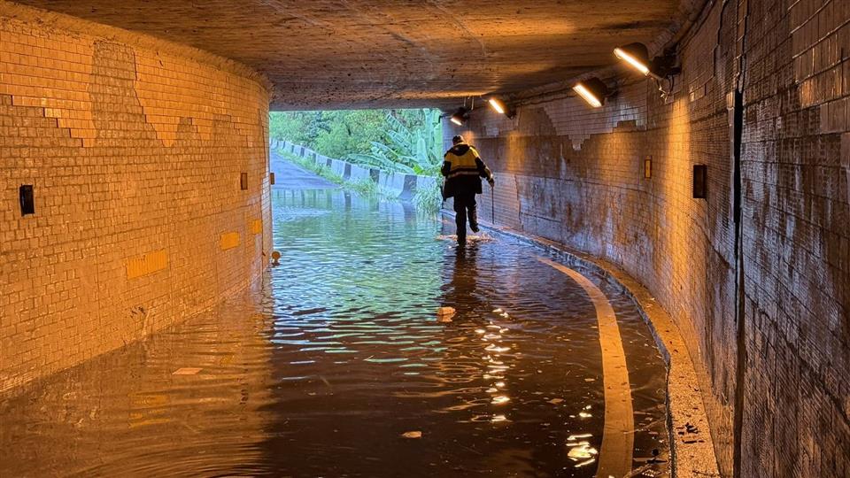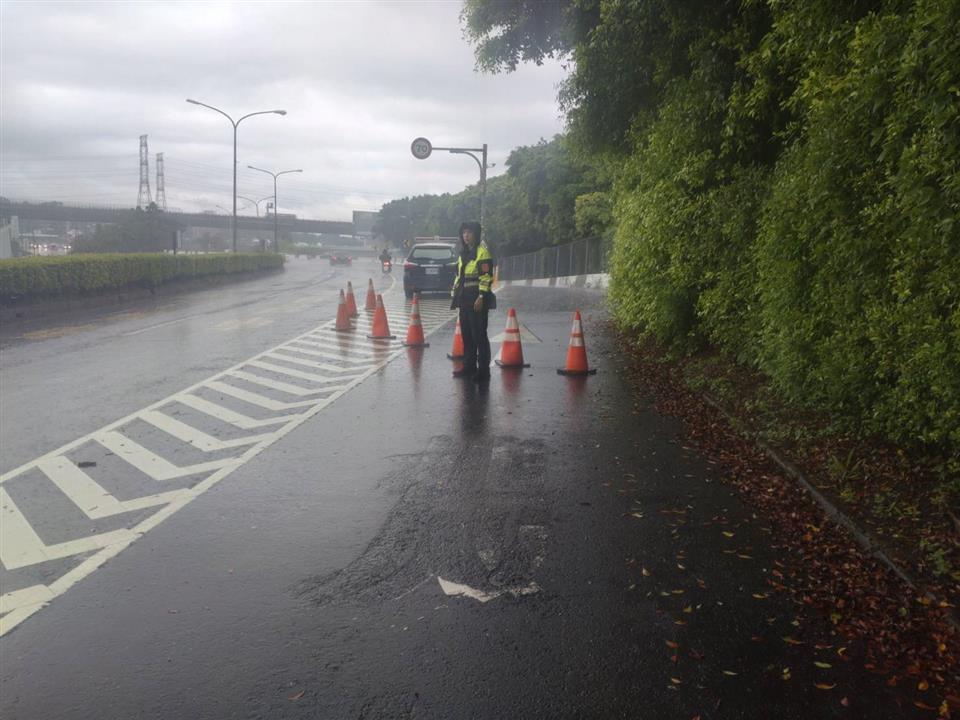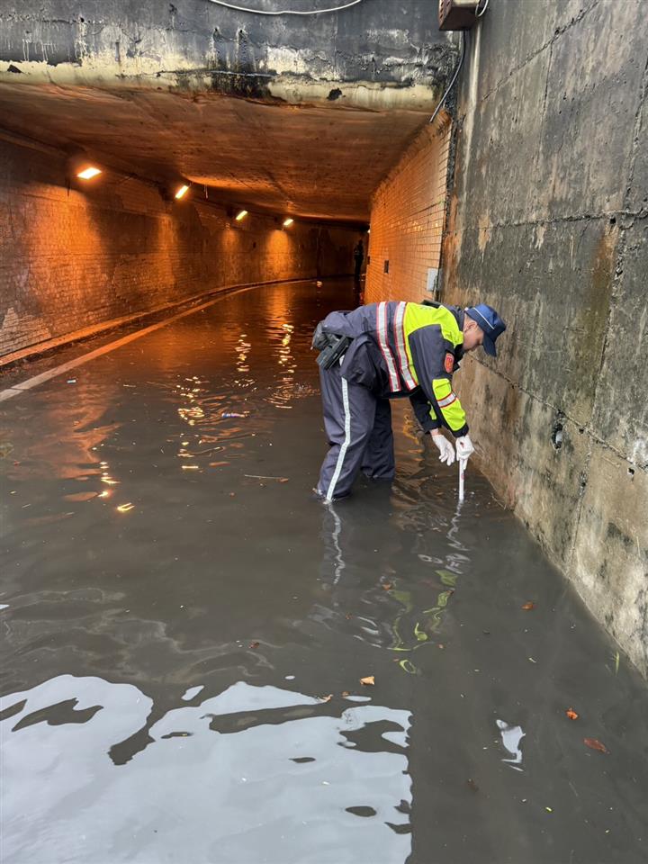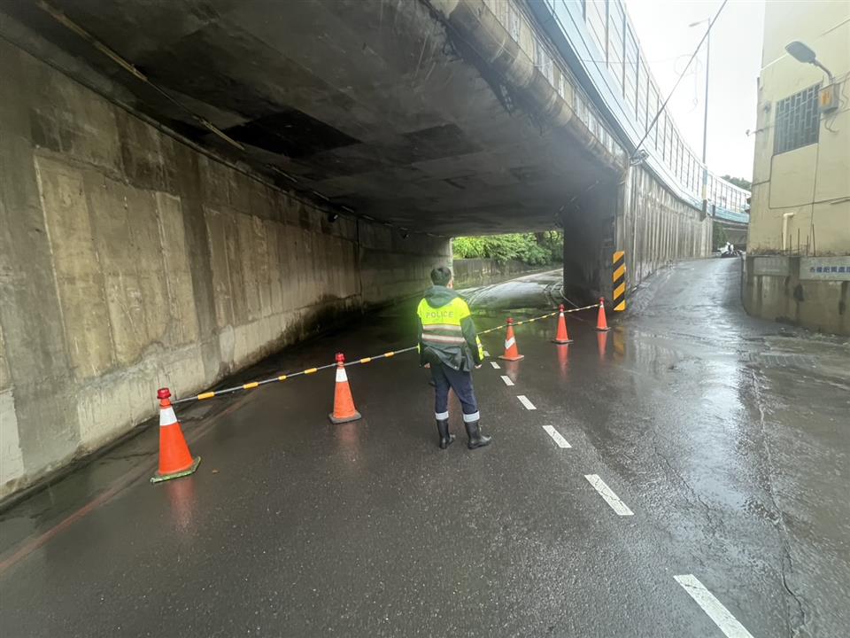 受西南氣流影響,彰化地區今(30)日清晨起下起強降雨,導致彰化市寶廍路景觀公園涵洞與大肚橋北上機車道涵洞先後出現積水情形,影響車輛通行。警方第一時間發現災情後,立即實施交通封鎖,並通報相關單位排除狀況,展現迅速應變作為。 彰化分局泰和派出所表示,今(30)日上午7時50分許,巡邏人員在寶廍路景觀公園涵洞發現道路雙向出現淹水,為防止人車涉險,立即在現場設置雙向封鎖線禁止通行,並於8時15分聯繫彰化市公所工務課派員處理。 而大竹派出所也於8時45分接獲通報,指大肚橋北上機車道涵洞出口出現積水。警方立即派遣警員侯竣耀、巡佐黃建民及警員鄧至均趕往處理,發現涵洞積水約20公分,車輛無法通行。警方於8時47分封閉道路,並緊急清除排水孔淤泥後,積水迅速退去,至9時00分即解除交通管制,恢復通行。 警方提醒,近日因天氣不穩定,降雨機率高,民眾行車請提高警覺,避免進入積水區域,若發現道路災情,請立即通報警方或公所,共同維護行車安全。