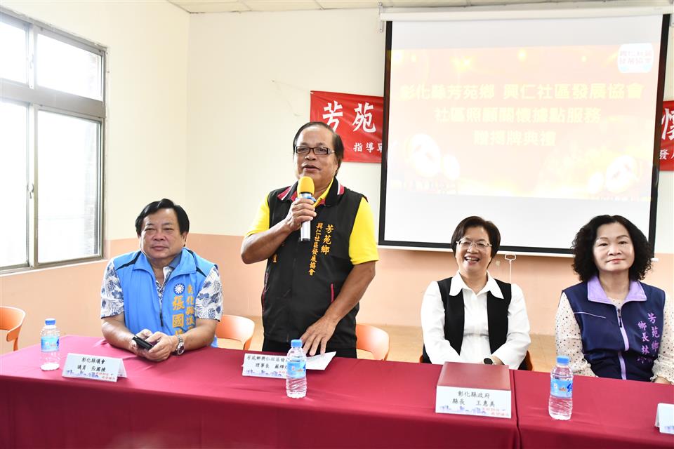 彰化縣第364、365、366、367個社區照顧關懷據點在芳苑鄉興仁、二林鎮香田、竹塘鄉溪墘及樹腳等4個社區發展協會成立,彰化縣長王惠美今(27)日上午前往社區贈揭牌慶賀。王縣長感謝芳苑鄉興仁社區發展協會理事長蘇輝煌、總幹事沈肪璟;二林鎮香田社區發展協會理事長陳格俊、總幹事張美玉;竹塘鄉溪墘社區發展協會理事長詹培煜、總幹事吳誌峯;竹塘鄉樹腳社區發展協會理事長李宋、總幹事黃宥嘉,以及所有社區幹部與志工們用心、熱情的服務,促使多個關懷據點陸續成立,據點以多元活動促進長輩健康並延緩老化,為長輩生活增添許多助益及樂趣。 王縣長表示,彰化縣目前老年人口比例高達2成,今天成立第364、365、366、367個照顧關懷據點,感謝理事長、總幹事及村里長的用心,期盼未來服務量能增加,能夠照顧更多的長輩,讓長輩可以在地安養並得到最好的照顧,也鼓勵長輩們走出來,關懷據點提供營養飲食、規律運動,幫助身體更加健康。特別感謝議長謝典林及所有議員對於縣政預算的支持,才能逐步成立關懷據點。 王縣長指出,縣府積極打造高齡友善城市,規劃多項社福政策,包含長青學苑、獨居老人關懷訪視、緊急救援系統、防走失神器守護BBCall、假牙及敬老眼鏡補助。還有本縣長青幸福卡社福點數每月1,000點,可運用於彰化客運、員林客運、南投客運、中鹿客運等市區公車、統聯客運及國光客運等7條路線、合約診所折抵基本部分負擔費用50元、臺鐵車資折抵、縣內觀光旅遊等。持長青幸福卡搭乘特約計程車,在中部4縣市每趟次享有85元的折抵優惠。 王縣長進一步指出,「2025彰化GO購」9月1日即將登場、「2025台灣設計展」將從10月10日到10月26日舉行,鼓勵長輩持長青幸福卡走出家門吃美食、買好物、抽好車、看展覽、參與各種精彩活動,讓長輩的身心更加富足,共創美好彰化、希望城市。 芳苑鄉長林保玲表示,感謝王縣長縣府團隊對芳苑建設的支持,積極布建社區關懷據點,不只補助經費,也建置很多設備,提供長者一個可以放心運動、吃飯及社交的活動場域,感謝理事長及所有志工的協助,讓芳苑鄉的長輩能夠放心在地安老。 二林鎮長蔡詩傑表示,二林鎮65歲以上人口占比25%,人口老化程度非常高,為照顧弱勢家庭,發起樂林食物銀行並鼓勵設置社區冰箱據點,實踐分享食物分享愛的理念,並成立傑林獅子會,鼓勵各界賢達參與社會福利服務行列。感謝王縣長縣府團隊、里長、總幹事及社區幹部的支持,啟動香田的照顧列車,讓更多長輩能得到關懷。 竹塘鄉長蔡碩任表示,感謝村長及理事長的大力支持,建立關懷照顧據點,過去他感受到農業社會的長輩非常辛苦,因此希望能好好照顧長輩,感謝縣長的支持,希望長輩來關懷據點,得到更好的照顧。 興仁社區發展協會理事長蘇輝煌表示,感謝縣長王惠美、鄉長林保玲長期支持社區發展,目前參與社區供餐約30位長輩,社區對於獨居老人提供長期關懷,希望未來能夠照顧更多長輩。 香田社區發展協會理事長陳格俊表示,感王縣長縣府團隊全力支持,讓關懷據點順利揭牌,在辛苦的志工團隊努力之下,期望關懷據點讓長輩得到更好的關懷及照顧。 溪墘社區發展協會理事長詹培煜表示,今天關懷據點正式揭牌, 感謝王縣長縣府團隊給予經費支持,關懷據點才能夠持續下去。 樹腳社區發展協會理事長李宋表示,感謝王縣長大力支持,社區才能夠辦理關懷據點,供餐給長輩,感謝大家的關心。 社會處表示,芳苑鄉興仁社區據點開放時間為每週三上午08:30至11:30;二林鎮香田社區據點開放時間為每週三上午08:30至11:30;竹塘鄉溪墘社區據點開放時間為每週五上午08:30至11:30;竹塘鄉樹腳社區據點開放時間為每週二、三上午上午08:30至11:30,所提供服務為「電話問安」、「餐飲服務」及「健康促進」活動等,希望長輩能踴躍參與。另外,彰化縣有591個村里,目前已成立367個社區照顧關懷據點,將積極輔導協助尚未辦理據點的村里儘速成立,期盼長者來社區照顧關懷據點參與健促活動達到預防失智及延緩老化、共享營養餐飲服務增進良好社交功能,達到在地安養及美好老年生活。 與會貴賓有立委謝衣鳯服務團隊、立委陳素月服務團隊、議員陳一惇、洪子超、洪騰明、吳淑娟、張國棟、芳苑鄉長林保玲、二林鎮長蔡詩傑、彰化市長林世賢服務團隊、竹塘鄉長蔡碩任、芳苑鄉民代表會主席 陳禮模、副主席林清在、竹塘鄉民代表會主席林淑女、副主席蔡俊傑、芳苑鄉農會總幹事洪翊桓、二林鎮農會總幹事邱士平、竹塘鄉農會總幹事詹光信、工策會副總幹事陳穎青、彰化區漁會代表、縣府機要秘書張建豐、縣府秘書洪禮謙、縣政顧問許清安、林金龍、陳名志、戴孟書、葉其昌、縣政諮議洪文哲、社會處長王蘭心與各級民意代表及地方仕紳等。