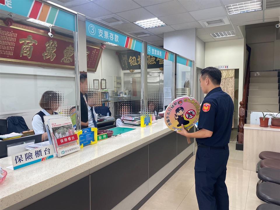 溪湖警察分局溪湖派出所所長曾鈺勝日前前往轄內轄區金融機構:溪湖郵局,溪湖湖西郵局,臺中商業銀行溪湖分行,第一商業銀行溪湖分行,彰化商業銀行溪湖分行,合作金庫銀行溪湖分行,華南商業銀行溪湖分行,溪湖鎮農會,鹿港信用合作社溪湖分社,彰化市第十信用合作社溪湖分社,新光銀行溪湖分行等等地點,對行員宣導最新型態詐騙模式。 警方對金融機構的副理,襄理,行員等宣導,提醒行員要細心的對民眾做關懷提問(阻詐及識詐),(大額匯款,轉帳及解除定存,約定轉帳等),如有任何疑為被詐騙,立即通報警察到場,進行阻詐,防止民眾財產損失! 溪湖分局強調,將持續深入社區,加強反詐騙宣導,提醒民眾提高警覺,保護自身財產安全;如遇可疑投資資訊,應立即向警方或親友查證,避免落入詐騙陷阱。