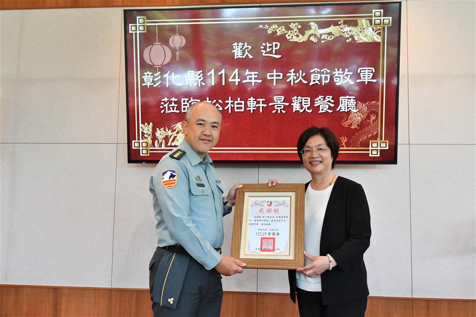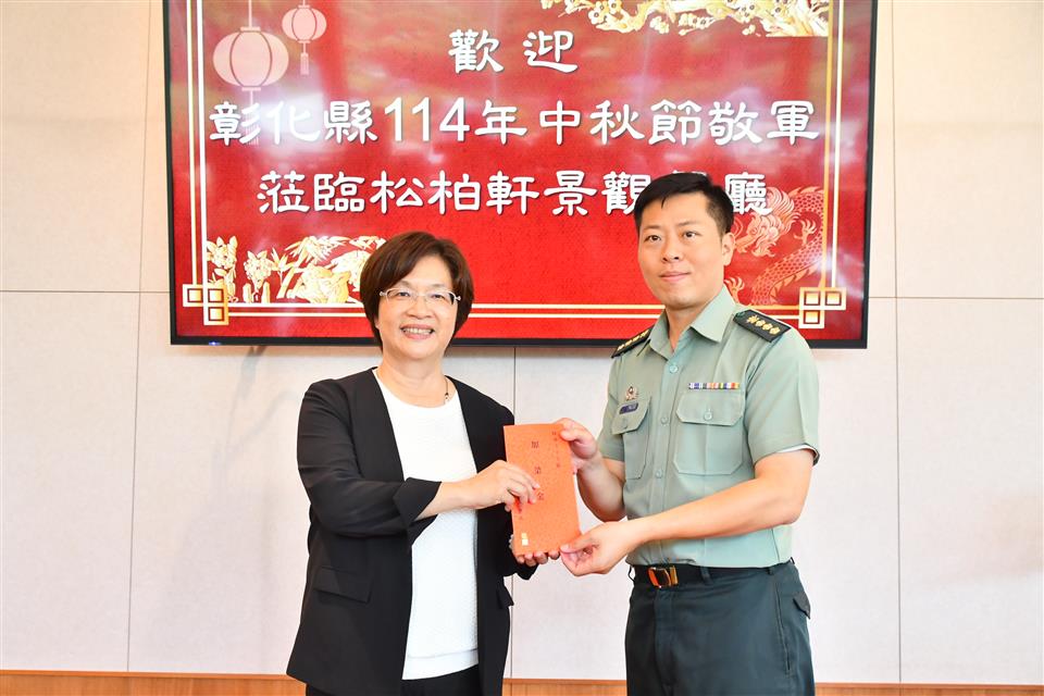 為感謝國軍官兵保鄉衛國及對地方救災等工作的協助,彰化縣政府今(24)日邀請縣轄駐軍之彰化縣後備指揮部等16單位主官或代表進行意見交流,並由王縣長致贈各單位中秋節加菜金。王縣長感謝各駐軍單位及新兵訓練中心,對縣籍子弟兵、彰化縣民及安全維護的付出與奉獻,國軍弟兄們的辛勤付出,成為縣民最強力的後盾,讓彰化縣政及建設得以順利推動發展。 王縣長表示,中秋佳節即將來臨,預祝大家中秋節快樂。衷心感謝國軍夥伴不論平時或災害期間,始終守護在民眾身邊,落實「軍愛民,民敬軍」精神,是安定社會的重要力量,並感謝所有敬軍團體與顧問夥伴們長期對縣府的支持。 王縣長指出, 10月10日至26日彰化將舉辦精采絕倫的「2025台灣設計展」,規劃15個主題分行,展區橫跨彰化市、鹿港鎮、田尾鄉及田中鎮,每個地方都有獨具特色的展覽空間與活動。此外,9月到11月,彰化縣推出「彰化GO購」消費抽獎活動,只要在縣內消費滿500元並登錄發票,就有機會抽中百萬電動車、黃金、現金等豐富大獎,歡迎大家一同來彰化觀展、消費,親身感受彰化美好的日常。 縣府今日邀請國軍部隊代表、敬軍愛軍相關社會團體等共聚一堂,凝聚軍民情誼與促進交流溝通,並致贈中秋節加菜金,由王縣長一一頒發予陸軍第十軍團、彰化縣後備指揮部、中部地區後備指揮部、彰化憲兵隊、陸軍砲兵部隊測考中心、海巡署第三岸巡隊鹿港機動巡邏站、海巡署彰化查緝隊、國防部軍事安全總隊中部地區工作站、內政部替代役暨社會韌性訓練執行中心、陸軍302旅、陸軍104旅、陸軍257旅、陸軍101旅、陸軍203旅、海軍新兵訓練中心、海軍陸戰隊新兵訓練中心等16單位,向國軍弟兄致上最崇高的敬意與溫馨的祝福,誠摯表達對國軍的支持。 與會貴賓有陸軍十軍團政戰副主任劉上校、彰化縣敬軍顧問團長劉漪珠、彰化縣青溪總會長陳國展、輔導會長黃文傑、彰化縣後備軍人輔導中心主任聯誼會會長陳任昇、彰化縣後備憲兵松荷協會主委林世杰、輔導主委許坤鑫、中彰榮譽國民之家主任呂德義、彰化榮譽國民之家主任蘇再勝、彰化縣榮民服務處長邱文俊、副處長蘇一中、彰化軍人服務站長魏治民、縣府民政處長劉玉平、副處長陳俊南、縣政顧問莊昇隆、許森洋、黃坤煌、戴孟書、彰化縣後備指揮部梅指揮官及各駐軍與新訓單位代表等。