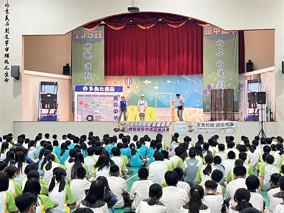 為落實廉潔教育與反詐宣導向下扎根,彰化縣政府持續結合台灣中油股份有限公司油品行銷事業部台中營業處,邀請彰化在地知名「萍蓬草劇團」於114年9月26日(星期五)前進本縣立田中高中,演出第二場創意廉政劇場《反詐練習生》,以生動活潑的方式向在校師生傳遞誠信、守法與反詐騙的重要觀念。本次活動共計國中部及高中部600多位同學參加,反應熱烈,讓誠信與守法觀念在學子心中生根發芽,期能孕育有品德、富教養、懂法治、知廉潔的現代公民素養。 活動由田中高中蕭秘書聖彥率先開場,表示反詐騙已是全民共同關注的重要課題,特別感謝縣府與中油攜手舉辦本次廉政劇場,將防詐意識與誠信觀念深入推廣至高中校園;隨後由縣府政風處范副處長谷良及中油事業部政風室鄭主任羽琇致詞,強調廉政教育及防詐意識是青年學子應具備的重要素養,並勉勵同學將今日所學內化於日常生活,提升自我保護能力。 《反詐練習生》劇情融合誠信品格、廉政倫理與反詐騙宣導,描述主角小宇從偶像練習生轉型為加油站工讀生,透過一連串現實挑戰,逐步體會誠信與操守的價值。劇中情節呈現多種常見詐騙手法,如假冒金融業者、詐騙APP、盜用點數等,並特別提醒「冷靜想想」與檢舉車手的重要性。同學在輕鬆幽默的劇情中,不僅獲得實用的防詐知識,也更深刻理解誠實與責任的真諦。演出後並安排有獎徵答與心得分享,進一步引導學生反思並強化法治與倫理觀念。 政風處表示,藉由戲劇化方式將抽象的法治觀念具體化,能有效幫助學生建立正確的價值觀與判斷力。同時,廉潔誠信教育更是品格教育的重要核心,本年度第一場廉政劇場於6月13日在溪湖鎮成功高中演出廣獲好評,希望能持續透過此活動,深化校園廉政與反詐意識,並經由學生的了解參與,而能推廣至社會各界,讓誠信與正直成為青年一代的共同信念。 中油油銷部台中營業處指出,中油於彰化縣內共有31處直營加油站,鄰近社區與學校,深知肩負企業社會責任。透過與縣府合作推動校園廉政教育,希望讓廉潔意識的品牌價值與品德教育自校園萌芽,進而擴散至社會各角落。 田中高中表示,近年詐騙案件層出不窮、手法日新月異,本次藉由戲劇演出,不僅強化學生的防詐意識,更期盼同學能將反詐騙知識帶回家中,與家人共同分享;學校也將在課堂中持續推動相關討論與學習,讓誠實守信等法治觀念深植於學子心中。 本次演出獲得現場師生熱烈迴響,同學普遍認為劇情輕鬆有趣卻寓意深刻,不僅收穫防詐技巧,更體會誠信的重要性。彰化縣政府亦將持續研編廉政指引、舉辦廉政座談會,並推動校園誠信教育,讓廉潔種子在校園中扎根茁壯。