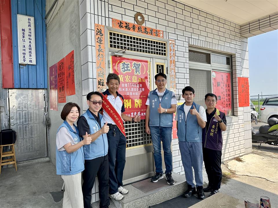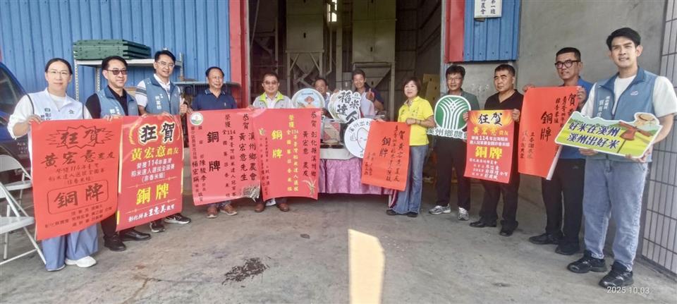 「稻米達人選拔」素有米界最高榮譽之稱,每年吸引全國優秀農友踴躍參賽。本屆共有768位農友報名參加,經過層層嚴格評比,最終僅有20位優秀農友進入全國決賽。溪州鄉農友黃宏意憑藉25年的耕作經驗與紮實的栽培管理技術,成功從激烈競爭中脫穎而出,榮獲非香米組銅牌殊榮,展現彰化優質稻米的卓越實力。 溪州鄉擁有優越的土壤與氣候條件,在農會長年輔導與農友不斷精進耕作技術的努力下,孕育出香Q可口的優質好米。黃宏意為溪州鄉稻米產銷班第1班班長,產銷班栽培規模約12.46公頃,長期推動並實踐產銷履歷制度,持續生產具安全溯源的溪州優質好米,為在地農業發展樹立典範。 近年來,彰化縣在「稻米達人選拔」競賽中屢創佳績,108、109、111及112年皆有農友入圍全國第二階段評選。今年(114 年)更由溪州鄉農會輔導的黃宏意農友勇奪銅牌,為本縣稻米產業再添榮耀。 為向得獎農友表達祝賀,10月3日由彰化縣政府柯呈枋參議代表縣長,與農業部農糧署中區分署、臺中區農業改良場、溪州鄉公所、彰化縣農會及溪州鄉農會,前往黃宏意農友家中張貼紅榜,祝賀其榮獲殊榮。此次得獎不僅肯定農友的專業耕作與用心投入,也象徵地方各單位齊心協力,共同推動「彰化優質米」品牌發展。期盼藉此標竿案例,帶動全縣農特產品推廣與行銷,進一步提升彰化在地農業競爭力。