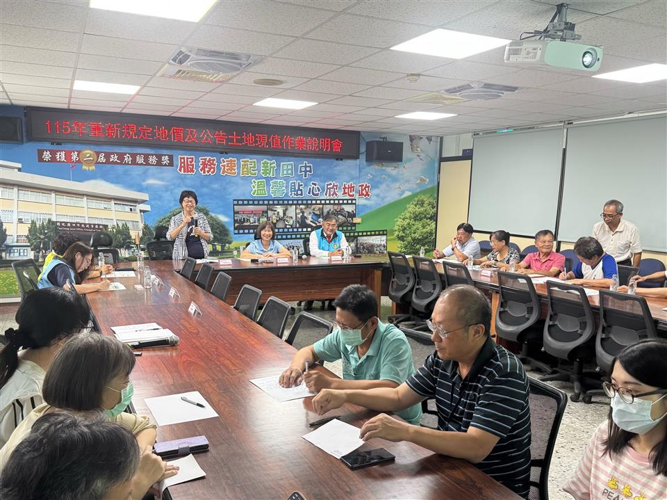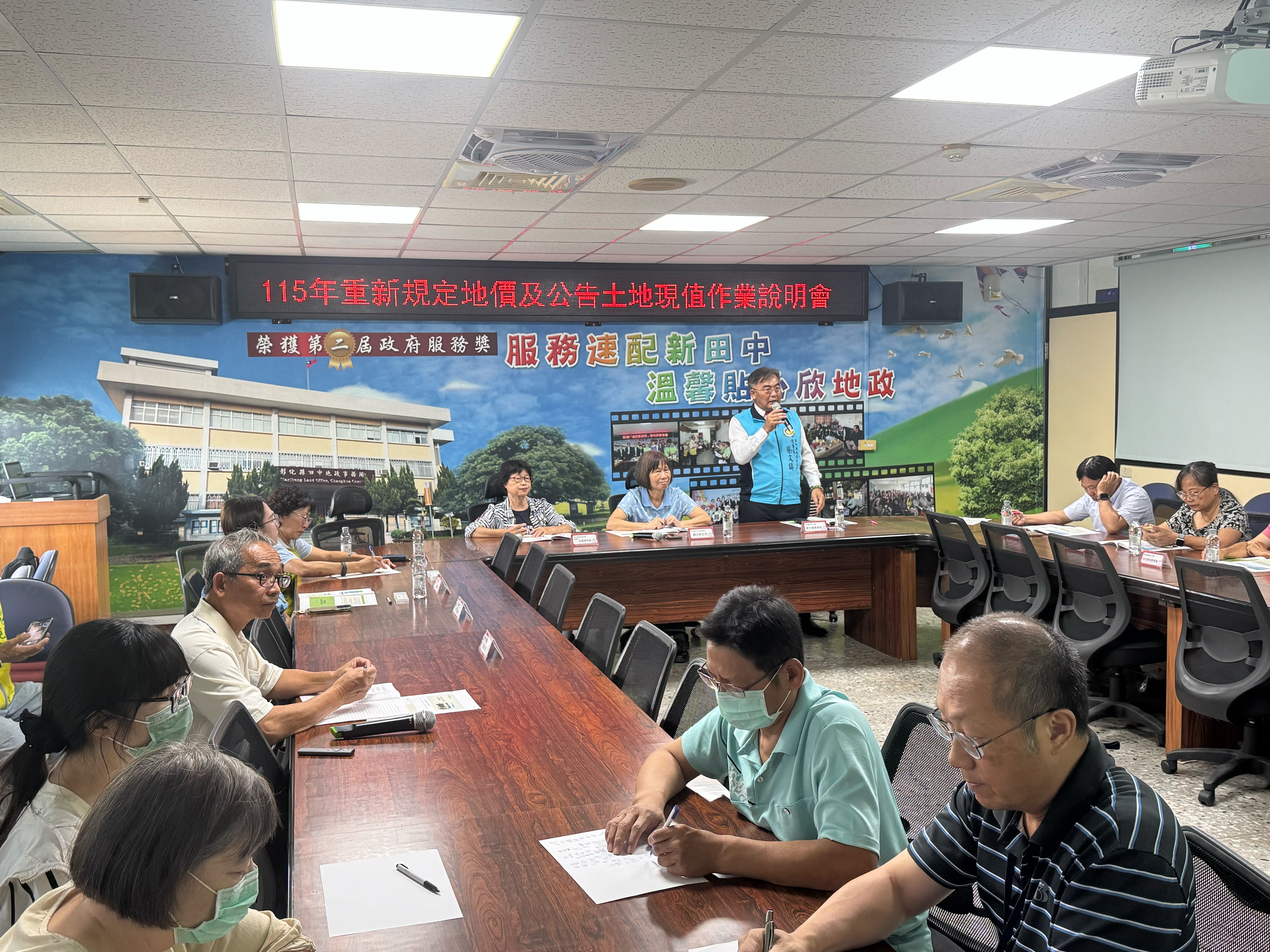 為使民眾了解田中鎮、社頭鄉及二水鄉的地價及公告土地現值規定與調整,並傾聽民眾意見,田中地政於10月1日舉辦「115年重新規定地價及公告土地現值作業說明會」,轄區詹琬惠及鄭俊雄議員助理、田中鎮民代表主席曾福傳及代表彭世和、彰化縣地政士公會蔡文鎮理事長及邱銀堆榮譽理事長、本府地政處白娟華科長、彰化縣地方稅務局員林分局、轄區公所及台灣糖業股份有限公司等人員參與,會場氣氛熱烈。 本次說明會由田中所地價課蕭建源課長解說「公告地價及現值調整作業法令依據、估計作業等流程」、「轄區不動產交易情形」及「申報地價說明」等,幫助與會人士理解公告土地現值與土地使用、市場交易的關聯性,該所也於會中逐一回應各界的提問。 田中地政劉玉株主任表示,重新規定地價及公告土地現值,與地方稅收及鄉鎮發展息息相關,地所以公開且專業的態度,依據市場實況調查結果,審慎辦理調整作業。為重視鄉親意見,透過說明會讓民眾清楚了解訂定依據,也能即時反映疑義與建議,讓地價調整的制度更為完善。若民眾對公告土地現值有任何疑問,皆可向地政事務所洽詢,獲取相關資訊,也保障自身權益。 業務單位:彰化縣田中地政事務所 聯 絡 人:過小姐 電 話:04-8742622