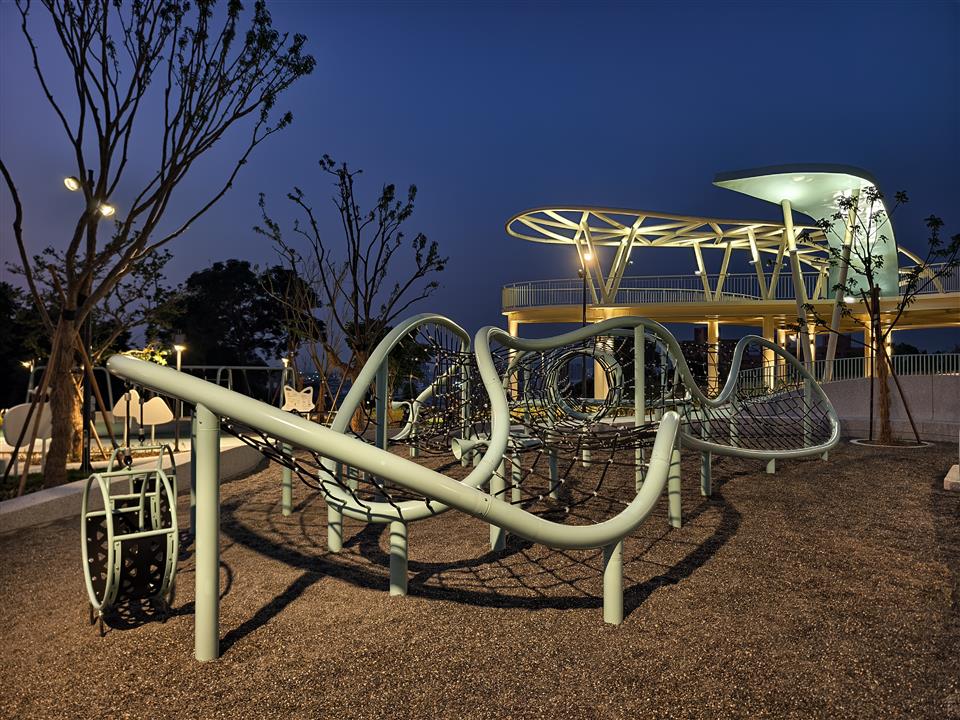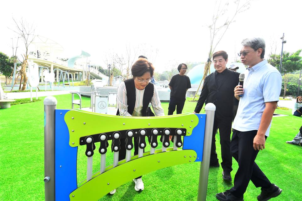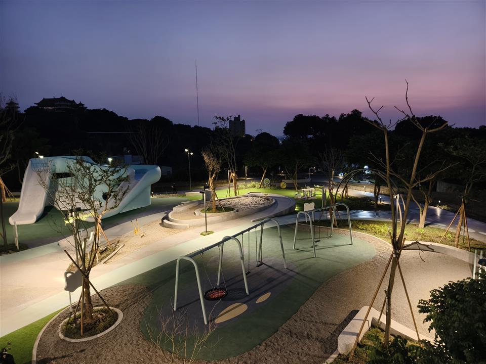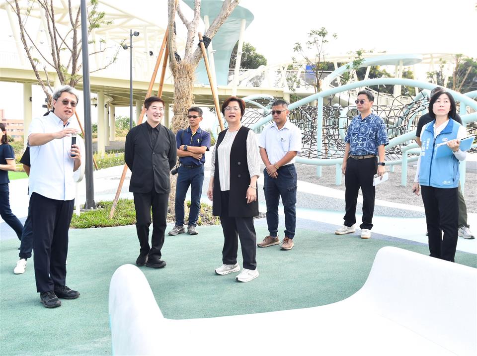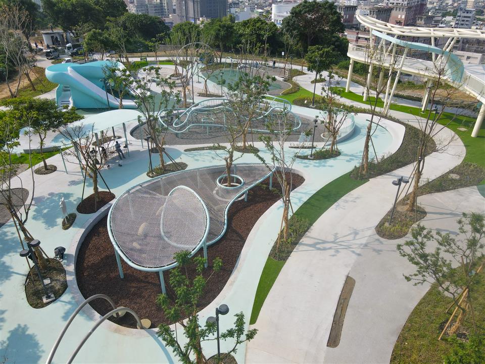 為響應「2025台灣設計展」,彰化縣政府與台灣設計研究院(TDRI)攜手合作,將前身民族新村的區域打造成八卦山「天空遊戲場」,雙十節開始正式試營運,設計展後將擇期正式開幕。彰化縣長王惠美今(9)日上午偕同台灣設計研究院院長張基義、設計師等人前往視察。王縣長表示,「天空遊戲場」設計概念是以「雲朵」以及「灰面鵟鷹」為靈感,有很多景點可以拍照打卡,親子共遊,感謝台灣設計研究院親自操刀,融合地方景觀打造共融式遊戲空間。「天空遊戲場」總經費達新臺幣6,000萬元,縣府向內政部爭取「兒童遊戲場環境設施改善計畫」補助550萬元,縣府自籌5,000萬元,並由台灣設計研究院提撥450萬元經費辦理規劃作業,感謝議長謝典霖及議員對預算的大力支持。未來將在側邊空地興建「長照大樓」,希望長輩能利用公園好好運動,陪伴孫子享受遊憩時光。 台灣設計研究院長張基義表示,天空遊戲場是城市美學的重要案例,感謝王縣長縣府團隊導入跨領域設計專業,為彰化創造新地標。本案邀請到最好的設計師共同執行,希望為民眾提供跨年齡、跨族群共融優質公園。利用舉辦設計展的機會,邀請全台灣民眾蒞臨感受天空遊戲場的創意與美學。 JHStudio建築師何震寰表示,感謝設研院整合城市美學以及王縣長縣府團隊通力支持,讓設計能量可以發揮到淋漓盡致,遊具除強調共融,同時多為客製化設施,由國內造船產業及國外專業遊具製造廠商等多家廠商共同促成,打造專業又遊戲感十足的公園。 城觀處表示,「天空遊戲場」以雲朵造型作為設計主軸,運用柔和的曲線勾勒出多功能設施,搭配整體Tiffany藍的環境色調,營造出輕盈空間感。場內規劃多樣化體驗,包括攀爬架、溜滑梯、沙坑、鞦韆、旋轉盤、彈跳床、漂浮繩網以及戲水區等。其中宛如藝術品般的溜滑梯,更為遊客提供最佳的拍照打卡地景。 場域設計不僅考量遊憩功能,更導入多項貼心服務與永續設計。園區內設置了休憩座椅、躺椅、景觀涼亭、造型廁所以及無障礙設施。遊戲場種植多達75種原生種喬木、灌木,並搭配解說設施,使其兼具環境教育功能,猶如一座植物園。夜間則透過景觀燈光設計,呈現出與白天截然不同的迷人風貌。 另外,為全面完善八卦山整體遊憩服務圈,縣府另編列約1億元預算,賡續辦理「八卦山天空步道二期廊道延伸工程」。此工程將從既有的天空步道新設廊道,直接銜接至「天空遊戲場」,並同步建置具老鷹意象的「天空眺望台」,提供民眾遠眺彰化美景的絕佳視野。同時,亦將優化龍山里階梯步道,串連八卦山遊憩軸線與中興莊眷村文化園區,形成休閒觀光廊帶。 與會人員還有台灣設計研究院長張基義、天空遊戲場/階曲設計(JHStudio)建築師何震寰、磐東營造股份有限公司董事長彭增寶、天空步道二期工程/黎明工程顧問股份有限公司主任林健榮、蓬進營造有限公司董事長柯義峰、縣府城市暨觀光發展處長王瑩琦、副處長林豊翔等。 (空拍照:由台灣設計研究院提供)