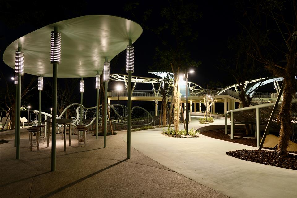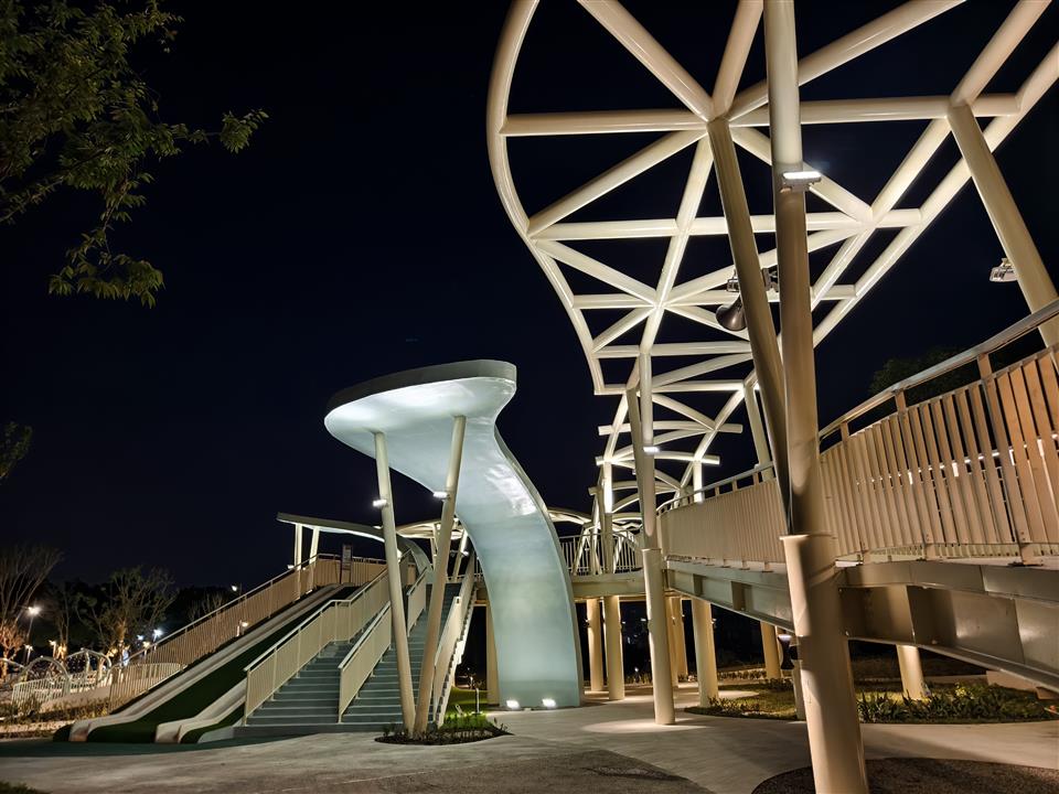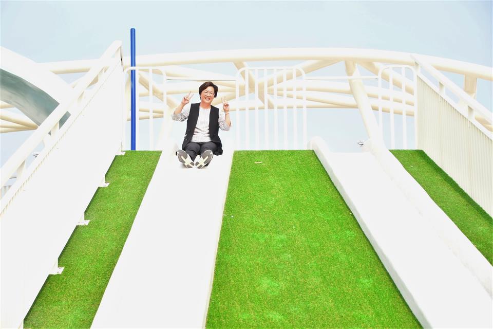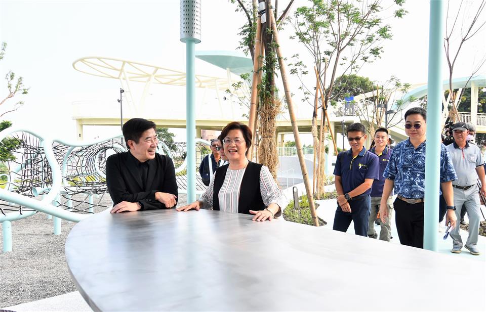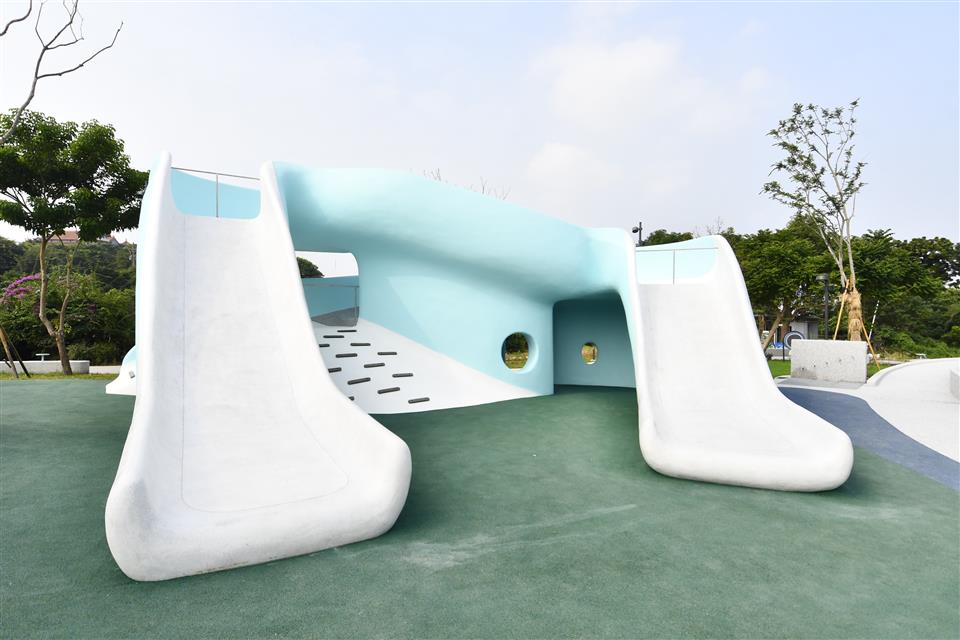 為響應「2025台灣設計展」,彰化縣政府與台灣設計研究院(TDRI)攜手合作,將前身民族新村的區域打造成八卦山「天空遊戲場」,雙十節開始正式試營運,設計展後將擇期正式開幕。彰化縣長王惠美今(9)日上午偕同台灣設計研究院院長張基義、設計師等人前往視察。王縣長表示,「天空遊戲場」設計概念是以「雲朵」以及「灰面鵟鷹」為靈感,有很多景點可以拍照打卡,親子共遊,感謝台灣設計研究院親自操刀,融合地方景觀打造共融式遊戲空間。「天空遊戲場」總經費達新臺幣6,000萬元,縣府向內政部爭取「兒童遊戲場環境設施改善計畫」補助550萬元,縣府自籌5,000萬元,並由台灣設計研究院提撥450萬元經費辦理規劃作業,感謝議長謝典霖及議員對預算的大力支持。未來將在側邊空地興建「長照大樓」,希望長輩能利用公園好好運動,陪伴孫子享受遊憩時光。 台灣設計研究院長張基義表示,天空遊戲場是城市美學的重要案例,感謝王縣長縣府團隊導入跨領域設計專業,為彰化創造新地標。本案邀請到最好的設計師共同執行,希望為民眾提供跨年齡、跨族群共融優質公園。利用舉辦設計展的機會,邀請全台灣民眾蒞臨感受天空遊戲場的創意與美學。 JHStudio建築師何震寰表示,感謝設研院整合城市美學以及王縣長縣府團隊通力支持,讓設計能量可以發揮到淋漓盡致,遊具除強調共融,同時多為客製化設施,由國內造船產業及國外專業遊具製造廠商等多家廠商共同促成,打造專業又遊戲感十足的公園。 城觀處表示,「天空遊戲場」以雲朵造型作為設計主軸,運用柔和的曲線勾勒出多功能設施,搭配整體Tiffany藍的環境色調,營造出輕盈空間感。場內規劃多樣化體驗,包括攀爬架、溜滑梯、沙坑、鞦韆、旋轉盤、彈跳床、漂浮繩網以及戲水區等。其中宛如藝術品般的溜滑梯,更為遊客提供最佳的拍照打卡地景。 場域設計不僅考量遊憩功能,更導入多項貼心服務與永續設計。園區內設置了休憩座椅、躺椅、景觀涼亭、造型廁所以及無障礙設施。遊戲場種植多達75種原生種喬木、灌木,並搭配解說設施,使其兼具環境教育功能,猶如一座植物園。夜間則透過景觀燈光設計,呈現出與白天截然不同的迷人風貌。 另外,為全面完善八卦山整體遊憩服務圈,縣府另編列約1億元預算,賡續辦理「八卦山天空步道二期廊道延伸工程」。此工程將從既有的天空步道新設廊道,直接銜接至「天空遊戲場」,並同步建置具老鷹意象的「天空眺望台」,提供民眾遠眺彰化美景的絕佳視野。同時,亦將優化龍山里階梯步道,串連八卦山遊憩軸線與中興莊眷村文化園區,形成休閒觀光廊帶。 與會人員還有台灣設計研究院長張基義、天空遊戲場/階曲設計(JHStudio)建築師何震寰、磐東營造股份有限公司董事長彭增寶、天空步道二期工程/黎明工程顧問股份有限公司主任林健榮、蓬進營造有限公司董事長柯義峰、縣府城市暨觀光發展處長王瑩琦、副處長林豊翔等。 (空拍照:由台灣設計研究院提供)