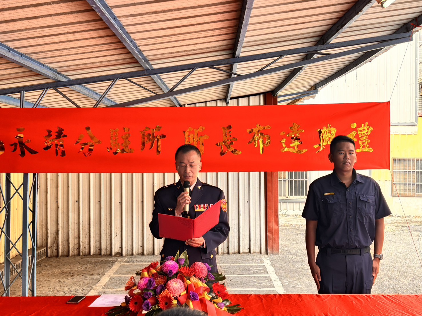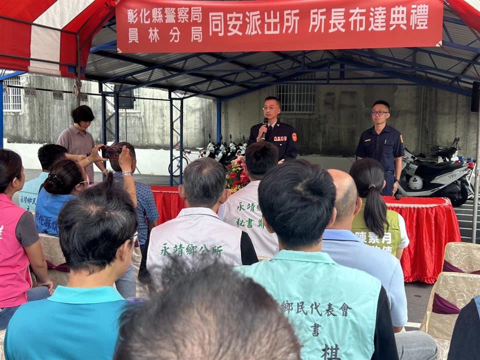 員林分局於114年10月7日上午舉行所長布達典禮,由分局長洪再徳親自主持,宣佈永靖分駐所及同安派出所兩位新任所長正式上任,同時邀請各級民意代表、村(里)長及警友站幹部、顧問等共同參與。 此次人事異動中,原任彰化分局快官派出所所長林棟樑調任永靖分駐所所長,擁有豐富的基層及所務管理經驗,熟悉各項派出所勤(業)務;而原任員林分局偵查隊偵查員蔣承峰則調任同安派出所所長,蔣所長工作幹練、執行力強,刑事經驗豐富,工作能力深獲肯定。 分局長洪再徳勉勵兩位所長秉持熱忱與專業,帶領所內同仁持續推動治安、交通與為民服務等各項工作,深化警民合作,打造更安全的生活環境,以謙虛務實的態度投入新職務,守護轄區居民的平安與幸福。