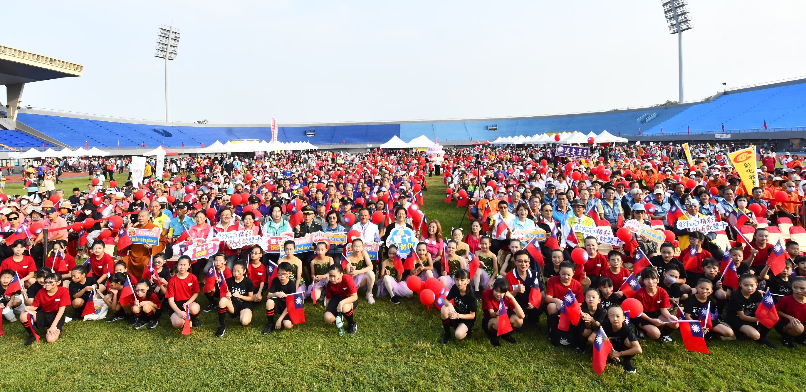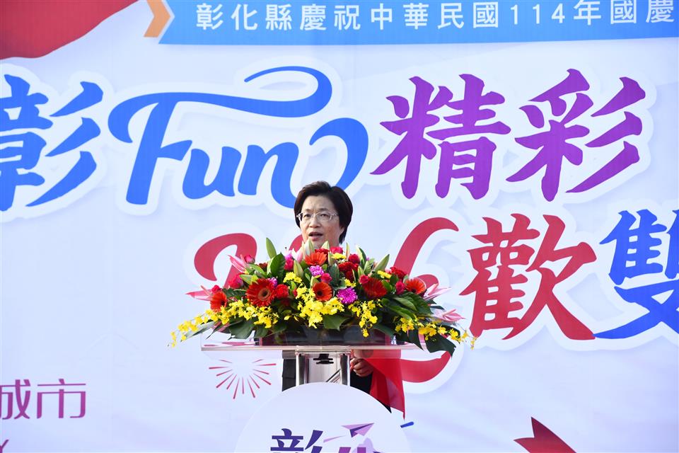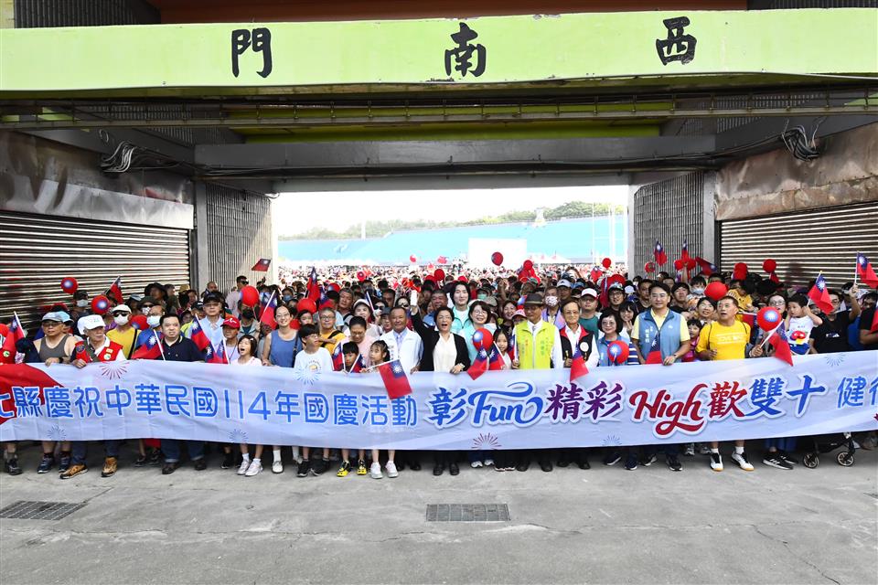 彰Fun精彩・High歡雙十,歡慶中華民國114歲生日,彰化縣政府10月10日上午7時於彰化縣立體育場盛大舉辦「彰Fun精彩・High歡雙十」健行活動暨公益園遊會。縣長王惠美與會參加升旗典禮,現場吸引超過四千人一同參與,展現大家對國慶的熱情與期待,一起為彰化的未來加油打氣!王縣長表示,祝福中華民國生日快樂!感謝社會處及救國團用心規劃一系列活動,活動包括有公益市集、親子體驗活動區,還有闖關集點以及健行活動。9月開放線上報名後,3千名額很快就額滿,現場總參與人數突破4千人,「2025台灣設計展」同時也於今天正式開展到10月26日,為期17天,邀請鄉親帶著親朋好友一起踏上「彰化行」的旅程。 王縣長表示,現場感受到大家對國慶活動滿滿的熱情,全程參與民眾可獲得限量「國慶紀念後背包」、「國旗方巾」,更有機會抽中電視機、腳踏車等超過70項好禮,也規劃親子同樂區,設有氣墊床、泡泡體驗、手繪星光燈以及冰箱貼DIY等活動,讓大小朋友都盡情同樂、歡喜共度雙十! 王縣長指出,彰化孕育無數「隱形冠軍」,有支撐全臺的製造實力,也有源源不絕的創新能量,成為臺灣邁向全球的重要推手。縣府積極以「一軸一環雙樞紐」為核心藍圖,進一步推動「四顆引擎」計畫,讓彰化整體發展更加均衡且具競爭力。同時為照顧各年齡層的縣民,推動各項關懷照顧社福政策,包括「高鐵養生村」計畫、首創全國「老幼共融」的綜合式長照衛福大樓、青年住宅等,縣府團隊努力描繪出「宜居新彰化」的永續發展藍圖。 救國團主委施鳳銘表示,感謝縣府長期支持,讓救國團參與這場充滿榮耀與意義的盛典。救國團長期秉持「社會服務、社會關懷、公益」的精神,帶領縣內的義工夥伴,推動各項活動,把溫暖與希望傳遞到每一個角落。未來救國團將一如以往,全力配合縣府,持續投入青年服務與公益行動,攜手打造更美好的彰化。 與會貴賓有立委黃秀芳、縣議員黃柏瑜、彰化市長林世賢、救國團彰化縣團委會主任委員施鳳銘、彰化商業會秘書長梁中原、彰化縣後備指揮部指揮官梅上校、彰化縣職業總工會理事長許英義、彰化縣產業總工會理事長施能貴、縣府秘書長蔡明娟、機要秘書張建豐、參議柯呈枋、新聞處長李俊德、工務處長許俊宏、計畫處長施敏華、建設處長陳昌茂、行政處長吳蘭梅、教育處長蔡金田、農業處長郭至善、勞工處長何俊昇、地政處長陳麗梅、財政處長劉坤松、人事處長高上富、交通處長林孟弘、城觀處長王瑩琦、經綠處長張寒青、文化局長張雀芬、警察局長陳明君、消防局長施順仁、環保局長江培根、地稅局長陳燕慧、秘書黃智裕、衛生局秘書林慧姿、各級民代及地方仕紳等。