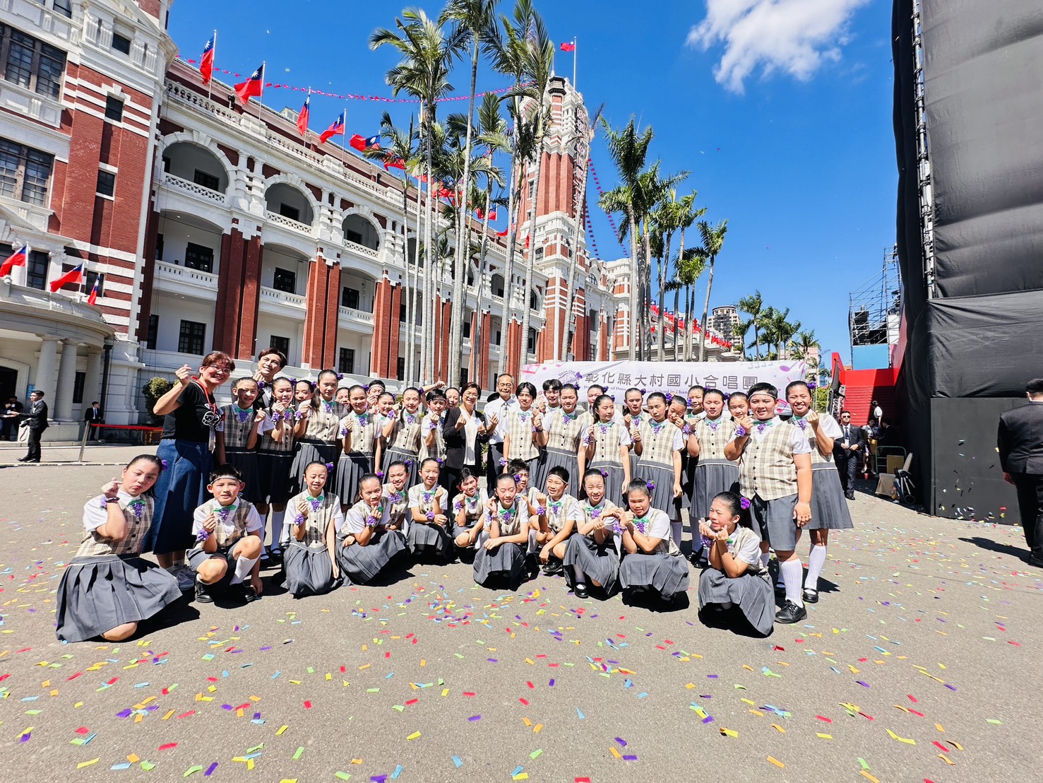 彰化縣大村國小合唱團受邀擔任10日10日上午10:10在總統府舉辦的中華民國國慶大會領唱國歌,與優秀新住民代表及社會團體公益貢獻金質獎代表共同演唱,為國家慶典獻上最真摯的祝福。彰化縣長王惠美也前往參與盛事,王縣長讚許大村國小不僅為彰化之光,更是台灣之光,天籟美聲響徹總統府前,同時也感謝校長、老師的指導,讓小朋友能夠將這份美聲帶上國家最高的舞台,向全國人民展現他們的努力與榮耀。 為了此次國慶演出,合唱團師生自獲邀後,便緊鑼密鼓的練習,由教師魏相英、林義凱共同指導的大村國小合唱團,以其卓越的美聲享譽國內外。曾於2023年7月在波蘭克拉克夫國際合唱大賽勇奪流行爵士兒少組金獎與大會最大獎「雙金」殊榮,也榮獲「113學年度全國學生音樂比賽 國小組同聲合唱」全國特優,展現驚人實力,更囊括彰化縣113學年度同聲合唱及客語合唱雙料冠軍,成果豐碩。