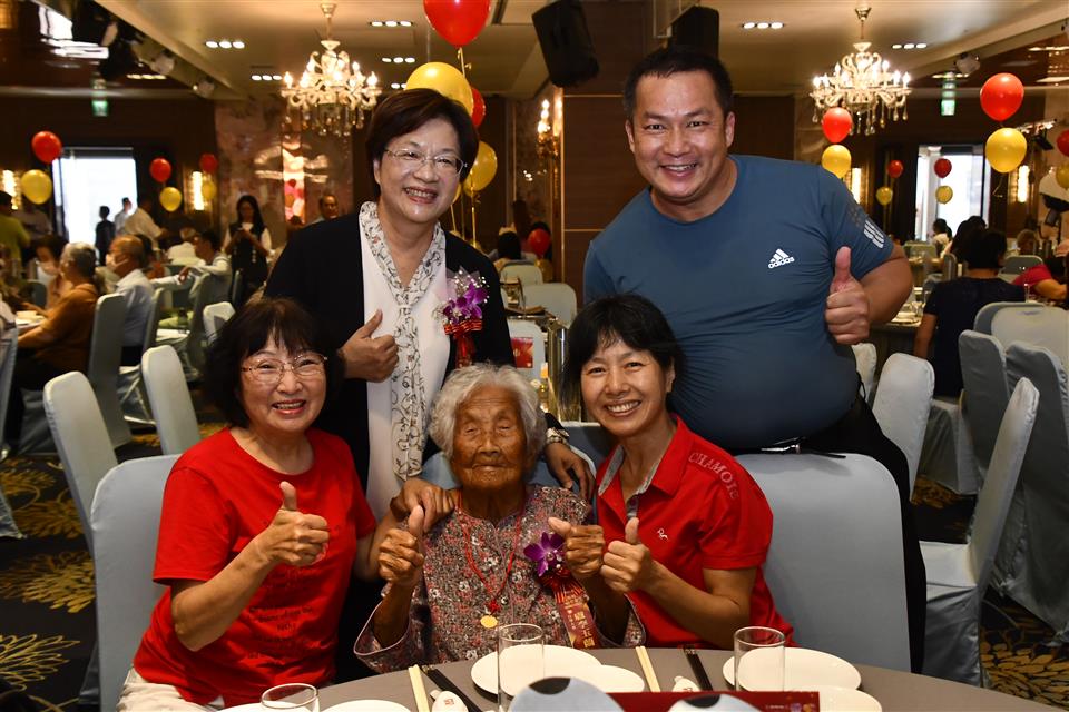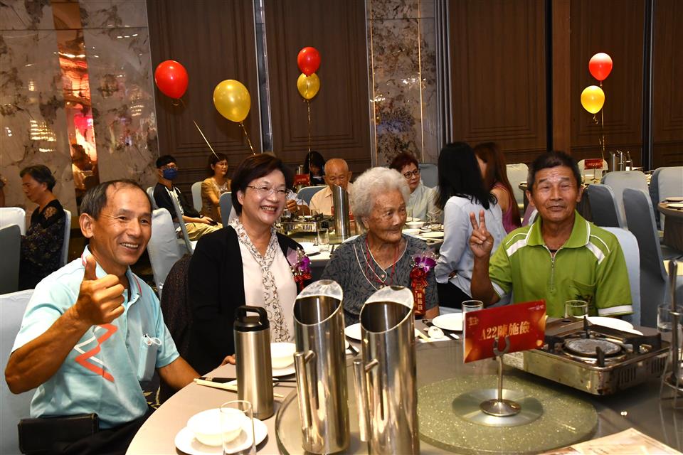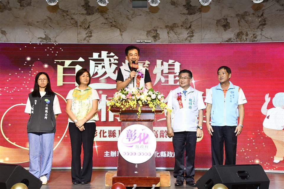 百歲輝煌,情牽今生,為慶祝即將到來的重陽敬老節,彰化縣政府規劃豐富的系列活動,其中「114年度高齡同學會活動」今(12)日上午在花壇全國麗園餐廳舉辦,縣長王惠美到場與長輩同歡,現場邀請56位百歲人瑞及42對白金婚夫妻慶祝重陽佳節,藉此表達縣府對長輩敬重與關懷美意。活動由知名藝人戴梅君演唱揭開序幕,王縣長為長者獻上祝賀詞「添福添壽添富貴,身體健康無煩惱」象徵吉祥長壽。王縣長表示,「家有一老,如有一寶」,希望長輩都把自己的身體顧好,並鼓勵子女愛要及時,行孝也要及時,用行動關心及陪伴長輩,讓他們都能健康安享晚年。 王縣長表示,彰化縣目前有284位百歲人瑞,其中年紀最高的是居住於彰化市的112歲長者,今天在場參與活動的百歲人瑞共有56位,其中有27位人瑞是去年就有來參加,今年再次來參加,有的也參加好幾次了,實在是很難得的高齡同學會,現場人瑞中最高齡者為彰化市105歲的林萬烟先生及芳苑鄉105歲的林老闖先生。結婚70年的白金婚夫妻也有42對到場,最高齡為來自鹿港鎮95歲許國村及94歲白月娥賢伉儷,祝福大家健康久久,幸福久久。 王縣長指出,今年重陽節,縣府除致贈百歲長者禮金1萬元及禮品1份外,還有金鎖片,祝福長輩吉祥長壽。白金婚夫妻相互扶持超過70年,是人生一大福氣,為表達由衷的慶賀,縣府致贈每對夫妻禮金新臺幣3,000元、禮品紀念相框及禮券1份。 王縣長進一步表示,為打造彰化成為高齡友善城市,縣府現已設置368個社區照顧關懷據點,同時布建18棟整合式的長照衛福大樓,提供長者多元服務,包括每月1千元的長青幸福卡、長青學苑、獨居老人關懷訪視、緊急救援系統、假牙補助、敬老眼鏡及防走失BBCall等,希望長輩在彰化得到最好的照顧,安心在地養老。 王縣長指出,「2025台灣設計展」10月10日至26日在彰化盛大登場,展區從彰化市、鹿港、田尾到田中,橫跨4個鄉鎮市打造15個主題分行,是歷年來規模最大的一次,總共有588場次的演出,動員700多位設計師、1640個廠商的配合,以及約600間店家推出優惠響應。設計展期間於鹿港公會堂設有「耀啟•彰化行」光雕展,每週五至週日晚間18:30至21:00每半小時展演1次,並於田中高鐵彰化站旁興建彰化首座國際展覽館。10月11、12日在鹿港有「潮派鹿港音樂祭」,10月18、19日於八卦山有「潮派卦山」,10月24、25日在田尾有結合花藝與服裝走秀等精彩活動,歡迎大家一同共襄盛舉,感受彰化設計的無限魅力。9月到11月也有「彰化GO購」活動,來彰化消費滿500元,即可憑發票或收據上網登錄參加抽獎,最大獎百萬電動車等著你。 大村鄉長賴志銘代表致詞表示,感謝王縣長努力實現「美好彰化 希望城市」的願景,讓我們秉持著代代傳承、侍親敬老的精神,一起共創美好未來。 與會貴賓有立委謝衣鳯、縣議員陳玉姬、立委陳秀寳服務團隊、大村鄉長賴志銘、田中鎮長蕭淑芬、永靖鄉長魏碩衛、員林市公所機要秘書吳宗華、北斗鎮公所秘書劉崑荃、二林鎮公所秘書李玟璇、社頭鄉公所社會課長蕭淑芬、彰化縣工商發展投資策進會總幹事洪榮章、彰化縣芳苑鄉老人會理事長林水成、社會處長王蘭心、各級民意代表與地方仕紳等。