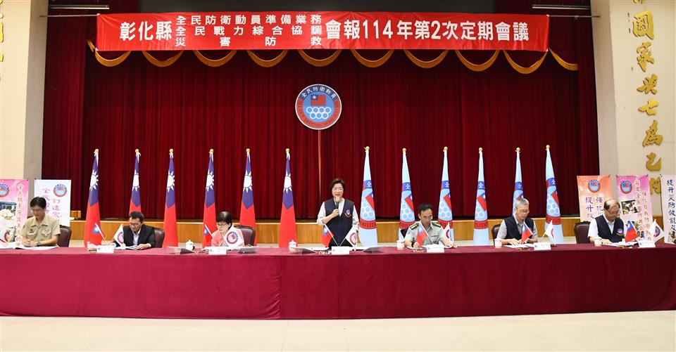 彰化縣114年動員、戰綜及防災會報第2次定期聯席會議於14日上午在彰化縣警察局6樓禮堂舉行,由縣長王惠美擔任召集人,並邀請行政院動員會報專委鄭慧美、後備指揮部參謀長薛少將、中部地區後備指揮部指揮官陶少將等人出席指導。藉由定期演練、城鎮韌性演習等形式強化各單位應變能力,協助民眾提升自助、助人的能力,也落實各項動員準備及提升災害防救效能。 王縣長表示,臺灣地震頻繁,常面臨颱風等天然災害的挑戰,近期在花蓮光復鄉馬太鞍溪的堰塞湖,因颱風夾帶豪雨導致壩頂發生兩次溢流決堤,造成嚴重的生命與財產損失,可見受到極端氣候影響,發生複合式災害的可能性越來越高。此外,我們面臨越來越嚴重的國安威脅,中共軍機、軍艦的侵擾及透過假訊息等方式,進行灰色地帶的認知作戰,這些複合性的災害及威脅,都對國安帶來重大影響。基此,除政府部門、國營事業外,民間企業及所有民眾,都應該隨時提高警覺,防患於未然。 王縣長指出,本次會議重點,針對全社會防衛韌性之五大主軸任務,藉由定期會議演練,強化城鎮韌性的演習,提升各單位應變能力,落實動員準備以及災害防救的效能。並統合縣內民力、物力跟動員能量,在平時強化防災、救災機制,以期面臨緊急狀況時也能有效應變。 王縣長強調,「勿恃敵之不來,恃吾有以待之」,平常做好充分準備,就不怕敵人侵犯。透過三合一會報的整合,強化軍政機構各級協調管制功能,建立災害防救的良好機制。期許藉由每一次演練,讓動員機制與緊急危難的應變機制能夠更加熟練,當面臨危險狀況的時候,就能把災損降到最低,保障人民生命、財產的安全。 行政院動員會報專委鄭慧美表示,下半年動員戰災會報的定期會議,目的讓大家面對國家的安全威脅,不管是天然災害、地震、軍事安全等,都能預先準備。並精進相關計畫,像民生必需品配售站的規劃、站點成立。另外,災民收容也訂定在縣市政府的計畫中,感謝縣府團隊及相關單位的支持跟配合。 民政處表示,災害預防關係著人民生命財產的安全,妥善防範才能降低災害所帶來的影響。面臨各種災害威脅,縣府將秉持「超前部署、隨時防災」的理念,積極、務實地強化各項防災整備,藉由積極的操作演練,強化災害應變措施,保障民眾生命財產安全,為縣民營造安全無虞的美好生活。 與會人員還有行政院動員會報專委鄭慧美、後備指揮部參謀長薛少將、中部地區後備指揮部指揮官陶少將、彰化縣戰綜會報副召集人梅上校、彰化縣動員會報執行祕書劉玉平處長、彰化縣災防會報執行秘書施順仁局長、本府各局處一級主管、業務單位代表等人。