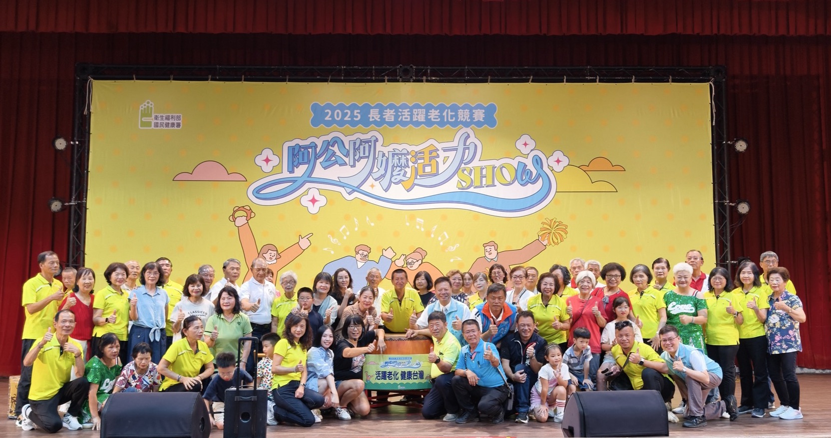 因應超高齡社會的來臨,為鼓勵長者「活得健康、活得有活力」,衛生福利部國民健康署舉辦「2025阿公阿嬤活力SHOW」全國競賽活動,透過舞台表演展現長者的健康風采與生命價值,推動「在地老化」與「活躍老化」理念,打造健康樂齡的生活目標。 活動歷經8月份的北、中、南、東四區分區賽,從中脫穎而出的全國12個縣市、共19支優秀隊伍,齊聚10月15日的全國總決賽。各隊發揮創意與活力,展現長者的健康體能與無限潛能,營造社會參與與跨世代共融的感動氛圍。 本縣由員林市大明社區發展協會組成的「大放光明幸福隊」代表中區參與總決賽。在現場親友與志工熱情加油聲中,阿公阿嬤們手持精心準備的道具,帶來融合地方特色與創意的精彩表演,並與孩童攜手演出,呈現跨世代共演的溫馨畫面。 這份歷經一年努力排練的成果,展現了長者的智慧、活力與團隊精神,深獲評審一致肯定,從新秀組12支隊伍中脫穎而出,榮獲「最佳活力獎」殊榮。 頒獎典禮中,員林市公所長官與社區協會理事長代表上台領獎,台下長者們滿臉笑容,喜悅與感動洋溢全場。這項榮譽不僅是團隊長期投入與合作的結晶,更象徵彰化縣長者展現健康自信與生命價值的光采成就。 未來彰化縣政府將持續配合國民健康署推動多元競賽及健康促進活動,鼓勵長者走出家門、參與社區,提升身體活動量並強化社會連結,達到延緩失能、健康老化的目標,共創豐富多彩的樂齡生活。
