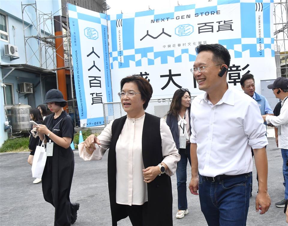2025台灣設計展於彰化盛大展出,桃園市副市長蘇俊賓於今(20)日率領市府團隊特別前來彰化展區,汲取經驗,2026年台灣設計展將在桃園,彰化縣長王惠美熱情接待,透過考察彰化策展經驗、場館規劃及營運模式,期盼應用於桃園的籌備工作,致力辦好2026年台灣設計展。 王縣長表示,謝謝桃園市副市長蘇俊賓帶領市府同仁蒞臨指導,辦理設計展能讓城市治理煥然一新。透過導入設計思維,不論是交通動線的順暢度,或是城市的高度與格局,都將大幅提升。誠摯邀請民眾屆時參觀在桃園舉辦的2026台灣設計展。 桃園市副市長蘇俊賓表示,今年台灣設計展在彰化舉辦,明年輪到桃園,所以今天特別向王縣長縣府團隊取經,以期走進彰化百年來的文化與產業脈絡。並深刻感受到,彰化製造是許多台灣製造的基礎,很多產品的工業聚落都在彰化。彰化不只是傳承最好的技術,也傳承堅毅的精神,那些內涵都在這次設計展中被完美展現。期待明年王縣長能蒞臨桃園指導,增進雙方施政交流。 蘇副市長觀展過程中,巧遇於中興莊人人百貨內坐鎮的埤腳五通宮五顯大帝以及南瑤宮媽祖,神明戴上「蕭顯德」與「林默娘」的名牌,導覽人員解釋各商家會輪流請神明到自家展間作客,象徵加持人氣與流量,蘇副市長應邀為神明開桌,成為參訪過程中的小趣事。 與會貴賓有桃園市副市長蘇俊賓、桃園市政府參議羅文林、桃園市文化局長邱正生、桃園市青年發展局長侯佳齡、市府顧問林磐聳、桃園市政府專案辦公室總監張漢寧、彰化縣政府青發處長陳柏村、新聞處長李俊德、青發處副處長郭秋君等人。