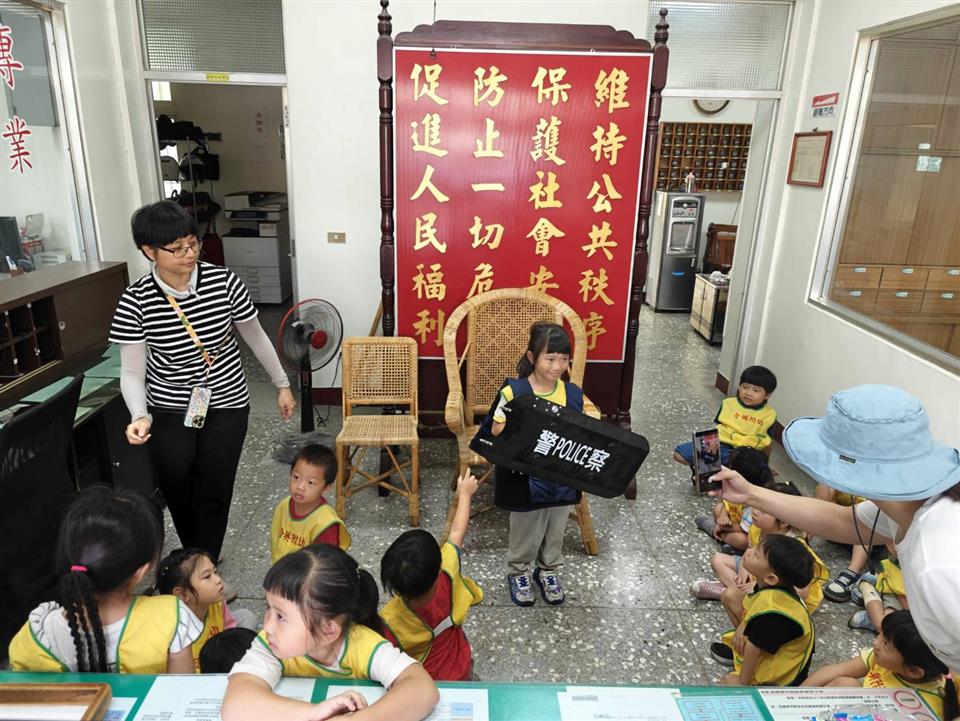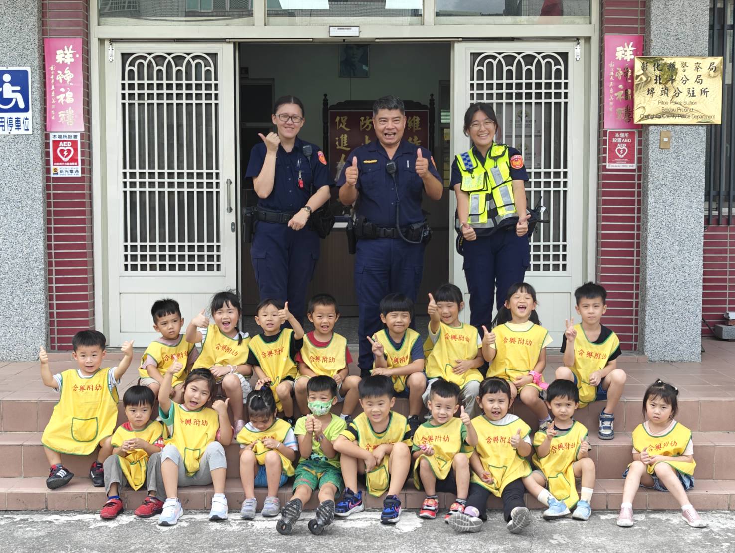 114年10月20日上午,埤頭鄉合興國小附設幼兒園的小朋友們在老師的帶領下,開心前往北斗分局埤頭分駐所進行參訪活動。老師們特別安排這項體驗活動,讓孩子們能近距離了解警察的工作內容,從小建立守法觀念與社會安全意識。 本次參訪由埤頭分駐所莊順法副所長親自接待引導,熱情介紹警察派出所的常見設施與日常勤務內容,並帶領小朋友參觀警用裝備與辦公空間,活動中,小朋友們穿上防彈背心、手持盾牌親身體驗警察的辛勞,紛紛驚呼「原來警察叔叔這麼辛苦!」,氣氛活潑熱鬧。小朋友們對警車、警用裝備與警察制服充滿好奇,七嘴八舌地發問,讓整個分駐所洋溢著童真笑聲。現場的新進女警陳楷心也親切與孩子互動,耐心解答問題,並向小朋友們宣導遵守交通規則與保護自身安全的重要性。活動最後,員警們發送小糖果作為小禮物,小朋友們開心地與警察合影留念,為此次參訪留下難忘又溫馨的回憶。 北斗分局楊志源分局長表示,這次活動不僅讓幼兒們更深入了解警察的工作,也拉近了警民之間的距離。透過寓教於樂的互動方式,讓孩子們在歡笑中學習安全知識,並從小培養尊重法紀與助人為樂的精神,期盼未來能有更多這樣的活動,讓警察成為孩子心中最信任、最親切的夥伴。