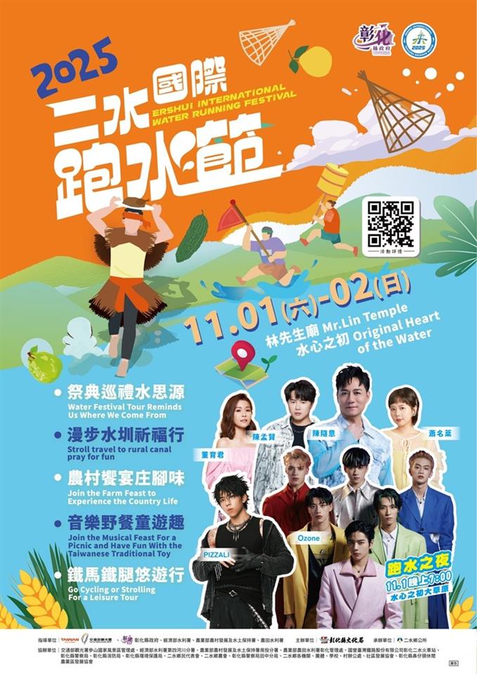 全台特有水圳節慶活動「2025二水國際跑水節」,將於11月1、2日在二水鄉盛大登場!今(22)日在林先生廟舉辦宣傳記者會,由副縣長周傑代表縣長王惠美與會,與參山國家風景區管理處秘書洪英逸、第四河川分署分署長李友平、水保署南投分署副分署長陳存凱、農水署彰化管理處處長徐瑞旻、二水鄉長蘇界欽等人,並邀請饒舌創作才子「PIZZALI」擔任宣傳嘉賓,廣邀全國鄉親相聚二水,體驗跑水文化,欣賞在地的好山、好水、好風光。 今年度以「跑水吧!時光潮流」為主題,結合地方文化與農特產品特色,打造各系列活動亮點: 亮點一:今年特別推出「農村文化特色餐盒」,以二水當季新鮮農產品為食材,由總舖師設計烹煮特色便當,透過九道料理呈現二水的農村及人文故事,將二水美味濃縮在餐盒之中,讓大家用味覺走進二水的時光與風景。 亮點二:「跑水玩很大-家庭變裝來跑水」,讓全家大小在歡笑中體驗跑水傳統,更富含教育意義,傳承飲水思源的跑水節文化。 亮點三:「漫步水圳集章趣」、「石笱憶童玩樂園」、「寫意二水戶外創意繪畫比賽」,民眾可以用不同角度,細細品味二水的人文風情與生活記憶。 2025跑水節暖身活動將於10月24日上午11時至晚上8點半於水心之初大草原辦理「田園好時光-大地豐收市集」及「星光電影院」,結合「草地、星空、家庭共享」,營造家庭親子同樂、溫馨歡樂療癒氛圍,增添美好回憶,為跑水節揭開序幕,歡迎民眾蒞臨同樂! 系列活動包括「祭典巡禮水思源、漫步水圳祈福行、農村饗宴庄腳味、音樂野餐童遊趣、鐵馬鐵腿悠遊行」等五大主軸,11月1日將舉辦祈福開幕式、圳頭祭、感恩祭等活動,並有桃山廟、晉天宮、世芳宮、東螺天后宮、小半天天林宮、松柏坑崇受宮、斗六門受天宮、安德宮等8間宮廟參與神轎跑水,周邊還有其他精彩豐富的活動:「互動數位跑水」、「Q版多肉香氛蠟燭親子DIY」、「鯛魚燒職人食農體驗活動」、「玩轉捏麵」等,歡迎民眾全家一同樂遊二水,體驗全臺獨有的水圳跑水。 另外,11月1日下午在水心之初大草原連續登場的草地音樂會及跑水之夜晚會,演出陣容堅強,邀請了P!SCO、安吉、王ADEN、小芙尼唱跳互動秀、聲林之王蕭名棻、台語美聲董育君、全球巨星陳孟賢、陳隨意、饒舌創作才子PIZZALI、人氣男團Ozone等團體及歌手接力演出,攻佔樂迷的耳朵,現場Chill十足的音樂演出,讓民眾能放鬆地在草地上野餐,跟著悠揚樂聲將自在的態度植入生活,也讓耳朵體驗一場出其不意的聽覺盛宴。 廣受歡迎的「千人健行水上漂」活動也將於11月2日熱鬧登場,從水心之初大草原起走,一起漫步於自行車道,沿途欣賞二水美麗風光,感受田園的清新空氣和大自然的聲音。本次健走活動與二水特有的跑水文化結合,喜愛旅遊、健行的旅客可藉機了解這項傳統活動的文化背景及歷史意涵,感受自然與文化的完美交織。 二水鄉公所與經濟部水利署第四河川分署特藉此飲水思源的文化盛宴,合作辦理水資源及愛護河川宣導,於活動現場進行愛護河川有獎徵答,讓參與遊客深刻體悟水是生命之源,跑水更要護水,希望能達到「治水、利水、親水、活水」等水流域有效管理,共同維護這片美麗的青山綠水。 活動期間為有效疏通人潮,二水鄉公所每日上午8時至下午5時,在二水火車站至源泉國小區間,提供定點免費接駁車服務,歡迎民眾多加搭乘利用。 與會貴賓有縣議員鄭俊雄、許書維、蕭妤亘、詹琬惠、縣政顧問許森洋、陳昭麟、縣府參議柯呈枋、彰化縣文化局長張雀芬、二水國小校長陳靜德、復興國小校長謝添裕、二水國中校長吳建中、源泉國小校長林淑貞、代表會主席羅森澤及地方仕紳及民意代表等。 「農村文化特色餐盒」訂購請洽二水鄉公所農業課,電話:04-8790100;網址:https://ershui.twowater.com.tw/ 「2025二水國際跑水節」活動官網:https://ershuiwaterun.tw/