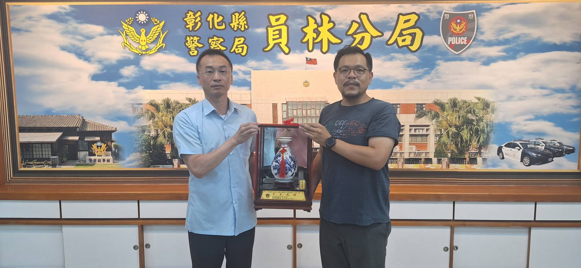 員林分局偵查隊2名偵查佐林家宏、許家瑜,長年投身刑事偵查工作,辦案經驗豐富、表現績優,屢次參與重大刑案偵破,展現出高度的專業能力與敬業精神。近日兩人同時獲升任為「刑事小隊長」,偵查佐許家瑜派任至北斗分局,而偵查佐林家宏續任員林分局,繼續為地方治安打拼,分局長洪再徳感謝他們長年為地方治安所付出的努力,親自頒贈升職紀念品,並祝賀兩位同仁仕途順遂。 本次升遷的兩位小隊長服務期間表現卓越,小隊長許家瑜曾榮獲112年度中華民國偵防協會刑事績優人員,而小隊長林家宏於本(114)年度更是榮獲「全國模範警察」殊榮,兩位小隊長皆各有佳績。 員林分局長洪再徳表示,刑事偵查工作責任重大,升任代表的不僅是職務提升,更象徵肯定與期許。期盼林家宏與許家瑜兩位小隊長在新職務上繼續發揮所長,以熱忱與專業帶領團隊打擊犯罪,持續維護轄區治安穩定。