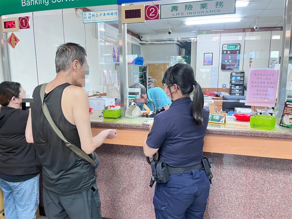 員林分局萬年派出所警員張嘉祐、洪品筑日前接獲中華郵政南門郵局通報,有民眾欲臨櫃提款新臺幣50萬元疑似遭詐,請員警到場協助。 張員等2人到場了解,詢問提款人黃○得提領該筆款項用途,黃民稱係裝潢房屋之用,員警進一步詢問房屋在何處?裝潢公司為何?黃民均無法應答,經查看黃民帳戶金流,近日有多筆款項陸續提出,鮮有異常,員警曉以大義,並宣導多樣詐騙型態,黃民始交付手機對話紀錄給員警查看,告知員警款項用於網路交友,員警觀察對話紀錄後,告知典型的「假交友」詐騙手法及相關案例,黃民才驚覺不對勁,放棄提款,本案即時為員警及行員關懷,成功攔阻新臺幣50萬元。 員林分局表示,交友投應透過合法媒介管道,勿輕信網路交友,有任何疑問應撥打165反詐騙諮詢專線即時查證。