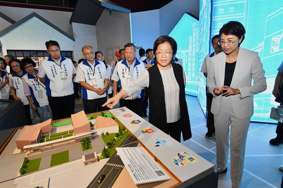 10月10日至26日台灣設計展在彰化盛大登場,南投縣長許淑華今(23)日特別到訪彰化及鹿港展區,先後參觀圖書館、藝術館、鹿江國際中小學、亞太鹿港渡假村及鹿港公會堂,由彰化縣長王惠美親自接待並導覽,一同感受這場設計盛會的無限魅力。 王縣長表示,感謝許縣長縣府團隊蒞臨彰化,親身體驗彰化及鹿港展區的設計能量。南投縣政府今年舉辦的世界茶葉博覽會及國慶煙火都相當精采,皆已圓滿落幕。彰投兩縣市關係緊密,期盼透過參訪相互學習,而能將經驗應用於各項施政參考。 南投縣長許淑華表示,很榮幸受邀參訪2025台灣設計展,中彰投是關係緊密的共同生活圈,過去大家都認為彰化是農工大縣,但其實彰化的文化底蘊非常深厚。這次設計展集結來自彰化及全國各地的菁英與好手,以彰化產業、文化為所有發想的起點,將不同鄉鎮的特色透過設計重新整合,充分表現各地亮點,發揮畫龍點睛的效果。 南投縣長許淑華指出,看見彰化縣政府透過設計展大力行銷地方特色,希望未來彰投兩縣市的經貿合作及各項觀光發展能更加緊密,學習對方所長。本次參訪學習到許多寶貴經驗,也將藉此提升南投的城市美學。 許縣長參訪過程中,走進鹿江國際中小學《圓夢行》,看見科技藝術、影像與美學的交織,300多年一路走來的歷史彷彿頃刻間在眼前展開,如同一條康莊大道收納著無數身影。其中「Talk to Tomorrow 海風留言牆」的互動裝置,輸入祝福與心聲及可共同參與彰化的未來故事,是令人新奇的體驗。 陪同參訪的人員有南投縣副縣長王瑞德、彰化縣政府民政處長劉玉平、建設處長陳昌茂、彰化縣文化局長張雀芬與南投縣府一級主管等人。