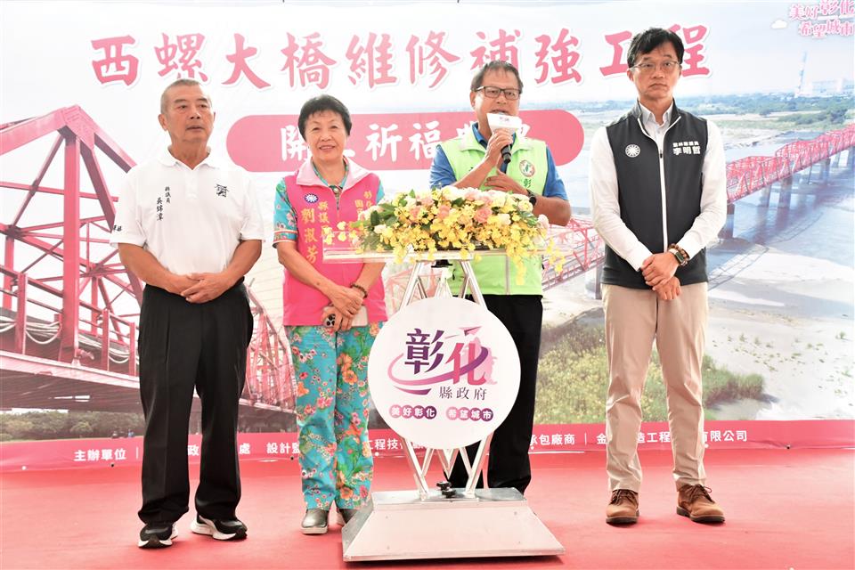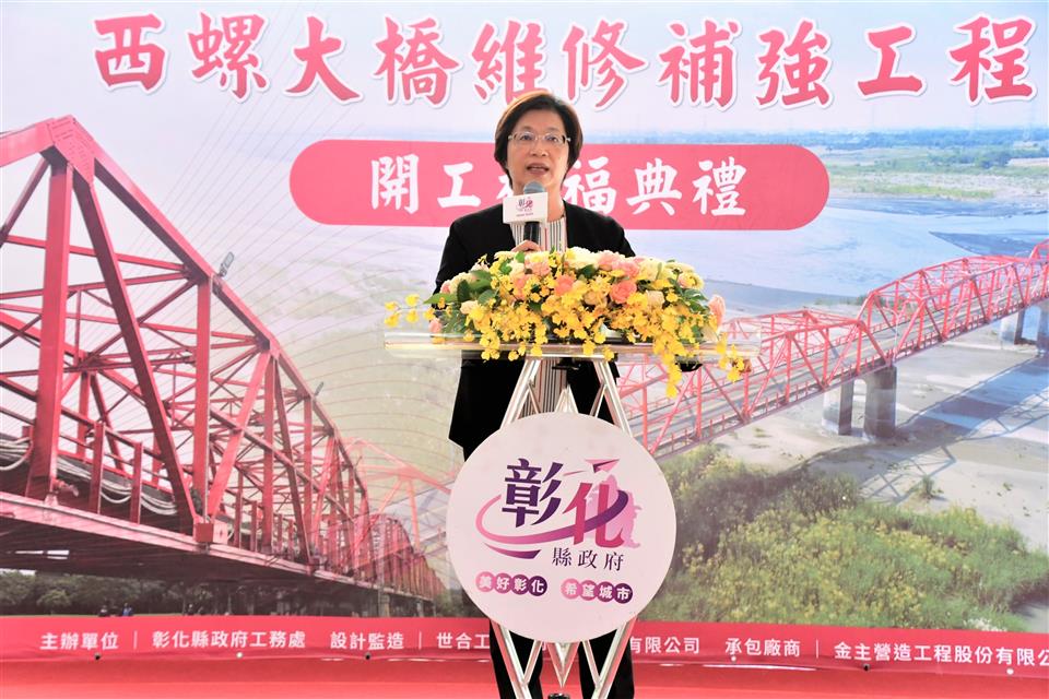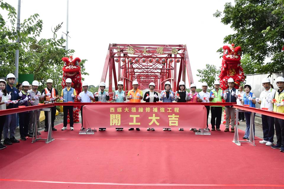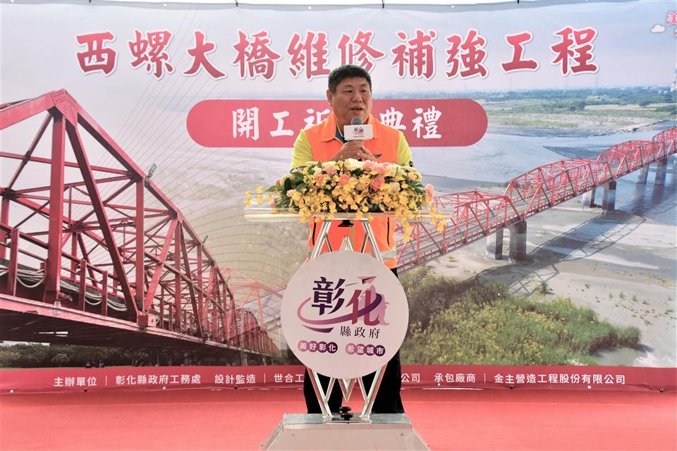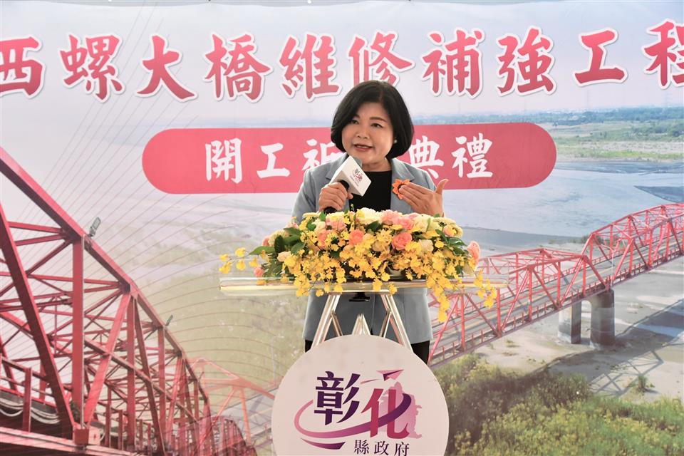 為祈求「西螺大橋維修補強工程」施工順利圓滿,彰化縣政府今(27)日上午於西螺大橋彰化端舉辦開工祈福典禮,彰化縣長王惠美邀請雲林縣長張麗善、交通部公路局代表、各級民意代表及地方仕紳共同見證開工時刻,象徵中央與地方攜手合作。 王縣長表示,西螺大橋見證了彰化縣與雲林縣的共同歷史,亦是串聯兩地的重要交通樞紐,自1953年開始通車至今,已有72年的歷史。全長1,939公尺,寬7.3公尺,為雙向通行,這31跨華輪式鋼桁架橋樑串聯了彰化溪州鄉與雲林西螺鎮,肩負著中部地區人流、物流與產業發展的交通命脈。同時也是兩縣的歷史建築,承載著文化價值與地方記憶。 王縣長指出,西螺大橋的橋樑構件已逐漸顯現漆面老化、色差不均、鋼構鏽蝕、橋墩裂縫、混凝土剝落及排水系統阻塞等問題。因此,彰化縣政府及雲林縣政府積極協調向中央爭取補助,本工程總經費為2.31億元,由交通部補助1.53億元、雲林縣政府分擔0.18億元及彰化縣政府自籌0.6億元,本次施工包括鋼構件局部補強修復、橋面伸縮縫修繕及外觀塗裝整新等工作。施工期間大橋將全線封閉,請鄉親改道使用台1線溪州大橋作為替代道路。總工期為400日曆天,預計於115年12月完工。 王縣長進一步指出,縣府將會全程監督施工品質與進度,確保橋樑修復後能更加安全、煥然一新。相信西螺大橋完工後將以嶄新的面貌迎向下一個里程碑,串聯起交通、觀光與文化的發展。 雲林縣長張麗善表示,西螺大橋是彰化雲林的共同橋樑,在農產運輸及各項交流上扮演著重要角色。感謝王縣長對地方基礎建設的用心投入與維護,除了向中央積極爭取補助外,兩縣也共同出資維護西螺大橋的修補強工程。這幾年王縣長對彰化縣投入的心力,大家都有目共睹。 立委謝衣鳯表示,西螺大橋不只是兩縣的共同記憶,也是臺灣的共同歷史,感謝王縣長縣府團隊用心擘劃及縣議會所有議員共同支持,讓西螺大橋的修補強工程能順利開工。在立法院也會持續爭取地方建設,讓西螺大橋暢行無阻,帶動地方繁榮與永續發展。 公路局中區養護工程分局長傅立祥表示,西螺大橋過去是台1線重要路段,自民國83年溪洲大橋通車後,這座舊橋便轉型為以文化與觀光為主,同時仍維繫地區交通。西螺大橋曾被譽為「遠東第一大橋」之外,當年橋梁的鋼樑結構在台灣乃至亞洲都相當有代表性。今天啟動的維修補強工程,完工後將能讓地方觀光與文化發展更上一層樓。 議員李俊諭代表議員致詞表示,兩縣目前主要的聯絡要道就是台1線上的溪州大橋和西螺大橋這兩座橋樑。西螺大橋在建造時採用了極為複雜的技術,橋樑上的鉚釘是在下方加熱後,從下方穿過待結合的鋼板孔洞進行鉚合,這項技術在當時堪稱是世界上獨一無二,這座橋過去還是南部農產品運往北部的管制點。感謝王縣長的重視與投入,未來將轉型為以文化觀光為主的用途,在此預祝工程一切圓滿順利。 與會人員有交通部公路局中區養護工程分局分局長傅立祥、雲林縣長張麗善、立法委員謝衣鳯、黃秀芳、立法委員劉建國服務團隊、立法委員張嘉郡服務團隊、彰化縣議員吳錦潭、李俊諭、劉淑芳、雲林縣議員李明哲、雲林縣議員鄭惠玲服務團隊、溪州鄉長江淑芬、溪州鄉民代表會主席莊正雄、副主席蔡華南、雲林西螺鎮長廖秋萍、西螺鄉民代表會主席林俊甫、副主席廖秀娟、彰化縣文化局副局長吳文昇、雲林縣交通工務局長汪令堯、雲林縣政府文化觀光處秘書侯博震、竹塘鄉田頭村北天宮主委黃崇啟、竹塘鄉保聖宮主委洪鑫辰、順心工業股有限公司董事長陳芝聖、金主營造工程股份有限公司董事長劉成枝與各級民代及地方仕紳等。