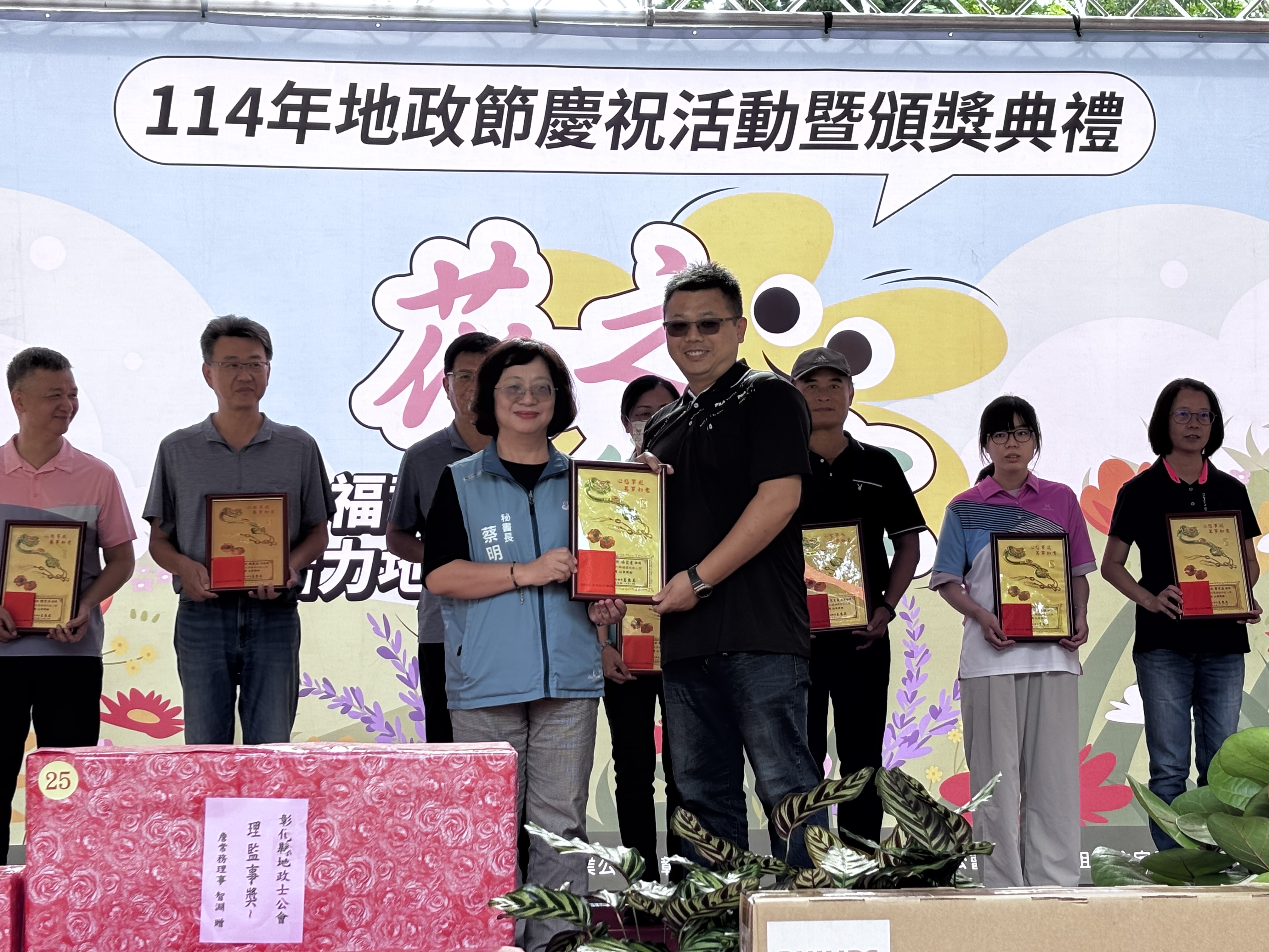 彰化縣政府於114年10月24日在田尾鄉公路花園怡心園舉辦「114年地政節慶祝活動暨頒獎典禮」,活動結合今年彰化縣大盛事「2025台灣設計展」,現場人聲鼎沸,溪湖地政黃主任帶領員工及眷屬踴躍參加,展現地政團隊的精神。 當日績優地政人員獎項由縣府秘書長蔡明娟親自頒獎,表揚協助推動為民服務及對地政工作助益良多的地政同仁,溪湖地政事務所楊宏達先生同為「114年度績優地政人員」得獎一員,榮獲殊榮。 溪湖地政事務所黃麗卿主任表示,該所今年獲獎同仁楊宏達先生地價兼辦總務,除在地政業務上克盡職守,對於服務同仁及洽公民眾積極主動,在該所近期一連串辦公廳軟硬體改善工程更是厥功甚偉,足堪同仁表率,期望全體同仁學習其精神,能再接再勵,再創佳績。 業務單位:溪湖地政事務所 聯 絡 人:謝先生 電 話:8813119#210