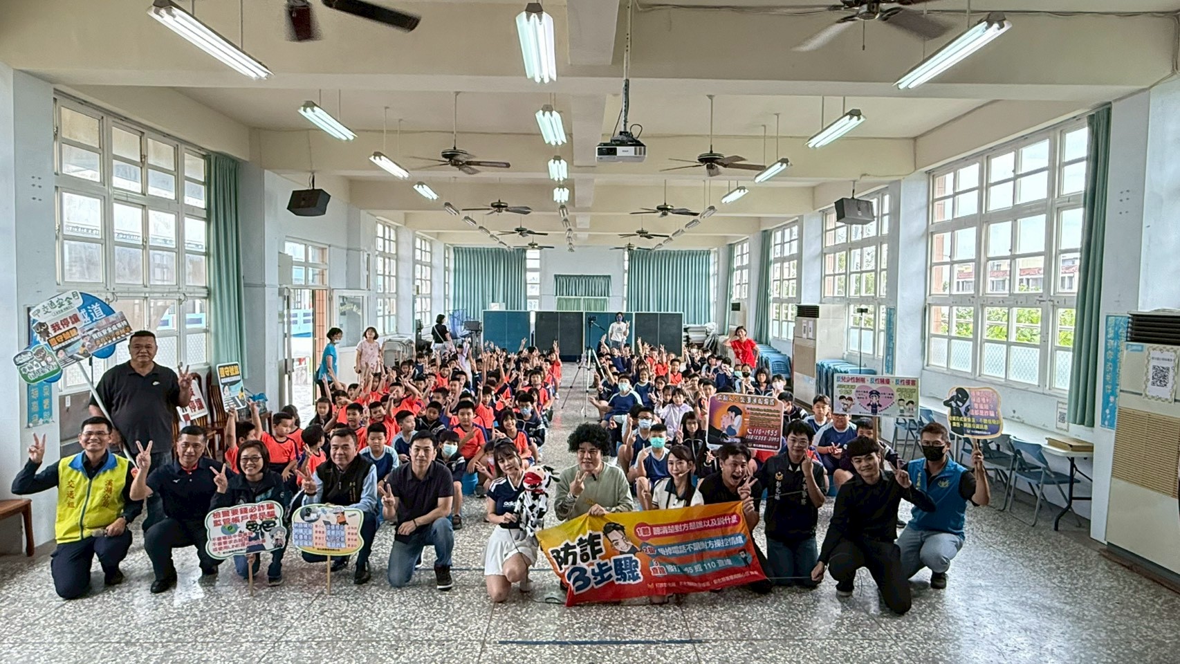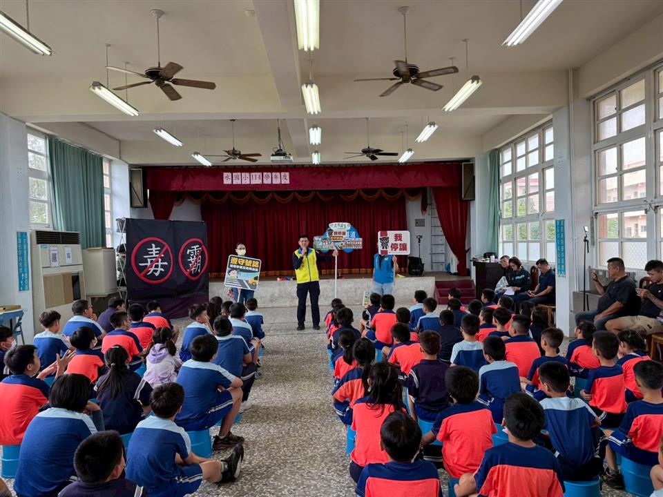 為加強兒童犯罪預防觀念,溪湖警察分局28日下午走入埔鹽鄉新水國小,與學童面對面進行反毒、防詐及交通安全宣導,透過生動講解與趣味互動,讓孩子們在輕鬆愉快的氣氛中學習自我保護的重要性,現場氣氛熱烈,笑聲與掌聲不斷。 溪湖警察分局表示,現今毒品與詐騙案件層出不窮,教育應從小紮根,警方提醒同學們要做到「拒絕毒品、不輕信陌生人、不隨意提供個資」,同時也呼籲大家在上下學途中務必遵守交通規則,注意車輛動態與行人安全,培養良好的交通習慣。活動中,員警以問答互動方式與學生熱情交流,透過簡單易懂的例子,讓孩子們記住生活中可能面臨的危險與應對方法。 除了警方的宣導外,現場也安排了腹語秀與宣導舞台劇,以趣味方式演繹反毒、防詐與反霸凌主題,寓教於樂、效果顯著。溪湖警察分局強調,警方將持續深入校園與社區推廣犯罪預防觀念,期盼透過教育與陪伴,讓孩子們遠離危險、學會自我保護,攜手打造安全、友善、無毒的幸福校園環境。
