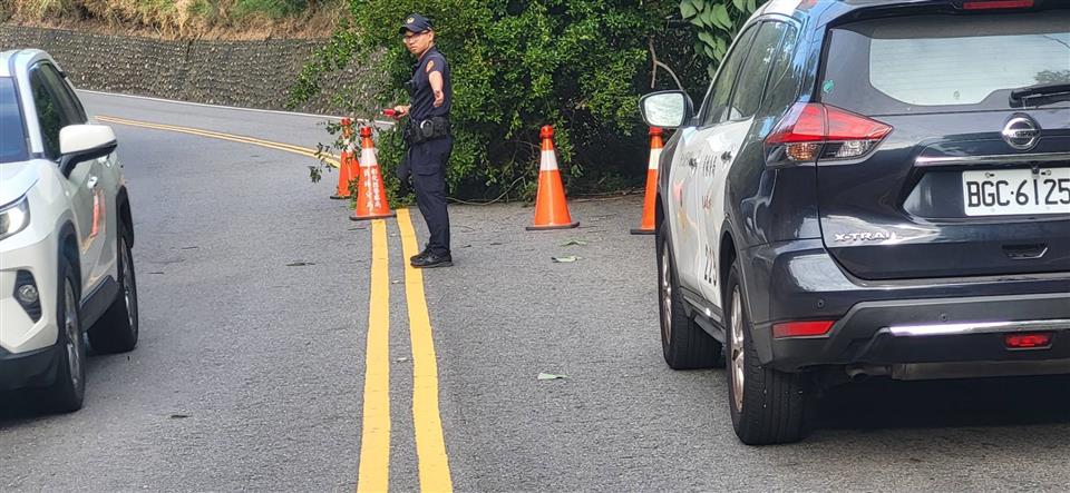 員林分局東山派出所警員包紘齊日前接獲熱心民眾至所報稱員林市員草路31.5公里往南投山路上有路樹倒塌,恐危害用路人安全,員警獲報後立即趕赴現場。 到場發現路樹因前陣子外圍環流影響,導致樹幹壞損倒塌,掩蓋整個車道造成危險。為防止交通事故發生,包員先行放置交通錐及警示燈,並進行交通疏導,等待彰化縣工務處人員緊急搶修,恢復道路正常通行。包員於第一時間放置警示範圍並迅速排除道路危害,有效防止交通事故發生,展現高度的責任感,對提升警察形象具有正面助益,足堪同仁表率,殊值表揚。 員林分局表示,颱風外圍環流過後應避免外出且注意道路周邊情況,尤其勿前往海邊、山區等高風險地區,及勿靠近倒塌電線、積水路段或圍牆老舊處,以防觸電或路樹坍塌危險以確保人身安全。