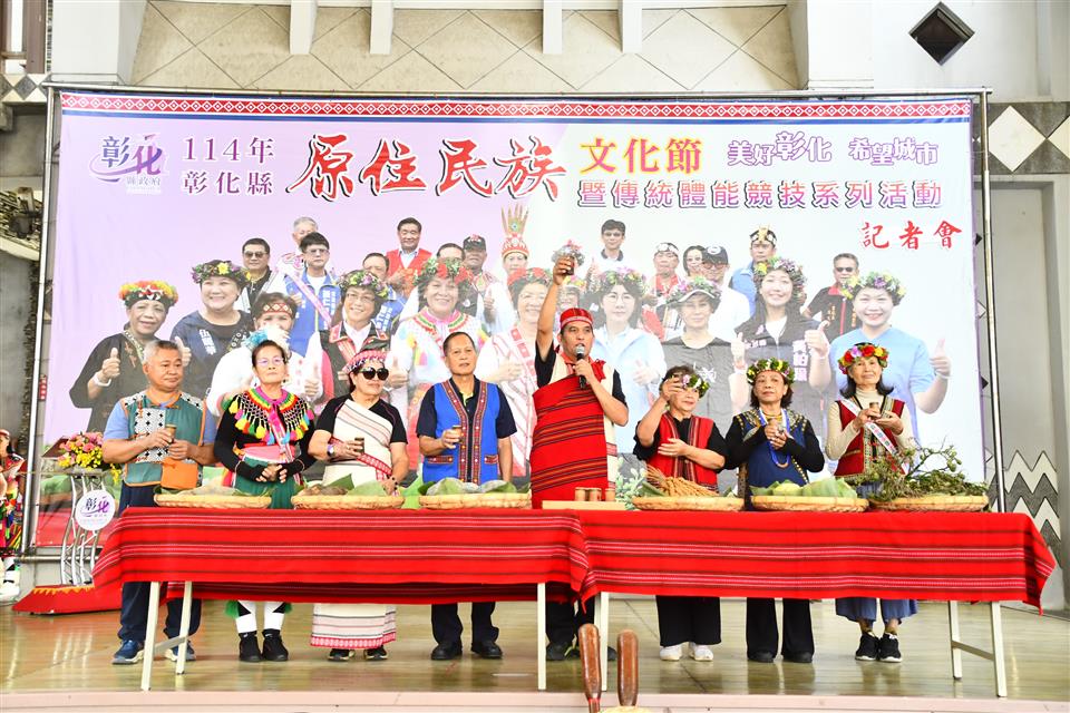 彰化縣內最具代表性的原住民文化特色活動—114年彰化縣原住民族文化節暨傳統體能競技系列活動,今(30)日上午在原住民生活館舉行宣傳記者會,縣長王惠美、議員陳榮妹、各族長老與族人朋友出席與會,一同相聚共舞,感受原住民文化底蘊。並邀請全國民眾,活動將於11月8日在彰化縣立體育館圓形廣場熱鬧登場,歡迎大家共襄盛舉,參與一年一度的彰化縣原住民族文化節。 王縣長表示,彰化縣內居住的原住民族共有16族,人數約有7,233位,為發揚各族文化特色,當日有聯合主祭祈福儀式、原音演唱、傳統體能競賽、原住民市集及政令宣導等五大類活動。其中祈福儀式由各族長老及代表組成聯合主祭團隊,以「敬天、敬地、敬祖靈」傳統儀式,傳達給年輕一輩族人,藉以維繫、傳承與宣揚自身文化,也祈求祖靈護佑族人,讓所有族人平安健康。 王縣長指出,這次活動有超過600位族人,組成12個隊伍進行傳統體能競賽與舞蹈競賽,同時有超過20攤原住民市集,將用原住民美食擄獲大家的胃,現場有5個單位組成的服務團隊,為原住民鄉親提供各項權益福利的諮詢服務與宣導。感謝陳榮妹議員長期為縣內原住民朋友提供生活指導與協助,積極為族人爭取福利。原住民生活館是原住民的家,希望各族朋友把彰化當成第二個故鄉,期盼都能受到最好的照顧服務,將原住民族文化及語言向下扎根。 縣議員陳榮妹表示,一年一度的文化節即將登場,今年參加隊伍是歷年最多的一次,感謝王縣長提供豐富的原住民福利政策,讓許多原住民朋友願意在彰化生活打拚。目前彰化有7千多名原住民,明年將新增一席山地原住民族議員為大家服務。感謝所有的族人對活動的支持與認同,今日記者會雖然沒有眾所期待的烤大豬,但提供搗麻糬活動讓大家體驗原住民的文化特色,歡迎大家11月8日一同蒞臨感受原住民族的多元文化。 民政處表示,活動當天將以祈福儀式揭開序幕,由潘福來長老引領各族長老祈福團聯合進行,感恩祖靈的庇佑,讓族人在各行各業都有傑出表現。今年體能競賽隊伍有不打散隊、彰化市隊、娜魯灣隊、台鳳隊、布農協會隊、埔鹽隊、鹿頂隊、天主教隊、關懷隊、彰化排灣隊、瑪撒露隊及布農待思安隊共12隊,超過600人參加競技競賽,分別來自本縣各個不同的族別聯合組隊參賽。9月開始就利用假日及晚上時間,進行1個月的練習,期待活動日展現亮眼成果,讓大家看見彰化各原住民族的文化之美。 與會貴賓有縣議員陳榮妹、彰化縣原住民不打散民族成長協會理事長林芝甄、彰化縣原住民關懷協會理事長凱樹.索克羅曼、阿美族長老高春花、吳寶玉、陳進山、泰雅族長老潘福來、賽德克族長老吳綉菊、排灣族長老郭恒生、魯凱族長老梁梅英、卑南族長老許靜芸、縣政顧問陳達育、縣府民政處長劉玉平、副處長陳俊南、彰化縣警察局彰化分局分局長林英煌、各族代表、各級民代與地方仕紳等。