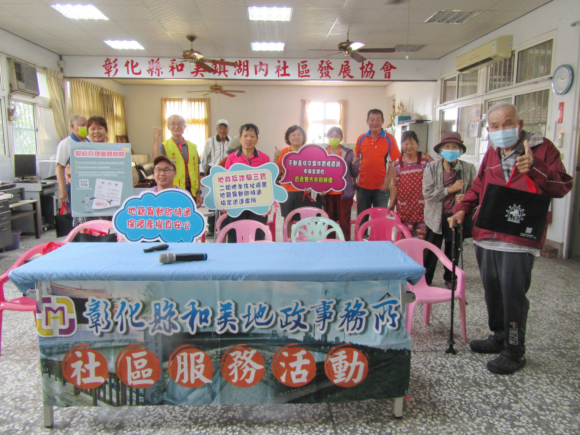 和美地政服務團隊於114年10月30日(星期四)上午前往和美鎮湖內社區發展協會辦理社區服務,感謝林國錠理事長熱心協助廣播在地鄉親前來參與,台上台下互動熱絡,活動圓滿完成。 房地產詐騙手法層出不窮,為加強在地鄉親防詐意識,本次社區服務和美地政王主任特別親臨現場進行防詐及便民服務措施宣導,如地政防詐三寶-「地籍異動即時通」、「住址隱匿」和「指定送達處所」三項免費服務,希望透過地政機關的協助,保護民眾的不動產財產安全;性別平權-消除因性別、性取向、性別認同等因素造成的歧視,讓所有性別的人都能享有平等的權利與機會,打破傳統的性別分工觀念及職業選擇迷失;土地財產健檢-透過土地基本資訊提供跨域多元健檢,如稅務、建管、農保、農舍等規定與限制;另外對於未辦繼承登記的處理及違規使用非都市土地使用分區及編定的情形也深入淺出地加以宣導,此行社區服務也在鄉親熱絡互動中圓滿完成。 本次社區服務很開心看到長輩們能走出家門參與社區活動,並感謝和美鎮湖內社區活動中心提供此服務據點,讓和美地政的服務能深入地方,有效提升地政業務宣導成效。 業務單位:和美地政事務所 聯 絡 人:楊小姐 電 話:(04)7552217#303