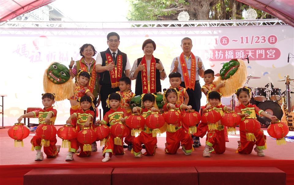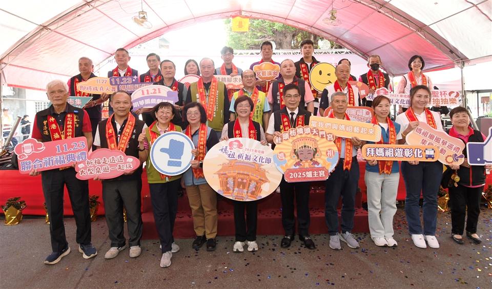 「2025彰化縣媽祖祈福文化節」今(7)日上午於社頭枋橋頭天門宮舉行活動宣傳記者會,縣長王惠美、社頭枋橋頭天門宮主委劉清尊及縣內12間宮廟代表出席,宣告活動即將展開。王縣長表示,一年一度的宗教盛事媽祖祈福文化節,今年由社頭枋橋頭天門宮擔任爐主宮廟,活動時間自11月21至23日,一連3天共13尊媽祖齊聚枋橋頭天門宮,一次就能向13尊媽祖祈願國泰民安、護佑地方平安。 王縣長表示,今年活動有四大亮點,第一適逢枋橋頭天門宮建宮270週年,結合媽祖祈福文化節舉辦文物特展,這裡展出的泥塑千里眼及順風耳手拿元寶,相當少見,適合做為學校戶外教學的地點。第二為規劃13間宮廟平安符集章活動,可用手機數位集章或索取紙本集章,集滿5枚即可在枋橋頭天門宮兌換紀念禮。第三活動期間先後安排明華園戲劇總團的歌仔戲演出、即將成真火舞團的國際表演以及媽祖祈福晚會邀請歌星演唱與摸彩,活動精彩。第四是祈福走透透-大型桌遊一起玩,骰子6面為愛情、健康、學業、事業、財富、友情,前進各宮廟,優勝者可獲得限量媽祖文創品。 王縣長指出,感謝枋橋頭天門宮及12間宮廟齊心努力,將媽祖宗教信仰與在地產業進行串聯,讓民眾感受媽祖文化的同時,也能了解豐富的在地特色。感謝議長謝典霖及所有議員的支持,還有地方公所、代表會與各單位的鼎力相助,媽祖祈福文化節越來越精彩,歡迎大家共襄盛舉。另外「彰化GO購」只要消費滿500元即可上傳發票抽大獎,為響應普發現金1萬元特別延長到今年12月31日,再加碼抽1台SUZUKI JIMNY、100名現金1萬元及iphone17等多項獎品,媽祖文化節這三天在社頭消費滿額即多贈一組抽獎序號,歡迎大家拜媽祖、求平安,把錢花在彰化抽大獎,一起帶動地方經濟。 社頭鄉長蕭浚二表示,感謝王縣長縣府團隊規畫媽祖祈福文化節,也恭喜枋橋頭天門宮,讓社頭更加熱鬧。媽祖祈福文化節展現媽祖慈悲為懷、樂善好施的精神,不僅弘揚在地文化,也推動產業發展,讓鄉親了解社頭的魅力。 枋橋頭天門宮主委劉清尊表示,感謝王縣長支持,期盼這次媽祖祈福文化節帶動地方產業、整合各方資源,提升宮廟知名度,縣府精心規畫許多活動,請民眾拭目以待。 文化局表示,活動期間除了可以一次拜13尊媽祖,獲得加倍神力庇佑,還有媽祖聯合繞境、博聖杯即時抽抽樂、稜轎腳擲筊求好運、公益串聯愛綿延、產業市集等精彩活動,歡迎大家蒞臨彰化體驗精采的宗教文化及無限魅力。 11月21日(五)上午10時,社頭枋橋頭天門宮將集結田中乾德宮、北斗奠安宮、埤頭合興宮、二林仁和宮、王功福海宮、芳苑普天宮、鹿港台灣護聖宮、伸港福安宮、彰化南瑤宮、芬園寶藏寺、員林福寧宮、溪湖福安宮共13間宮廟辦理駐蹕典禮,會香合爐。晚上7時在社頭鄉果菜市場安排獲得「亞洲最傑出藝人獎」歌仔戲無敵小生孫翠鳳領銜的明華園戲劇總團演出《紅塵菩提》,精彩可期。 11月22日(六)上午9時,13間宮廟媽祖車行繞境社頭街區,將帶來熱鬧氣氛,各式陣頭媽祖鑾轎,繞境社頭鄉街區,賜福全境、生意興隆、闔家安康。晚上7時由走遍30多個國家、享譽國際的「即將成真火舞團」帶來國際級火舞表演,展現光影與力量的視覺饗宴。 11月23日(日)下午4時辦理聯合祈福典禮,感謝13間宮廟媽祖並擲筊產生明年爐主宮廟,晚上7時安排「媽祖祈福晚會」,邀請知名歌星演唱,同時舉辦摸彩活動,獎品有55吋液晶電視、電冰箱、洗衣機、烤箱、吸塵器、電鍋、氣炸鍋、咖啡機、體重體脂器、媽祖福袋等。 枋橋頭天門宮創建於西元1755年,距今已有270年歷史。相傳施琅之侄施世榜奉媽祖像於鹿港天后宮,後有鹿港黃姓商人遷居枋橋頭,分香建廟,成為天門宮前身。清乾隆年間漳泉械鬥頻仍,地方八庄頭與七十二聚落組成「七十二聯庄」,共同迎請媽祖香火庇佑鄉里。天門宮為聯庄共同信仰中心,最大特色是廟內供奉八庄頭各自雕塑之媽祖神像,象徵團結護庄的信仰精神。清嘉慶三年(1798年)擴建時所留「海國安瀾」匾額,見證漫長歷史的演變。 與會貴賓還有縣議員蕭妤亘、詹琬惠、立法委員陳素月服務團隊、議員鄭俊雄服務團隊、議員許書維服務團隊、社頭鄉長蕭浚二、社頭鄉代表會主席陳慶福、社頭枋橋頭天門宮(爐主宮)主委劉清尊、彰化南瑤宮副總幹事蔡舜淵、員林福寧宮主委林献鐘、伸港福安宮主委曾添進、芬園寶藏寺主委余俊憲、田中乾德宮執行長陳宏傑、北斗奠安宮董事長陳在、埤頭合興宫主委楊龍河、二林仁和宮主委蘇福森、溪湖福安宮主委楊士弘、王功福海宫主委林義璿、芳苑普天宮副主委洪宗從、鹿港台灣護聖宮副主委莊雲卿、社頭鄉農會總幹事蕭良珍、彰化縣政府秘書長蔡明娟、彰化縣文化局長張雀芬、縣府機要秘書張建豐、各級民意代表及地方仕紳等。 「2025彰化縣媽祖祈福文化節」詳細活動資訊,請上彰化縣文化局官網查詢:https://www.bocach.gov.tw/MAZU/