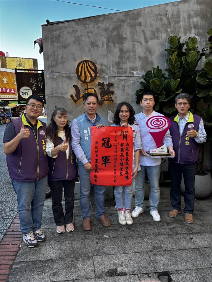世界第一名的冰淇淋來自鹿港小鎮,義大利西西里島舉辦第17屆Sherbeth Festival國際冰淇淋節世界大賽,來自台灣彰化鹿港小鎮的趙韻嵐奪下首獎,消息傳來,彰化縣長王惠美恭賀來自彰化鹿港女兒趙韻嵐勇奪世界冰淇淋冠軍,不僅是彰化之光,也讓世界看到彰化,看到世界最好吃的手工冰淇淋就來自彰化。 從小在鹿港長大的趙韻嵐曾榮獲多項國際冰淇淋製作大獎,選擇在地深耕的她在家鄉鹿港隱身鹿港老街,緊鄰天后宫老街的古宅(位於鹿港鎮中山路426號之1),創辦山風藍義式冰淇淋,運用在地食材創造獨特口味,這次運用鹿港在地的百花蜂蜜結合台東紅烏龍,推出「烏龍茶之光」口味參賽,在義式冰淇淋的故鄉脫穎而出。 王縣長表示,恭喜趙韻嵐拿到世界冠軍!看到彰化青年在國際賽事上贏得冠軍,凱旋而歸在地深耕,為了讓彰化青年新創的能量繼續發光發熱,輔導青年創業的決心更加堅定,縣府青創補助最高30萬元,凡是彰化縣18歲至45歲的青年朋友,上滿創業研習課程達30小時,就可以提案來申請彰化縣青年創業獎勵補助,歡迎大家踴躍前往品嘗在地好滋味,力挺年青人! 趙韻嵐選擇在彰化在地深耕,選用彰化在地物產,作為義式冰淇淋的口味研發,有社頭芭樂、大村葡萄、花壇茉莉花、溪州黑米、福興鮮乳、在地職人蜂蜜等,帶給民眾全然不同的味蕾饗宴,更使彰化物產有全新的呈現,開發春日期間限定「香菜義式冰淇淋」,讓鹿港老街增添一番耐人尋味的好味道。 (比賽照片由趙韻嵐提供)