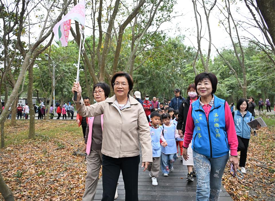彰化縣政府為提升溪州公園整體遊憩品質與安全性,推動「溪州公園森林木棧道區改善計畫」,歷經半年多順利完工,今(19)日縣長王惠美前往溪州公園森林木棧道區廣場主持啟用典禮。王縣長表示,感謝議長謝典霖及所有議員對預算的支持,投入總經費達新臺幣1,416萬4,937元,辦理多項設施更新與環境優化,為遊客打造更友善、安全且富含特色的森林休閒樂園。 王縣長表示,本次改善涵蓋木棧道護木漆塗佈總長度約1,710公尺、整修更換木棧道約1,476平方公尺、木平台約466平方公尺與更新座椅,並新增導覽牌、拍照框景意象、意象階梯、文字欄杆、休憩躺網、休憩吊床與框景座椅小屋等設施。讓遊客不僅能更舒適、安全地漫步於木棧道上,也能在各入口處拍照留念,希望藉由景點的點線面串聯,吸引觀光客,提升周圍經濟效益。另外,溪州公園也邀請到籌畫台灣設計展田尾展區的吳書原老師,打造溪州公園的品牌亮點。 王縣長指出,配合木棧道完工啟用,特別安排「森林打卡集章趣」活動,沿著木棧道路線,在各設施點提供集章任務。一邊觀光健行,一邊欣賞自然之美,集滿印章即可兌換精美小禮物,增添活動趣味。 議員李俊諭表示,來溪州公園運動的人很多,大家都說又多一座夢幻森林,園區內很多標語,從入口盪鞦韆到轉角遇到愛,適合情侶來約會。王縣長非常用心,也很接地氣,用心支持地方建設,本案經費1,400多萬元,打造美輪美奐的環境,讓鄉親有很棒的地方運動促進身體健康。感謝台糖大力的協助以及王縣長縣府團隊的用心執行。 溪州鄉長江淑芬表示,這座溪州公園森林步道,是許多親子、長者,每天都會來運動的地方,來拍婚紗的民眾也不少,感謝王縣長這些年來對溪州的支持,除了步道外,也投入大量經費整修西螺大橋,以及西螺大橋旁的稻田彩繪,打造成一個充滿樂趣的遊樂園。感謝所有議員對預算的支持,才有機會推動更多建設,大家一起努力,共同達成「美好彰化 幸福溪州」的願景。 城市暨觀光發展處表示,「休憩躺網」、「休憩吊床」與「框景座椅小屋」等特色設施讓民眾在探索自然的同時有更多元有趣的休憩空間,休憩躺網及休憩吊床讓遊客能在森林區的寧靜角落中放鬆身心、仰望天空,感受綠意環繞的愜意氛圍;框景座椅小屋則以融合自然景觀的框景結構設計,提供獨特視角,讓民眾拍出如畫的風景照,同時可以自在歇息,享受悠閒時光。 溪州公園擁有豐富的自然景觀與生態資源,是居民運動、散步與親近自然的重要場域。縣府未來將持續推動各項公共建設與綠地環境改善計畫,營造更宜居的生活空間,讓民眾在日常休閒中體驗自然之美,進一步促進地方經濟及永續發展。 與會貴賓有縣議員李俊諭、劉淑芳、李浩誠、縣議員吳錦潭服務團隊、前立委鄭汝芬、溪州鄉長江淑芬、溪州鄉農會理事長廖信東、常務監事鄭輝煌、總幹事彭顯賦、縣府秘書林芳娟、鄭朝元、城觀處長王瑩琦、縣政顧問林明暐、劉侑信、各級民代與地方仕紳等。