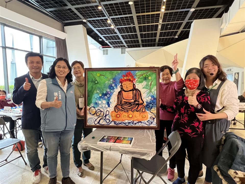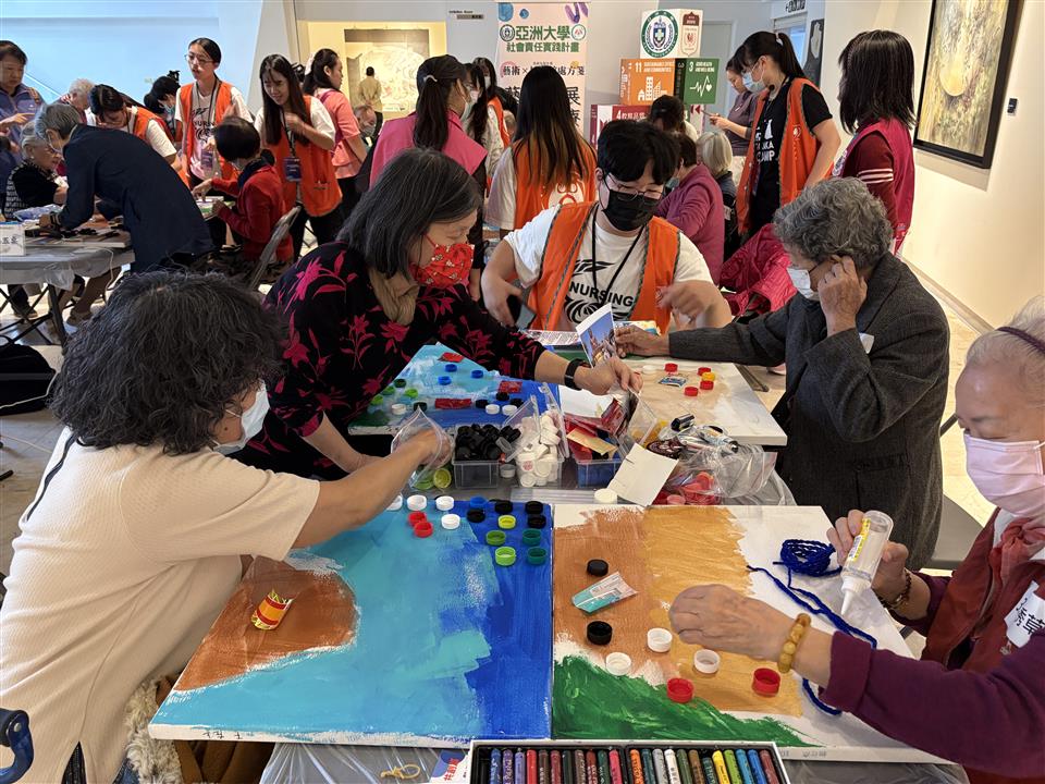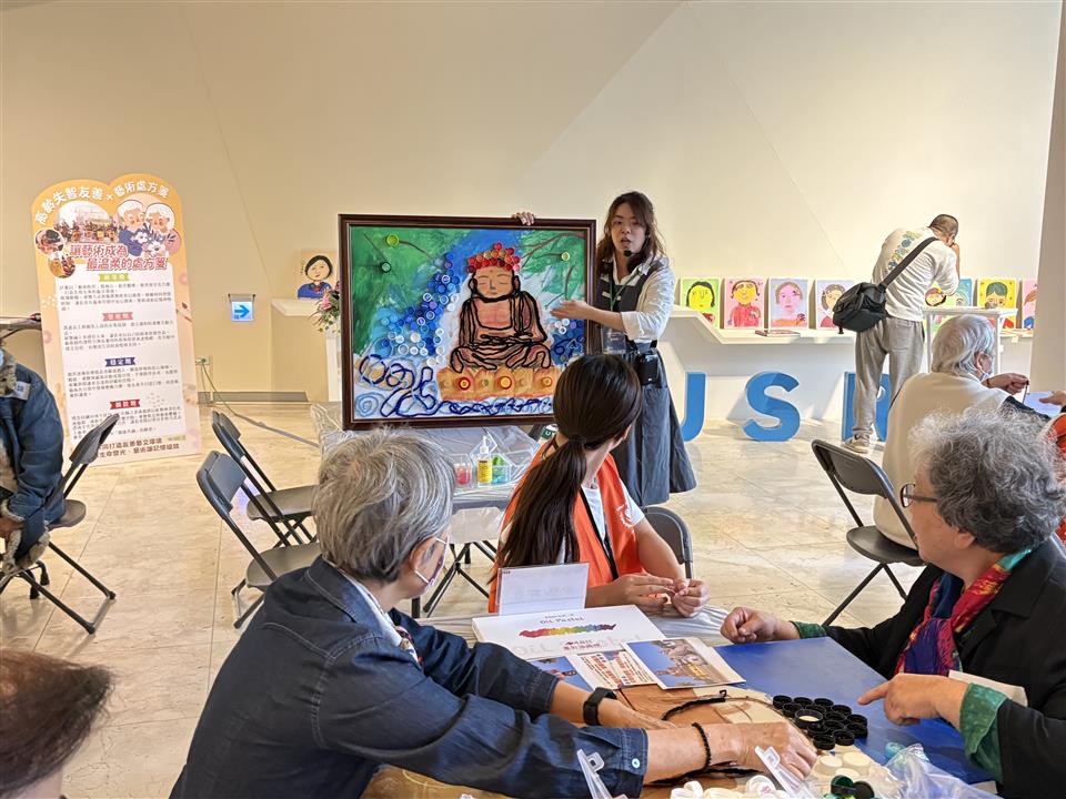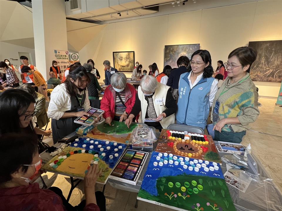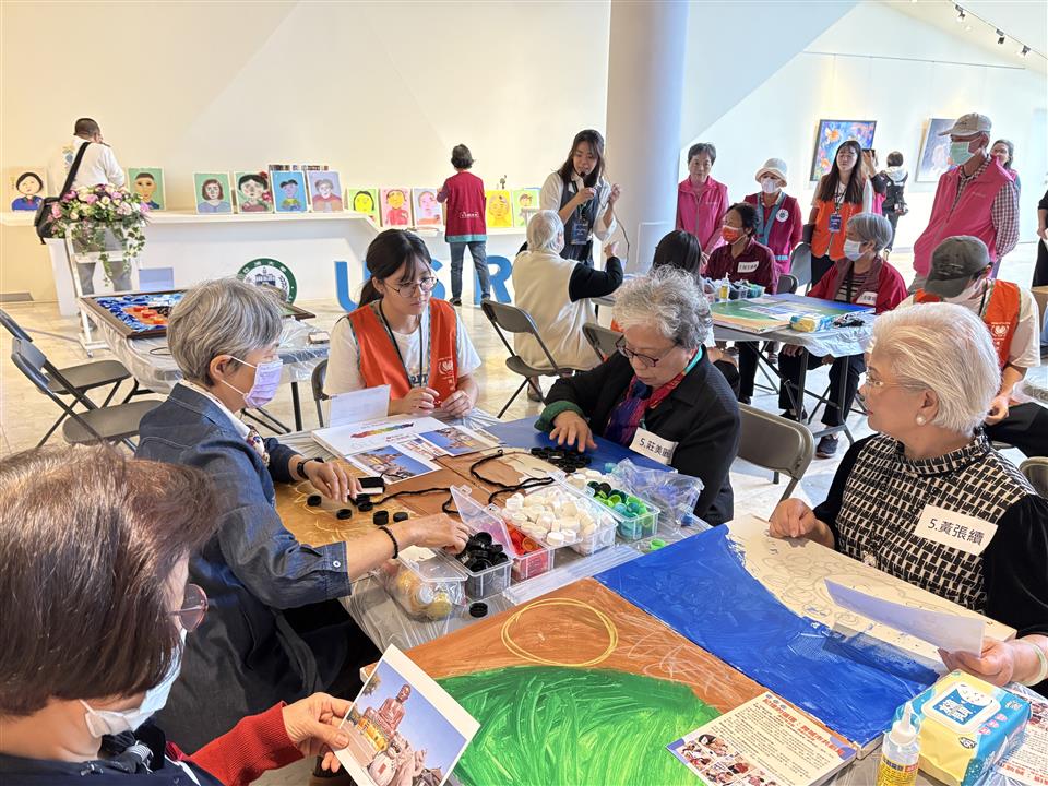 為推動高齡友善城市與文化共融理念,彰化縣文化局今(19)日上午於縣立美術館舉辦「藝術處方箋 × 愛心共融日」活動,與亞洲大學護理學院護理學系副主任林君黛、秀老郎董事長邱暉智以及員林市長照中心「秀老郎」的29位長輩們走進美術館,參與瓶蓋毛線創作課程,並欣賞自己親手完成的「自畫像」展出,現場充滿藝術帶來的溫暖與療癒。 彰化縣已邁入超高齡社會,縣府積極推動跨領域合作,將文化藝術融入長照關懷。縣府攜手亞洲大學護理學院USR團隊,共同推動「藝術處方箋」計畫,透過藝術輔療課程、創作體驗與展覽活動,讓長輩與失智症族群在創作中表達情感、喚起記憶,並重拾自我價值與成就感。 張雀芬局長表示,藝術不只是美的欣賞,更是一帖能療癒心靈的良方。許多秀老郎的長輩日前(11/7)在美術館完成了屬於自己的「自畫像」,每一幅作品都蘊含著珍貴的生命故事與情感,展現了年長者獨有的堅韌與溫度。如今這些作品在現場展出,不僅讓長輩的創作被看見,也讓社會大眾透過藝術看見「老得有尊嚴、活得有光彩」的真實樣貌。 活動當日同時也是彰化縣文化場館每月的「愛心共融日」,彰化縣將每月第三週星期三訂為「愛心共融日」,以推動文化平權、營造友善無礙的共享藝文空間為宗旨,讓關懷化為具體行動。本次活動以「創作、互動、陪伴」為主題,特別安排瓶蓋毛線手作課程,鼓勵長輩們動手創作、彼此交流。 文化局推動「藝術處方箋」計畫不僅呼應聯合國永續發展目標SDG 3「健康與福祉」,更實踐美術館的社會責任,讓藝術走出展覽框架,走進人們的生活與心靈。未來也將持續與各大學及社福單位合作,打造更多高齡友善、文化共融的活動與空間,讓「藝術」成為最溫柔的陪伴。