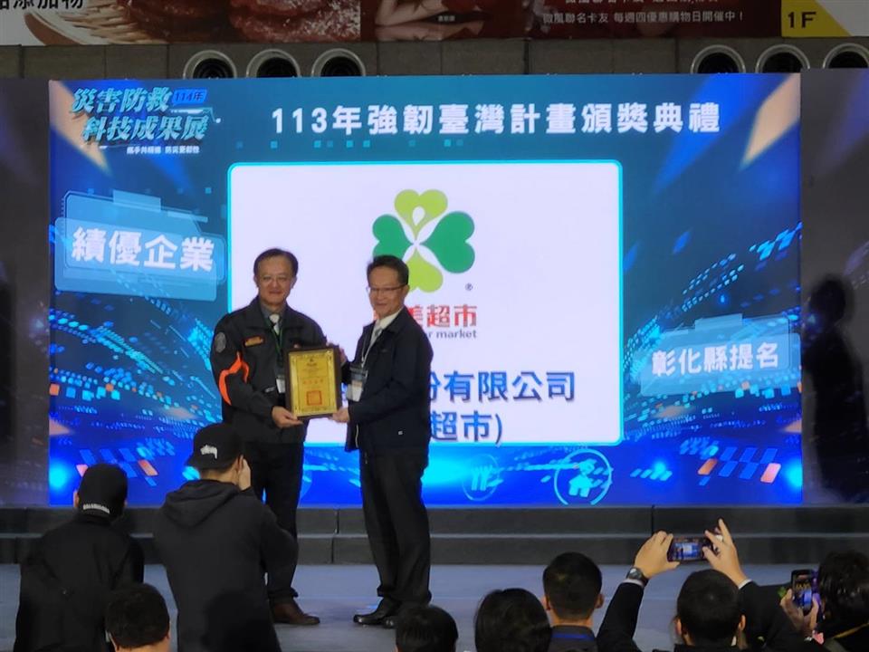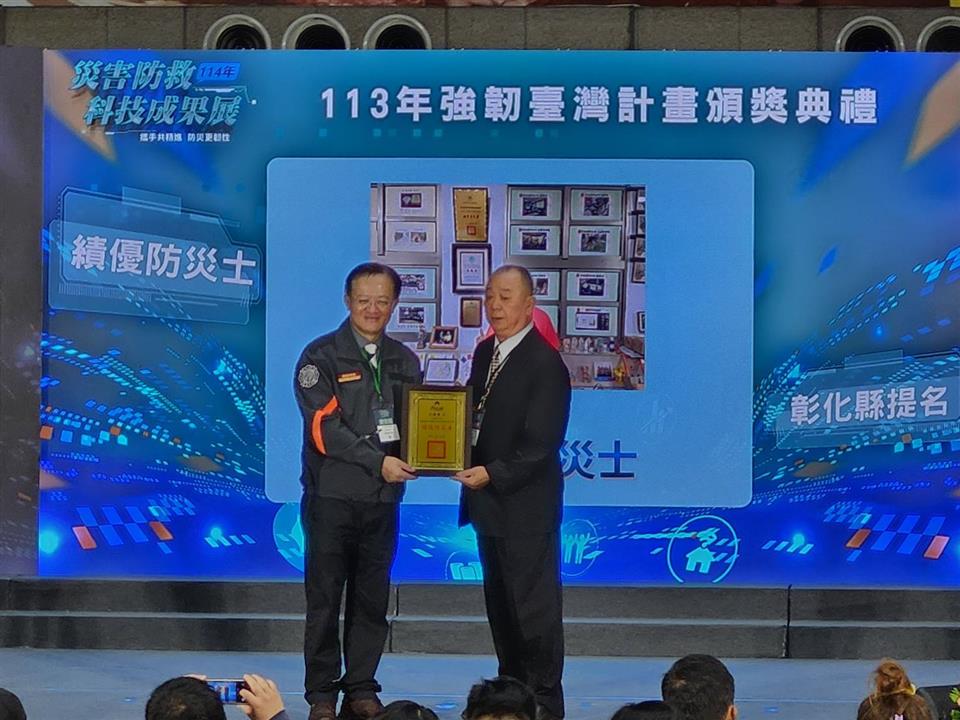 彰化縣長王惠美縣府團隊致力於將災害防救工作扎根至各層級單位,從縣府、公所、企業到社區與防災士,透過跨領域的協調合作,建立完整且具韌性的防救體系。在本縣各層級的共同努力下,「強韌臺灣大規模風災及震災整備與協作計畫」再次以亮眼成績脫穎而出,勇奪全國特優殊榮,王縣長感謝公所、企業、韌性社區以及防災士的共同努力,卓越表現深獲中央與各界肯定! 彰化縣災害防救績優團隊,於114年底前往台北車站多功能展演廳接受表揚。獲獎績優單位包含北斗鎮公所、績優企業金喜美股份有限公司、績優韌性社區北斗鎮中寮社區,以及卓越表現的防災士代表秀水鄉馬興村范鎱楨,由內政部消防署蕭煥章署長親自頒獎,肯定本縣多年來持續努力的成果。 消防局表示,獲獎不是結束,而是另一個全新的起點。未來我們將持續精進專業,再接再厲,以更完善的災害防救能量持續守護彰化縣每一位鄉親的安全。攜手打造更安全、更有韌性的幸福家園,以實際行動共同實現「美好彰化 希望城市」的願景。