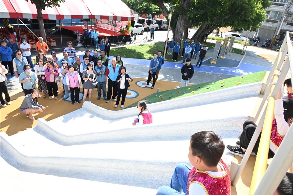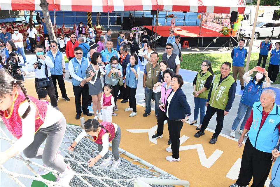為推動「一鄉鎮一特色公園」的施政目標,彰化縣政府選定埤頭鄉合興村縣有地打造全新主題公園。縣長王惠美今(25)日出席主持開園啟用典禮,宣布佔地500坪(1,680平方公尺)的埤頭鄉「樂米公園」嶄新亮相,以埤頭鄉知名的「台稉九號米」發想,取「Love 米」-「樂米」為公園名稱,為鄉親再添一處結合文化與遊憩功能的親子同遊新亮點。自去(113)年12月開工,今(114)年9月如期完工。感謝議長謝典霖及所有議員對建設預算的大力支持,使縣政得以順利推動。 王縣長表示,縣府團隊編列約新臺幣1,200萬元工程經費,打造兼具趣味性與安全性的LOVE米-「樂米公園」,這塊土地是縣有的住宅用地,鄰近幼稚園、學校。為了讓地方資產發揮最大效益,縣府決定不出售住宅用地,而是將其打造成適合孩子遊玩及大人休憩的優良場所,希望家長多帶孩子來公園放電,遠離3C,親子關係也會更好。 王縣長指出,公園設置可愛造型的「米寶公仔」讓民眾打卡,還有外型像米倉一樣的「旋轉穀倉」遊具,讓孩子們可以攀爬及旋轉;另外也有吊環、單槓的健身設施,鼓勵鄉親多多運動。主題遊戲場是地景式的稻田堡壘,讓孩子透過繩網攀爬,好好放電。還有適合各年齡層的盪鞦韆、造型搖搖馬、還有翹翹板。此外,樹蔭下的休憩座椅則為家長提供舒適的看顧空間,體現友善的環境設計。 縣議員李俊諭表示,感謝王縣長縣府團隊快速的行政效率,讓埤頭鄉樂米公園在1年內完工落成,議會也會大力支持縣府的施政計畫,提供鄉親更多親子活動的好去處。 埤頭鄉長杜懿彩表示,感謝王縣長不惜重資,將埤頭鄉的精華地,用來興建樂米公園,並以埤頭鄉的米為主軸,讓大家知道米的故鄉在埤頭。公園設置的遊樂設施,不僅讓孩子可以來遊玩,大人也可以來休閒娛樂,適合全家大小一起共度美好時光。 城觀處表示,縣府近年來持續積極推動共融公園建設,已陸續完成並啟用多處特色公園,包括田尾怡心園、伸港嬉濱海豚公園、員林兔馬鹿公園、溪湖中央公園、田中熊趣米公園、二林星球探索樂園,八卦山天空遊戲場等,「樂米公園」的完成再添一處亮眼成果。目前已經陸續完成16座共融公園,各有主題和特色。縣府日前推出「彰化公園王」打卡抽獎活動,每打卡一座公園就有一次抽獎機會,打卡越多機會越多,獎品有兒童滑步車+護具組、磁力積木滾球組、得寶工程車組、旋轉冰沙遊戲組、海豚大拼圖及智慧軌道球組合等豐富大獎。誠摯邀請鄉親與全國民眾走訪彰化,體驗每一座共融公園,跟家人一起變身「公園王」! 與會人員有立法委員謝衣鳯、縣議員吳錦潭、李俊諭、縣議員李浩誠服務團隊、劉淑芳服務團隊、埤頭鄉長杜懿彩、埤頭鄉民代表會主席張景舜、副主席陳國雄、彰化工策會總幹事洪榮章、順彬營造有限公司總經理張志豪、華廷國際設計顧問股份有限公司經理徐斯慎、防火宣導大隊長葉慧君、前彰化市長邱建富服務團隊、民眾黨埤頭鄉主任許泰祥、機要秘書張建豐、秘書鄭朝元、城觀處長王瑩琦、副處長林豊翔、各級民代與地方仕紳等。