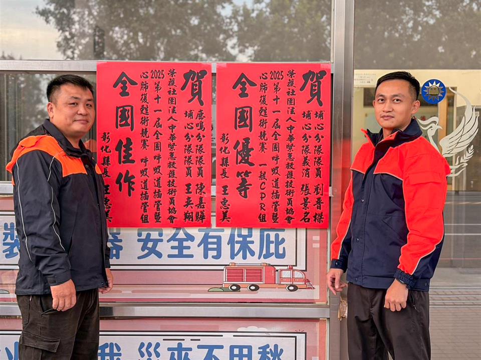 彰化縣消防局於社團法人中華緊急救護技術員協會「2025第十一屆全國呼吸道插管暨心肺復甦術競賽」中再傳捷報,包含2位高級救護技術員(EMT-P)鹿鳴分隊隊員陳嘉驊與埔心分隊隊員王奕翔,以及埔心分隊隊員劉晉榤與義消張景名,分別在「呼吸道插管組」與「一般CPR組」展現專業實力,脫穎而出。其中,王奕翔與陳嘉驊在與全國各縣市共50組呼吸道插管組參賽人員(包含醫師、專科護理師、麻醉科護理師或高級救護技術員)的激烈競爭中獲得「全國佳作」,劉晉榤與張景名亦自一般CPR組共45組參賽隊伍中勇奪「全國優等」。彰化縣長王惠美於1月27日擴大主管會報中頒發表揚狀,肯定消防同仁在救護工作上的投入與努力,以專業能力守護縣民。 本次競賽集結全國優秀救護人員,內容涵蓋CPR技術操作、呼吸道插管技能、團隊合作流程、突發情境應對等多項專業考驗,參賽者須在限時與高壓環境中完成操作,是檢視救護技術及應變能力的重要平台。 鹿鳴分隊陳嘉驊與埔心分隊王奕翔均曾代表彰化縣消防局參加為期近1年的EMT-P訓練,均各以該期訓練第2名之優異成績結訓。返隊後更積極投入第一線救護勤務、研討會及競賽,持續精進臨床判斷與緊急救護處置能力。陳嘉驊與王奕翔表示,本次參賽的主要目的是透過全國性競賽平台檢視自身實務技巧,並吸收多元臨床思維。為迎接競賽挑戰,2人投入大量時間強化呼吸道插管流程、團隊默契與突發狀況應變能力,透過多次模擬與流程優化,使技術更加成熟。「呼吸道插管組」競賽採限時與高壓模式進行,對參賽者之操作速度、判斷能力與技術穩定度均構成嚴格考驗。2位EMT-P在競賽現場展現出「精準、迅速、穩定」的核心能力,最終榮獲「全國佳作」。 埔心分隊隊員劉晉榤與義消張景名長期投入急救訓練,本次代表本局參加「一般CPR組」競賽,2人以高度標準化的操作、穩定的節奏及精準的動作,勇奪本屆「全國優等」佳績。劉晉榤與張景名表示,參賽主要是希望藉由競賽的高強度要求來檢視自身的CPR技術,也能透過與各單位參賽者交流,提升操作細節的穩定度。他們說:「CPR是最直接影響存活率的關鍵技能,每個細節都會影響結果。我們希望把每個步驟反覆操作演練精準,讓自己在執勤現場更有能力守護生命。」 彰化縣消防局表示,透過參加各類急救競賽,不僅能提升救護人員與義消人員的專業能力,也能回饋至日常勤務及民眾急救教育,促進急救知識的普及,使更多民眾具備第一時間救人的能力。彰化縣持續在救護專業與品質上努力受到各方的肯定,消防局將持續培訓優秀人才,充實緊急救護裝備,提升彰化縣到院前緊急救護品質,持續守護縣民的健康。