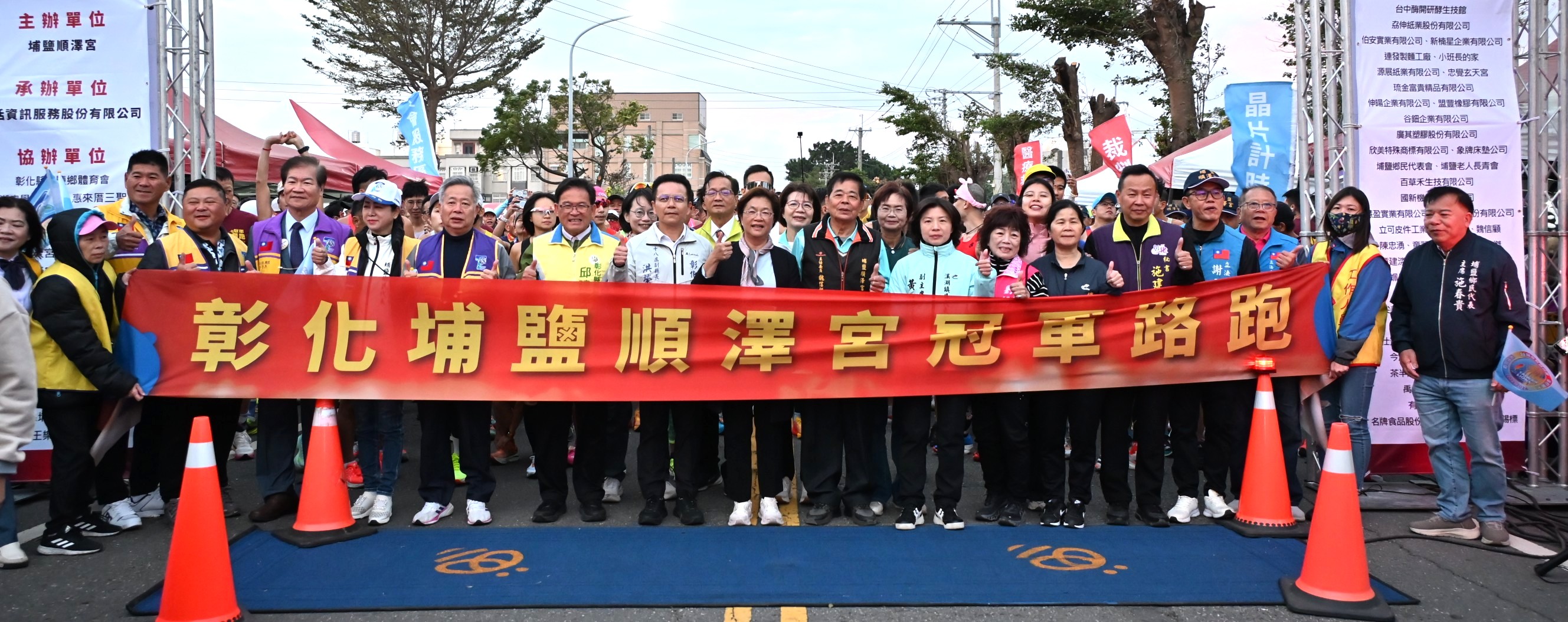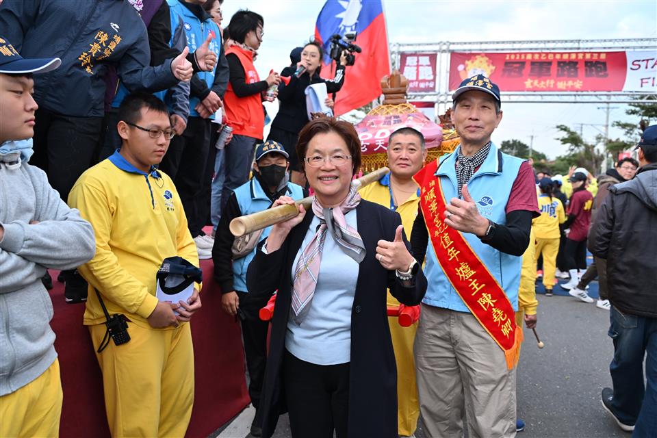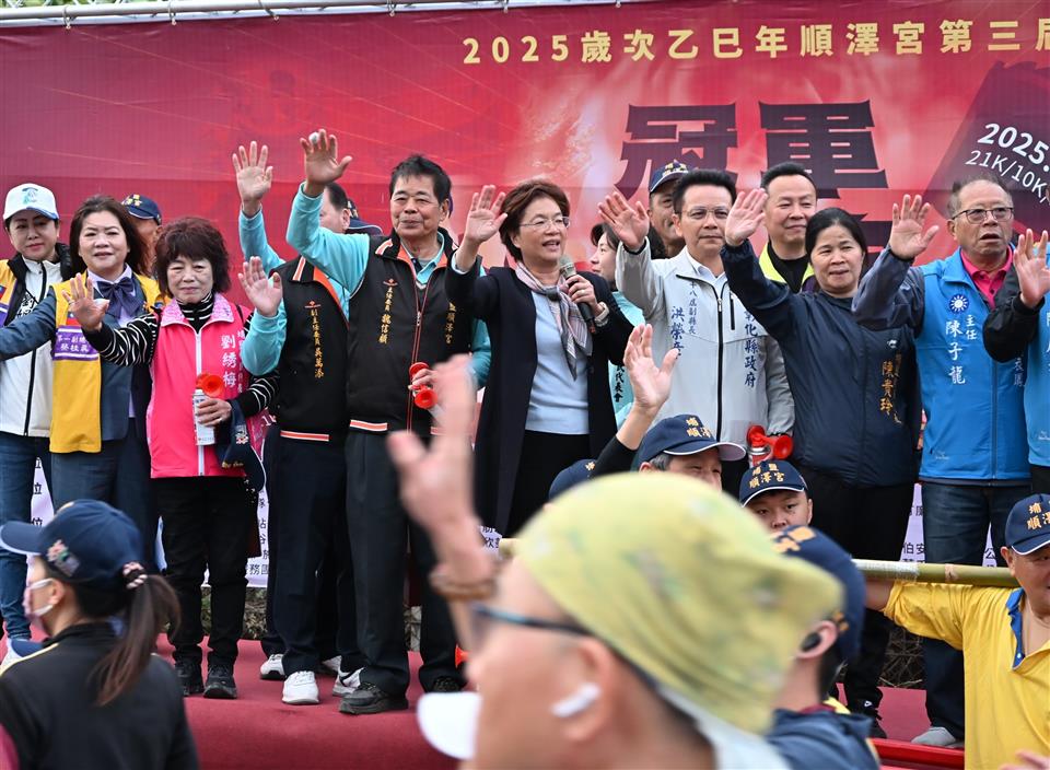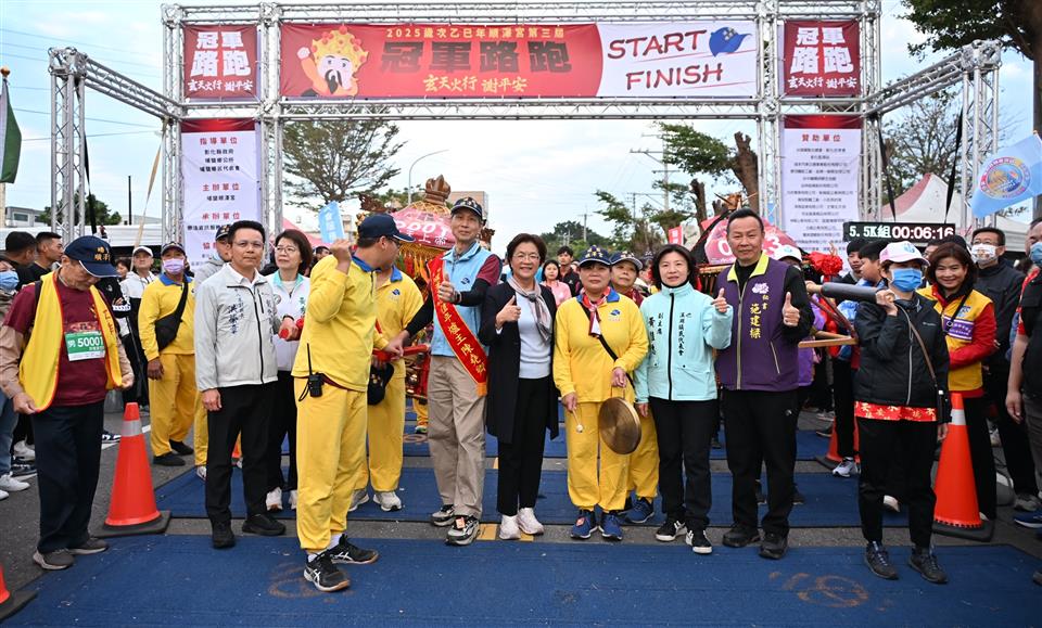 彰化馬拉松嘉年華最終場,「2025歲次乙巳年順澤宮第三屆冠軍路跑」於今(14)日在埔鹽順澤宮熱鬧登場,吸引超過三千名跑者共襄盛舉,宮前廣場一早即湧入許多人潮,氣氛熱烈。彰化縣長王惠美親自到場與跑者同樂,並與貴賓共同鳴槍啟動賽事,給予選手誠摯的祝福。王縣長表示,埔鹽擁有深厚的宗教文化底蘊與蓬勃社區動能,今年賽事再度吸引全台跑友踴躍參加,充分展現彰化邁向「運動大縣」的強勁能量與魅力。 王縣長表示,今年是順澤宮第三屆冠軍路跑,「順澤宮冠軍帽」眾所皆知,而且香火靈驗,感謝順澤宮魏主委用心帶領團隊策劃活動,每年路跑各具特色。今年跑路除了補給有烤大豬、烤乳豬、龍蝦、米粉湯、臭豆腐等最道地的埔鹽美味,讓各位跑者能大飽口福外,沿途也串聯眾多在地宮廟,讓跑者在奔馳之間感受在地信仰,彷彿「與神同行」。今年更創新推出「轎班馬拉松特訓」,把祈福文化融入跑步訓練,是一個連結運動、美食與宗教,不容錯過的特色路跑。 王縣長指出,要活就要動,祝福各位跑者都能突破自我、再創佳績。並提醒天冷運動務必注意身體健康,安全第一,適時補充水分。縣府近年積極打造友善運動空間,期望協助大家培養規律運動習慣。並將運動結合觀光,吸引運動好手來彰化運動,同時欣賞美景及品嚐美食。感謝所有跑者參與這次路跑,祝福大家在彰化跑出健康與幸福。 順澤宮主委魏信顧表示,今年的路跑相較以往做了一些調整,並特別邀請二水安德宮媽祖一同參與,希望帶給各位跑者全新感受,並提醒大家注意自身安全與身體狀況。 彰化縣政府表示,本屆賽事路線相當具特色,自順澤宮出發,沿途串聯玄天宮、天聖宮、福德宮等多處在地重要宮廟,讓跑者能在奔馳間祈求神明賜福,感受宗教信仰的力量。今年更安排「玄天火行」與「謝平安」儀式,象徵「與神同行、祈安祈福」的意涵。此外,今年特別推出「轎班馬拉松特訓」,將宗教祈福文化融入訓練設計,深化「宗教 × 運動」的品牌特色,提升賽事辨識度。沿途補給站同樣為全場焦點,除了有烤大豬、烤乳豬、龍蝦、干貝與最道地的米粉湯、臭豆腐等美食。終點站更由「小班長的家」推出豪華補給,跑友形容像「參加流水席」般的豐盛,充分展現埔鹽鄉的熱情與濃厚人情味。活動亦祭出含祈福儀式加持的限量「黃金符令手鍊」作為摸彩好禮,成為今年的特別亮點。 縣府多年來持續推動「運動大縣」政策,完善運動場館與訓練量能,也打造八大生活圈全民運動館。並以「運動+觀光」策略成功推廣田中馬、鹿港馬、卦山大縱走等特色活動,帶動地方觀光商機,期盼讓全國更多民眾看見彰化多元豐富的獨特魅力。 與會貴賓有立委陳素月、黃秀芳、縣議員劉珊伶、立委謝衣鳯服務團隊、行政院中部聯合服務中心副執行長吳音寧、彰化縣工策會總幹事洪榮章、順澤宮主委魏信顧、總幹事陳守欽、彰化市長林世賢、前彰化市長邱建富、埔鹽鄉長許文萍、埔鹽鄉民代表會主席施春貴、溪湖鎮代表會副主席黃佳惠、埔鹽鄉體育會理事長李善、埔南村村長陳勝利、獅子會總監黃茗杰、小班長的家陳木村、藝人謝忻、縣府教育處副處長張淑珠、各團體代表、各級民意代表與地方仕紳等。