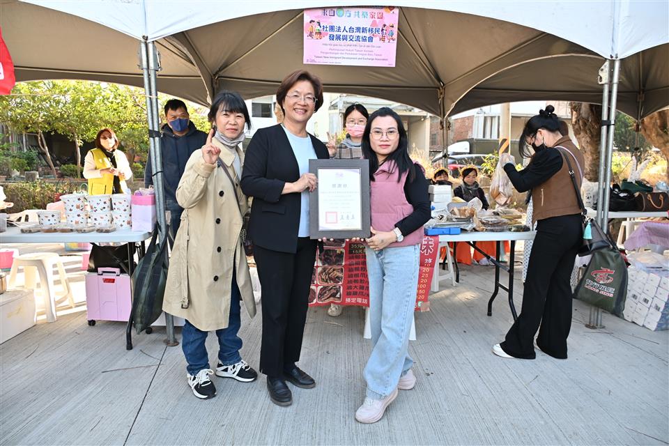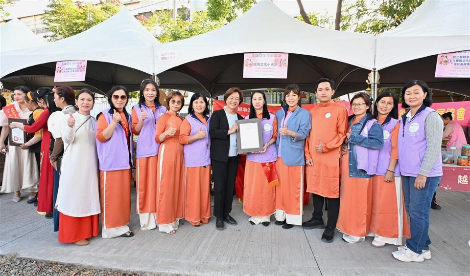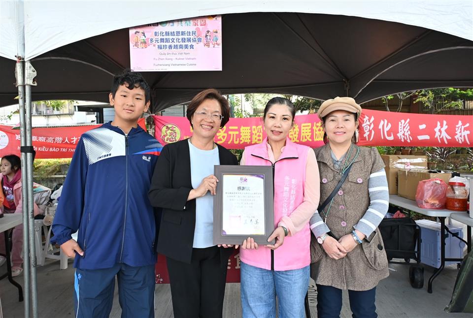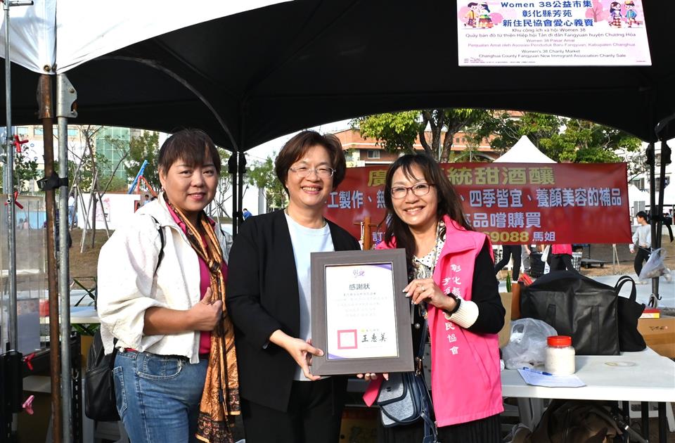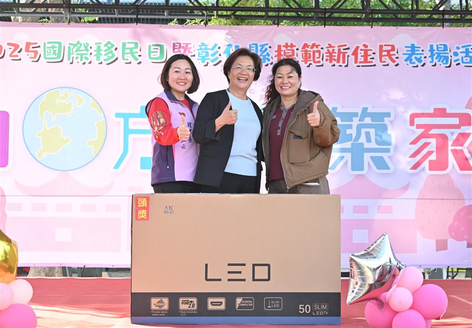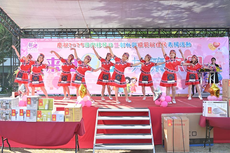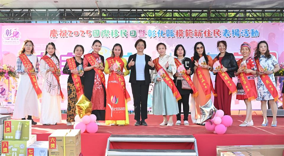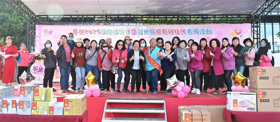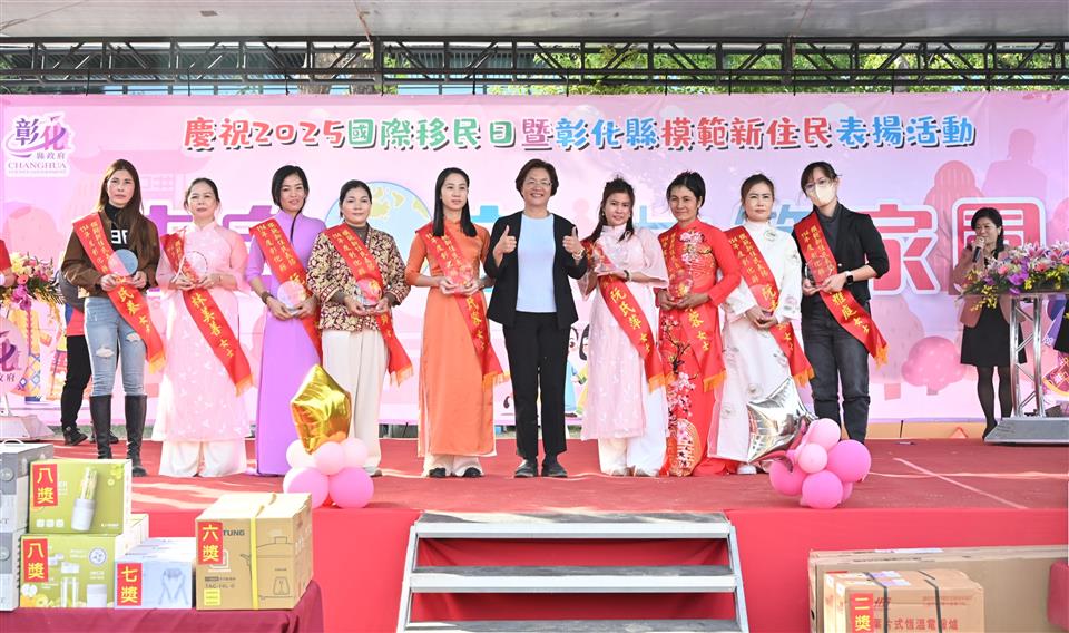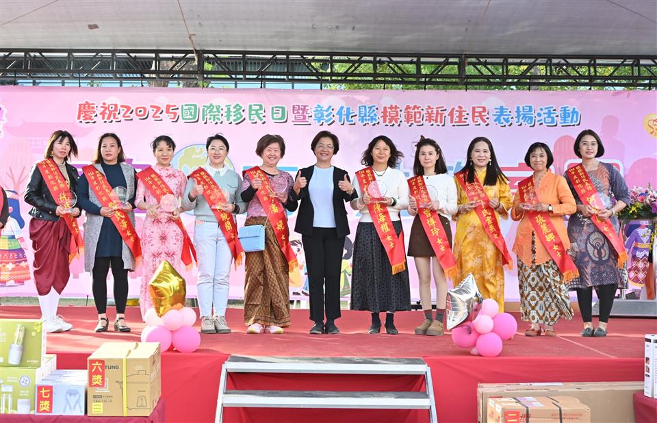 來自遠方,共築家園!彰化縣政府今(14)日下午在彰化市延平公園辦理「慶祝2025國際移民日暨彰化縣模範新住民表揚活動」,縣長王惠美出席表揚各鄉鎮市公所、社團與網絡單位推派出線的19組新住民楷模、25組模範新住民家庭及1組友善新住民社區,並邀請受表揚人及其家庭成員參與楷模餐會,同時表揚今年度參加Women 38公益市集的24個民間團體。王縣長表示,今年總共募集到103萬4,244元,全數捐助彰化縣自閉症肯納家長協會,用於建造肯納秀水作業所,這是第5年創造出百萬收入並捐獻給第5個社團,感謝大家共同打造關愛無國界的幸福,譜敘出臺灣社會的多元包容精神。 王縣長表示,12月18日是聯合國的國際移民日,為響應這個重要日子,特別於今天表揚模範新住民,並獻上最高敬意。他們來到這塊土地並用心耕耘,為家庭及地方奉獻,將他們跨文化優勢轉化為能量,成為本縣志願服務、語文通譯及拓展國際視野的重要推手,象徵著「多元互助」情懷的開枝散葉。 王縣長指出,另外感謝參加今年度Women 38公益市集的24個民間團體,拋磚引玉並積極公益。無論是新住民或Women 38公益市集,大家發揮對這塊土地的關懷,讓家庭、文化、語言與生活在這片土地融合,每個角落都因此充滿溫暖的能量。 王縣長強調,縣府團隊將持續致力於保障新住民的各項權益,彰化縣設有新住民家庭服務中心及4區(彰化區、田中區、員林區、芳苑區)新住民服務據點協助新住民融入社會。同時積極推動新住民友善社區及友善商家等創新方案,目的就是希望新住民朋友們在彰化能夠「共好、共融」,成為不可或缺的一份子。 內政部移民署彰化縣服務站主任陳駿璿表示,移民署於下鄉服務時,經常拜訪許多新住民朋友,在互動過程中學習良多,也深入了解許多新住民長期付出的努力。期盼新住民朋友的努力成為彰化縣的典範,讓這股正能量持續傳遞。 彰化縣新住民發展協會理事長李明輝代表致詞表示,感謝縣府多年來持續推動國際移民日活動,讓新住民朋友在這個充滿愛與包容的地方,安心、自在地生活著。 社會處表示,今年度彰化縣新住民人口來到兩萬五千人,來自世界各地的新住民朋友們帶著各種文化、語言、生活經歷,齊聚在這塊土地,感謝新住民朋友在許多領域的付出。透過表揚模範新住民、文化市集、舞蹈表演、異國文化DIY創作、異國童玩體驗、政令集點闖關及摸彩抽獎等精彩節目,期盼讓大家在輕鬆愉快的氛圍中感受多元共融精神! 與會貴賓有縣議員黃俊源、內政部移民署彰化縣服務站主任陳駿璿、彰化縣二林新住民關懷協會理事長陳立云、彰化縣結恩新住民多元舞蹈文化發展協會理事長唐曉秋、越南僑裔高階人才在台總會理事長范氏伶、彰化縣新住民發展協會理事長李明輝、彰化縣東南亞文化協會理事長邱莉亞、彰化縣融入社會新住民協會理事長葉金鳳、彰化縣新移民協會理事長宗菊梅、縣府參議柯呈枋、社會處副處長涂敏群、各級民意代表與地方仕紳。