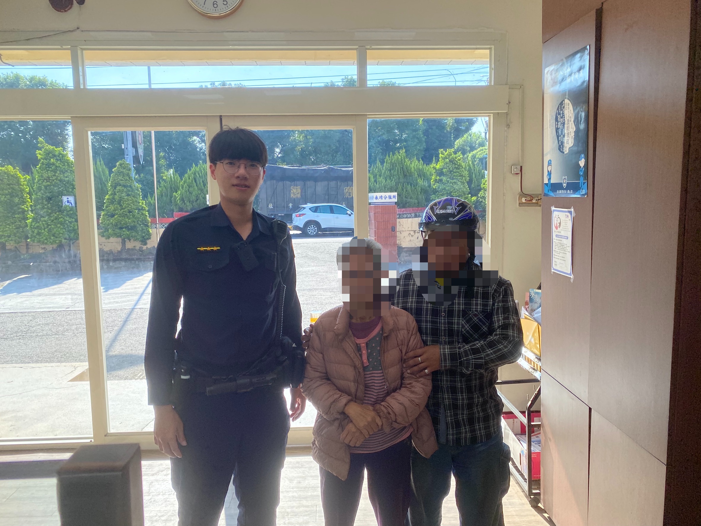 員林分局永靖分駐所警員卓浚賢於日前執行巡邏勤務時,接獲報案指稱永靖鄉瑚璉路有迷失老人。員警迅速到場,發現一名坐臥路旁的陳姓老婦,經了解,陳婦患有失智症狀,因自行外出步行後忘記回家的路,員警隨即上前安撫關心,穩定其情緒。 確認陳婦身體無礙後,陳婦僅表示需返家休息,員警遂將陳婦先帶返分駐所休息,員警隨即聯繫其家屬,並順利通知到家屬到所,陳婦家屬趕抵永靖分駐所後,對警員卓浚賢的熱心協助與即時援助表達萬分感謝,隨後將陳婦平安帶回社頭鄉住家休息。 員林分局藉此事件溫馨呼籲,家有失智或年長者,家屬應特別注意長輩動向,避免其獨自外出,建議在長輩衣物或身上配戴防走失手鍊或聯繫資訊,以便警方或熱心民眾能即時聯繫,確保長輩人身安全。警方將持續落實社區服務,守護居民安全。