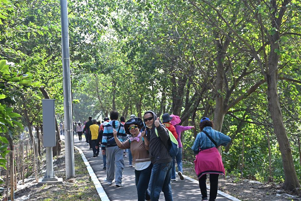 彰化縣政府為提升東螺溪整體遊憩品質及環境保育,推動「東螺溪(石埤橋至舊鐵橋)水綠廊道工程」,歷時2年,已於114年9月正式完工,今(21)日上午舉辦「東螺溪健康齊步走」活動,彰化縣長王惠美與會。王縣長表示,本案總經費2億4,917萬元,感謝中央經濟部水利署以及交通部觀光署補助2億421萬元,縣府在議長謝典霖及所有議員的支持下自籌4,496萬元,感謝周邊居民在施工期間的包容,期望透過點線面串聯,帶動地方觀光休憩發展。 王縣長表示,東螺溪是彰化母親之河,為改善以往東螺溪惡臭及髒亂的問題,縣府分別在108、110年提出「東螺溪水環境改善計畫」,核定總經費7.65億元,其中水綠廊道工程約佔2.5億元。水綠廊道全長約8.3公里,連結溪湖鎮、二林鎮及埔鹽鄉,自溪湖鐵路橋至埔鹽石埤橋間,沿線打通慢行通道、復育台灣原生種植栽,並打造3鄉鎮5處亮點設施,包括觀夕平台、欒樹隧道、東螺水學堂、花漾驛站、天盛鳥屋等潛力資源,為在地居民及遊客開創更友善、安全且富含特色的休憩廊道。 王縣長指出,東螺溪水綠廊道是縣府與地方接觸最多的合作,除了感謝立委謝衣鳯在中央大力爭取經費外,也感謝湖埔社區大學、NGO組織及地方居民的齊力協助,透過車流動線改道創造步行廣場空間,讓鄉親來此健行不用與車子爭道,可以放心悠閒觀景並享受大自然氛圍。今天的健行活動來回程約4.2公里,民眾可沿著廊道完成闖關任務集章後兑換小禮物,親身欣賞沿途美景及復古造景,藉此更認識這條屬於彰化的母親之河,也能體會縣府團隊多年來的用心。 埔鹽鄉長許文萍表示,東螺溪廊道除了結合現代也串聯在地特色,廊道在埔鹽有一個鳥巢式的裝置藝術,地方也努力維護廊道環境,歡迎大家蒞臨踏青並運動健行。 二林鎮長蔡詩傑表示,感謝王縣長縣府團隊對東螺溪的用心付出與親水規劃,提供鄉親一個休憩玩樂的好去處。 水利資源處表示,本工程内容包含串聯右岸慢行廊道8.3公里,創造300公尺欒樹廣場空間,新增綠化面積達15萬平方公尺,打造3鄉鎮5處亮點,除了能舒適安全地漫步於廊道上,也能在各亮點區域拍照留念。每年9月至10月的花季,欒樹廣場還有「東螺溪戀戀欒樹節」,可盡情捕捉欒樹綻放的花景。縣府將持續推動各項公共建設、水岸縫合及降低廢水汙染等改善計畫,期盼藉由景點特色的串聯,吸引更多遊客,提升周邊經濟效益。 與會貴賓有縣議員陳玉姬、立委謝衣鳯服務團隊、埔鹽鄉長許文萍、二林鎮長蔡詩傑、溪湖鎮民代表會副主席黃佳惠、湖埔社區大學執行長林淑玲、溪湖後備軍人主任陳祥吉、縣府水資處代理處長黃俊峰、副處長陳炳森、湖西國小校長顧淑芬、各級民意代表與地方仕紳等。