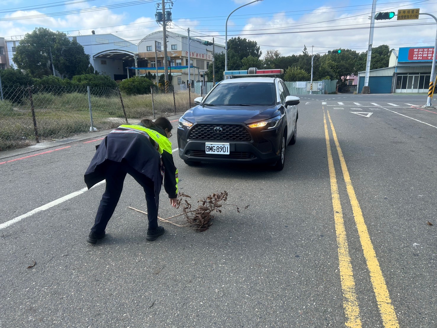 由於天氣不穩瞬間颳起陣風,導致路樹枝幹承受不起強風而攔腰折斷掉落路面影響行車安全,員警路過發現場協助將其清除恢復道路通行,備受路過駕駛及附近住家民眾讚許。 鹿港分局秀安派出所警員陳柳蓁,日前執行轄區巡邏勤務時,於8時35分許行經秀水鄉彰鹿路與彰水路1段附近,發現前方車輛有緊急變換車道之狀況心中便產生疑惑,直到陳員抵達現場時才看清楚狀況,因此立即下車徒手將樹枝移置安全路旁,使現場交通暫時恢復順暢,並通知相關單位前來善後,路過車主及附近民眾見員警捲袖清除的舉動感到相當窩心,頻頻感謝警方的幫忙,讓用路人能安心使用道路。 本案警員陳柳蓁處理事故態度積極、敏覺性、能及時給予關懷及協助,發揮同理心精神,能感同身受民眾焦急心態,並善用溝通技巧使民眾情緒恢復平穩,民眾對警方作為表達高度肯定與感謝,充分提升警察的正面形象。