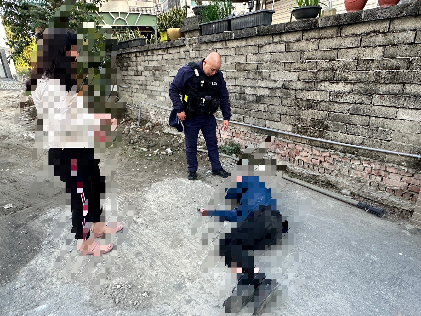 內安派出所警員李文裕、廖偉倫日前於執行巡邏勤務時,接獲通報稱田中鎮新聖路有民眾衣著單薄,倒臥於路旁,疑似需要緊急救護,警方立即趕赴現場。 警方到場後,發現有一身著藍衣黑褲之民眾倒臥在巷尾,雖然意識清楚,卻無法清楚表達姓名及年籍資訊,由於天氣嚴寒,室外溫度不到10度,警方先聯繫救護單位,並同時積極詢問周邊住戶,所幸有民眾認出該名男子身分,於是警方聯繫其家屬到場,家屬表示,吳男可能泥醉後外出,體力不支才倒臥路旁,後經醫護人員檢查,身體並無大礙,只是體溫過低,吳男表示無須就醫,自行返家休息即可,謝謝警方的用心。 田中分局分局長林鼎超呼籲,時值嚴重,又逢寒流,氣溫急遽下滑,民眾出門應作好保暖的工作,尤其心血管疾病患者,務必提高警覺,也感謝熱心民眾及時將路倒狀況通報警方,以避免可能的危難。若發現可疑或需救援情形,也請民眾不吝通報警方,共同守護每一位民眾的安全與健康。