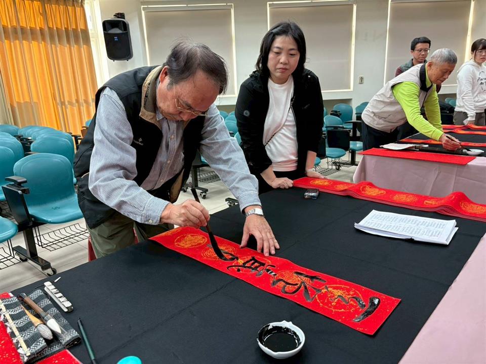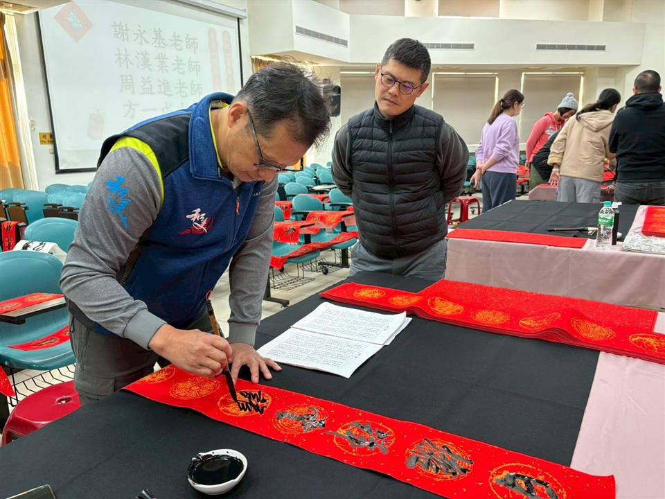 為迎接115年農曆新年到來,彰化警分局於115年1月8日上午,由分局長林英煌特別邀請書法大師周益進、謝永基、林漢業、方ㄧ成及張君玉等5位書法家蒞臨分局禮堂現場揮毫,以一筆一墨書寫新春祝福,讓平日嚴謹的警察分局,瞬間洋溢著濃厚的年節氣息與人文溫度。 活動現場墨香四溢,5位書法大師揮毫潑墨,寫下象徵平安、吉祥與希望的春聯佳句,不僅展現書法藝術之美,也讓參與活動的員警在忙碌勤務之餘,感受傳統文化所帶來的溫暖與療癒力量,現場氣氛溫馨而熱絡。 分局長林英煌表示:書法揮毫不只是迎新送舊的年節儀式,更是一種文化的傳承與情感的交流,期盼透過藝文活動,為同仁注入正向能量,也祝福新的一年警政工作順遂、同仁平安健康。且未來將持續結合文化藝術元素,讓警察機關不只是守護治安的場所,更是貼近人心、充滿溫度的公共空間,讓警民在文化交流中感受彼此的關懷與祝福。