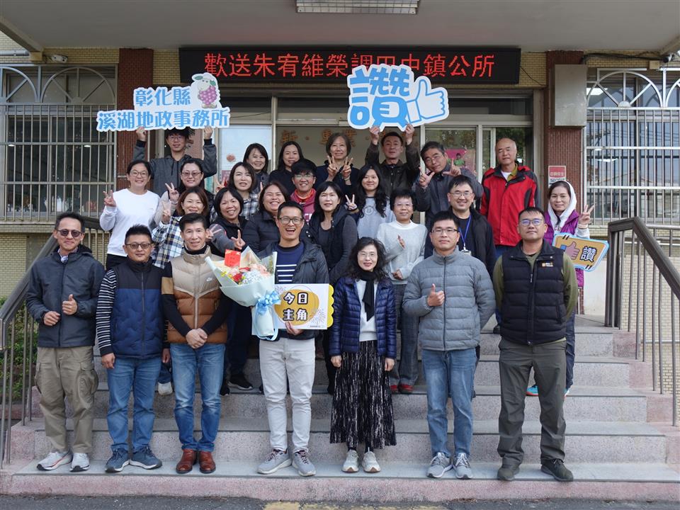 溪湖地政事務所測量員朱宥維先生業於115年1月5日榮調至田中鎮公所報到服務,同仁們懷著不捨與祝福的心情歡送,現場氣氛溫馨感人,大家齊聚一堂,祝賀朱先生於新職場大展宏圖。 朱宥維先生畢業於高雄師範大學電子工程學系,歷任財政部國有財產署南區分署及臺東地政事務所等單位,並於111年3月商調至溪湖地政事務所擔任測量員一職,期間秉持著專業精神與服務熱忱,對承辦案件詳細檢視,務必做到盡善盡美,其堅持為民服務的精神,深獲民眾與同仁一致好評。 溪湖地政事務所黃麗卿主任表示,朱宥維先生在溪湖地政服務期間不僅專業能力出眾,更以謙和態度帶動團隊合作,為地所留下珍貴典範。此次榮調田中鎮公所,相信能在新的崗位持續貢獻所長才華,成為地方政府推動土地政策與便民服務的重要助力。 業務單位:溪湖地政事務所 聯 絡 人:楊先生 電 話:8813119#309
