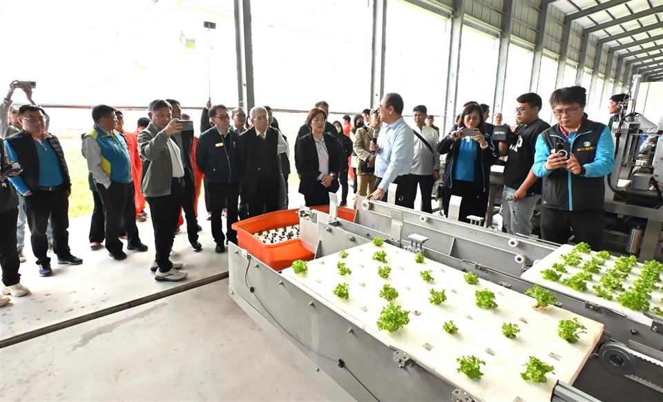 為推動農業升級與永續發展,彰化縣政府於1月15日舉辦「摩蔬大溪(股)公司」水耕農場參訪暨揭牌活動,彰化縣長王惠美與會。王縣長表示,站在占地3,300坪、年產150公噸,全國最大的深水式智慧水耕農場,令人格外振奮。回顧去(114)年4月參訪桃園大溪1800坪「日光蔬活」深水式水耕農場時,就對周慶安博士在智慧農業技術的深厚實力留下深刻印象,如今農場升級為企業化經營,成功在二林擴大規模,展現智慧農業落地生根的具體成果。 王縣長表示,「摩蔬大溪」水耕農場落腳二林,把高科技農業技術引入,水耕蔬菜農場的產量非常驚人,能供應主流通路的需求。同時也是彰化縣首座智慧農業示範場域,並與東海大學建教合作,期盼培育出更多優秀的農業人才。 王縣長指出,周慶安博士具有美國康乃爾大學花卉系碩士、國立臺灣大學園藝系博士學歷,曾在公職服務超過20年,擔任過宜蘭縣政府農業處長,也是2010年臺北國際花卉博覽會籌備與執行核心成員,兼具專業農業技術與行政實務經驗。結合高科技領域的專業人士,把技術導入二林,也邀請更多青農蒞臨觀摩,共同合作、相互成長。 周慶安博士表示,感謝彰化縣政府輔導「摩蔬大溪」成為智慧農業示範場域,行政流程非常快速,在最短時間內完成所有申請程序,也透過智慧農業補助計畫,核定補助100萬元,協助農場完善智慧環控與自動化設備。本次在二林打造全國最大的深水式智慧水耕農場,引進最新的現代化技術,希望能對社會做出貢獻。歡迎所有對農業有興趣的人或青農朋友,蒞臨了解並參與,透過分享經驗,將知識傳承給青農朋友。也希望以二林為起點,將業務拓展到海外地區。 農業處表示,「摩蔬大溪」二林農場面積達3,300坪,成為全國規模最大的深水式水耕蔬菜農場。場域全面導入自動播種、自動移苗、自動育苗管理系統,結合超微細氣泡溶氧技術、智慧化環境控制及冷鏈物流,使生產流程從前端栽培至後端配送皆能穩定且高效運作。農場自去(114)年10月起逐步量產,預估每年可穩定供應約150公噸生菜,供應全聯、聖德科斯等大型通路。 深水式水耕生產模式不受氣候與季節限制,可全年穩定生產無農藥、具產銷履歷的蔬菜,其土地利用效率為傳統土耕的數十倍,展現智慧農業促進土地資源永續利用的優勢。彰化縣政府透過智慧農業補助計畫,核定新臺幣100萬元,協助農場完善智慧環控與自動化設備。此外,摩蔬大溪已正式與東海大學(原明道大學)啟動建教合作,提供學生進入深水式智慧水耕場域實習,結合學術研究能量與實務農業經驗,建立智慧農業技術應用與人才培育基地。 與會貴賓有二林鎮長蔡詩傑、東海大學智慧暨精緻農業學位學程教授兼主任劉程煒、喬納斯科技股份有限公司董事長陳世昌、海德威電子工業股份有限公司董事長黃堃芳、總經理游賜傑、全華圖書公司董事長陳本源、國立臺灣藝術大學藝術管理研究所所長曾介宏、二林鎮農會總幹事邱士平、縣府農業處長郭至善、副處長蕭麗玲、各農會代表以及各級民意代表與地方仕紳等。