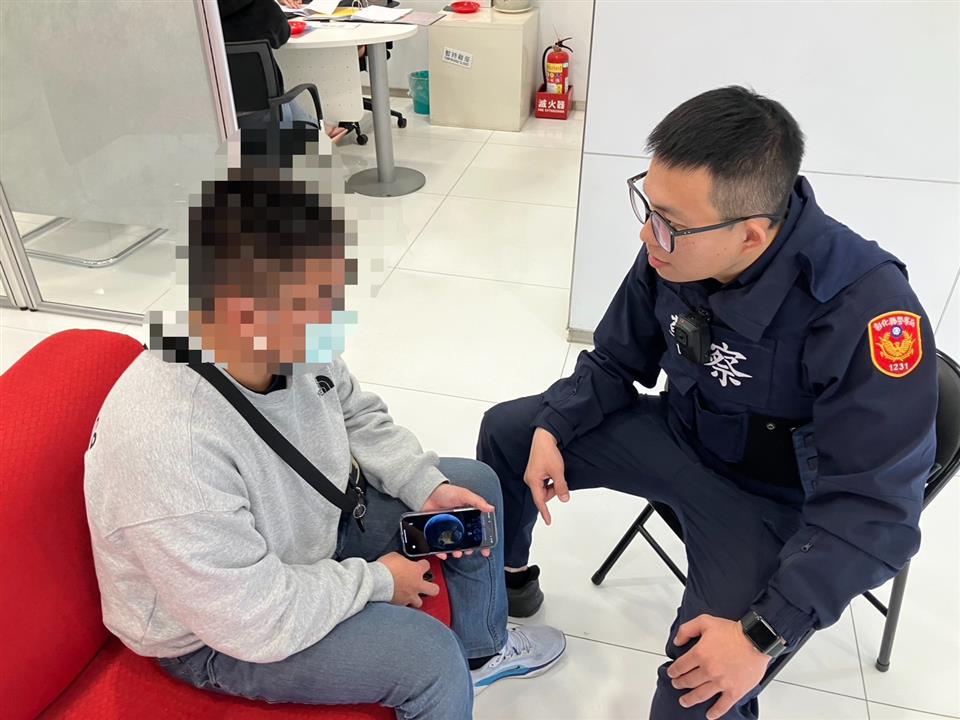 員林分局員林派出所副所長邱翊慆、警員朱玄武接獲轄內銀行通報,稱1名民眾阿文(化名)欲臨櫃提領現金,行員詢問款項用途民眾說詞反覆,疑似遭遇詐騙,員警獲報後立即趕赴銀行關心處理。 經了解,阿文先是向警方表示提領現金是為了購買汽車,但阿文對於車種、經銷商均無法回答,警方向阿文說明如是透過非正常購買程序,易遭受詐騙,後續阿文向警方表示近期有朋友傳送訊息告知之前投資的標的有損失,所以須及時注入金錢才能止損,阿文所稱之「朋友」僅是透過通訊軟體LINE結為好友後便開始以LINE談論、操作投資,經員警向其說明此為典型的「假投資」詐騙手法,在網路上自稱投資專家者皆是假投資詐騙的話術,並立即向阿文說明近來常見的詐騙態樣及實際案例,經員警耐心勸說,阿文驚覺受騙,當場取消提領款項,成功保住自身財產,本次成功攔阻新臺幣103萬元。 員林分局表示,凡標榜「高獲利、低風險、穩賺不賠」的投資訊息,極可能為詐騙話術,民眾切勿輕信網路廣告或陌生訊息,若遇到要求先匯款、轉帳或購買點數的情形,務必提高警覺,可撥打165反詐騙專線或向就近警察機關查證,避免落入詐騙陷阱。