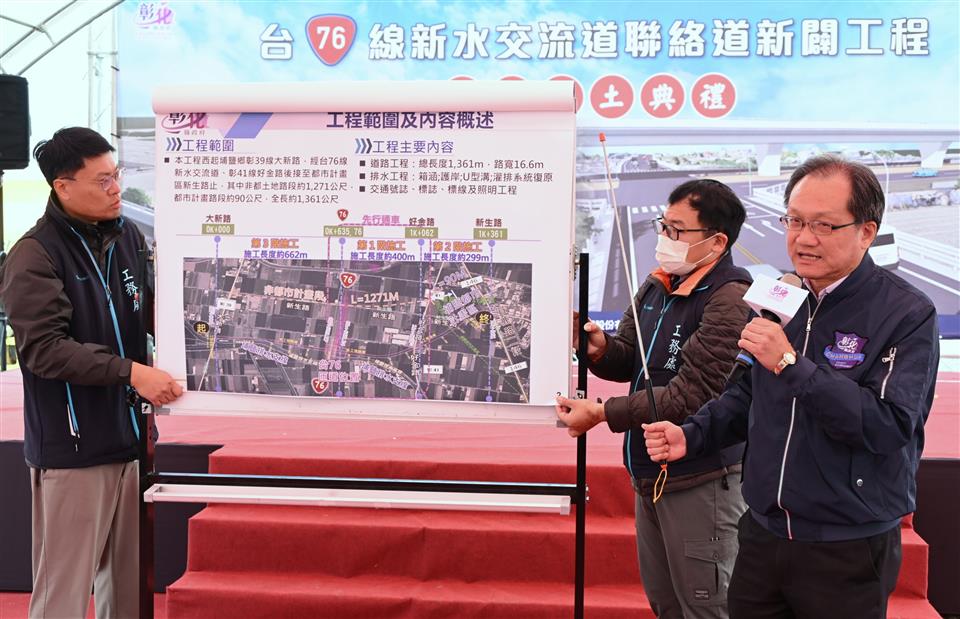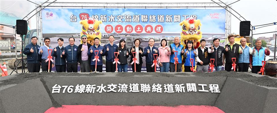 配合東西向快速公路台76線(原漢寶草屯線)台19線以西路段延伸工程計畫,並因應埔鹽鄉發展帶來的交通需求,縣府積極向中央爭取經費,推動「台76線新水交流道聯絡道新闢工程」。今(30)日上午在台電埔鹽變電所前舉行開工動土典禮,彰化縣長王惠美、交通部政務次長陳彥伯等貴賓與會。總工程經費5億7,145萬9,000元(中央補助4億6,288萬2,000元,縣府自籌1億857萬7,000元),工期720日曆天,預計於117年2月底前完工。另外為配合台76延伸工程今(115)年底通車期程,本工程新水交流道匝道至好金路路段預計於今年10月先行完工開放通行。 王縣長表示,很高興迎來埔鹽地區的大建設,感謝交通部補助經費,以及議長謝典霖及與所有議員的支持,成功推動這條台76線新水交流道聯絡道新闢工程。埔鹽不僅是「蔬菜故鄉」,更是「糯米原鄉」,農產必須藉由便利的交通建設才能有效率地運輸到其他縣市。相信新水交流道完工後,配合聯外道路,未來對農產品產銷作業會有極大助益。 王縣長指出,本項工程西起彰39線大新路,往東行經台76線新水交流道匝道、彰41線好金路,終點到新生路為止,總長度1,361公尺,道路寬度約16公尺。設計上考量道路行車安全與用路人使用需求,採快慢車分流方式規劃,配置2快車道及2機慢車道。通車後將能有效分擔北側台76線埔鹽交流道進入埔鹽都市計畫區的車流,減輕台19線、146線及彰36線的交通負荷。強化地方交通機能,並完善埔鹽鄉周邊路網,帶動區域發展與地方繁榮。 交通部政務次長陳彥伯表示,這項工程是中央與地方攜手合作的典範,台76線延伸線與新水交流道聯絡道的開闢,解決在地鄉親無法直接聯通快速道路的困擾。這項工程總經費約5.71億元,其中由中央補助約4.63億元,並交由縣府團隊執行,感謝王縣長縣府團隊多年來積極推動地方建設。中央目前總計投入超過105億元經費,全面改善彰化交通,涵蓋生活圈計畫、路面品質提升、停車場建設、公共運輸、交通安全強化及省道修繕等建設,期望透過便捷交通路網帶動地方產業及觀光,促進整體經濟發展。 陳玉姬議員表示,感謝中央補助及所有議員的支持,這條銜接到76線交流道的聯絡道才能順利開工,讓鄉親出入更便利。 埔鹽鄉長許文萍表示,今天出席台76線新水交流道聯絡道路新闢工程開工動土典禮,見證埔鹽地區交通建設的重要里程碑,工程完工後,將有效提升埔鹽道路網。期盼持續打造更完善、安全、便捷的交通環境,為埔鹽鄉永續發展,奠定更穩固的基礎。 工務處表示,建設是地方最強勁的心跳,也是持續提升區域整合及便利生活的重要途徑。縣府將持續爭取經費、積極推動各項重大建設,引領彰化產業及觀光更加發展。 與會貴賓有立委謝衣鳯暨議長謝典霖服務團隊、立委陳素月服務團隊、交通部政務次長陳彥伯、公路局長林福山、議員劉珊伶、陳玉姬、張春洋、陳重嘉、埔鹽鄉長許文萍、埔鹽鄉民代表會主席施春貴、副主席徐志訓、工務處長許俊宏、新聞處長李俊德、各級民代及地方仕紳等。