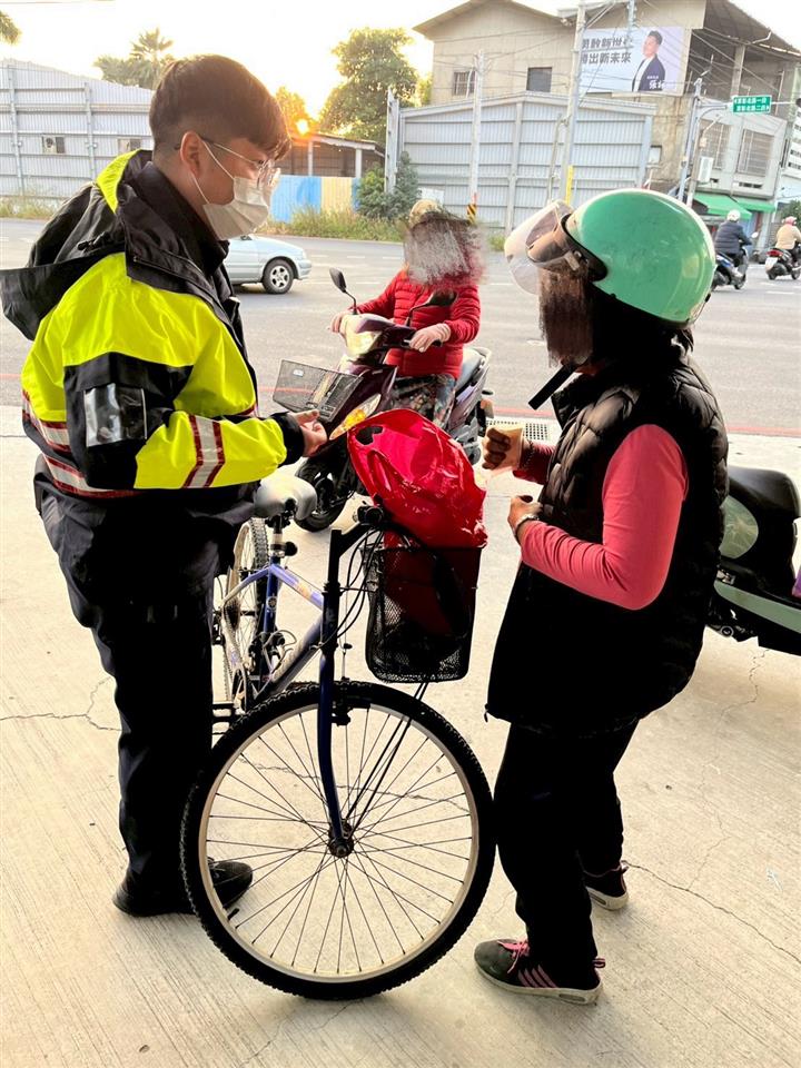 員林分局林厝派出所警員洪揚翰、陳韻婷日前接獲報案,指稱轄區內員林市員水路上某間超商門市,有1名女子向顧客借錢,並於店內休息,疑似需要協助。 警方迅速趕抵現場查處,經了解為江姓女子因身體不適,無法騎自行車返家,致在店內停留。員警即時關懷其身體狀況,耐心詢問後確認江女無就醫需求,且意識清楚、無生命危險。考量其行動不便及天色漸晚,警方秉持為民服務精神,主動協助載送江女安全返家休息,順利解決民眾問題,也讓江女獲得妥善照顧。 員林分局表示,警方除維護治安外,亦持續秉持同理心與熱忱,關懷民眾所需,適時伸出援手,展現警察溫暖、可 靠的一面,深獲民眾肯定。