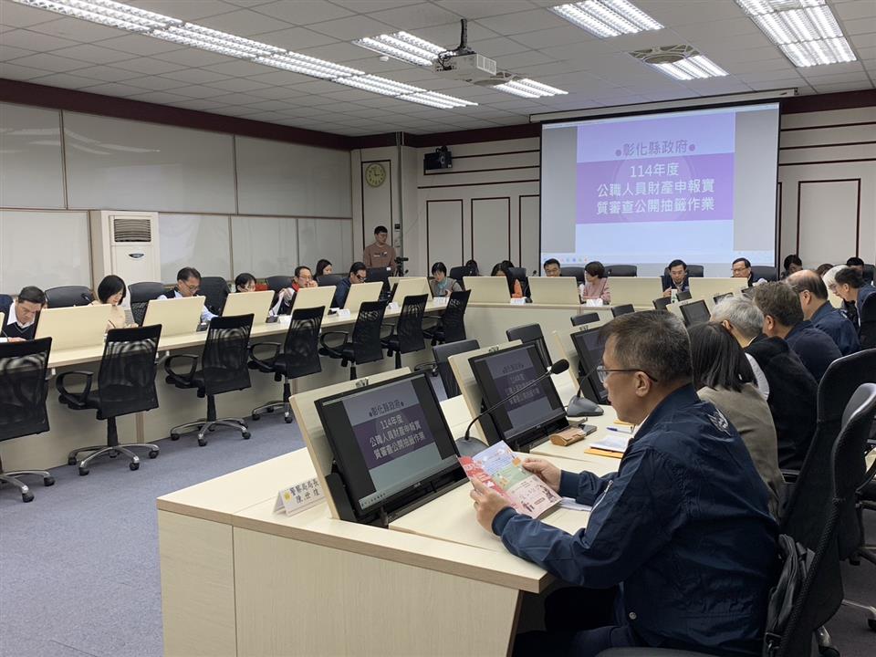 為落實陽光法案公開透明意旨,提升民眾對政府施政的信任,樹立公職人員廉潔形象,彰化縣政府於2月3日主管會報中,公開辦理114年度公職人員財產申報實質審查抽籤作業。此次抽籤全程由縣長王惠美主持,縣府政風處長擔任監察員,在各局處長共同見證下以電腦隨機方式抽選,確保作業公平、公正、公開。 政風處表示,今年度彰化縣政府暨所屬機關(含本縣消防局合併辦理者)、學校,受理申報人數為951人申報財產,依規定以10%比例隨機抽出96人進行「實質審核」,再從中依2%比例抽出2人,辦理「前後年度」財產申報比對審核。完整抽籤結果並公告於縣府政風處官網,確保資訊公開透明,讓清廉誠信持續前行,實現縣長「建立廉能政府:不濫用行政資源,不公器私用,依法行政,提高行政效率與行動力」之執政理念。 此外,為減輕申報義務人負擔,縣府政風處積極推動申報人透過法務部擴大授權介接財產資料,使申報人不再需要自行奔波查詢財產,並提供「走動式桌邊服務」,由專人親至辦公桌旁協助申報人完成授權及申報作業。今年度縣府財產申報授權比例已接近100%,充分落實《陽光法案》意涵,也進一步增進民眾對政府部門的信賴。