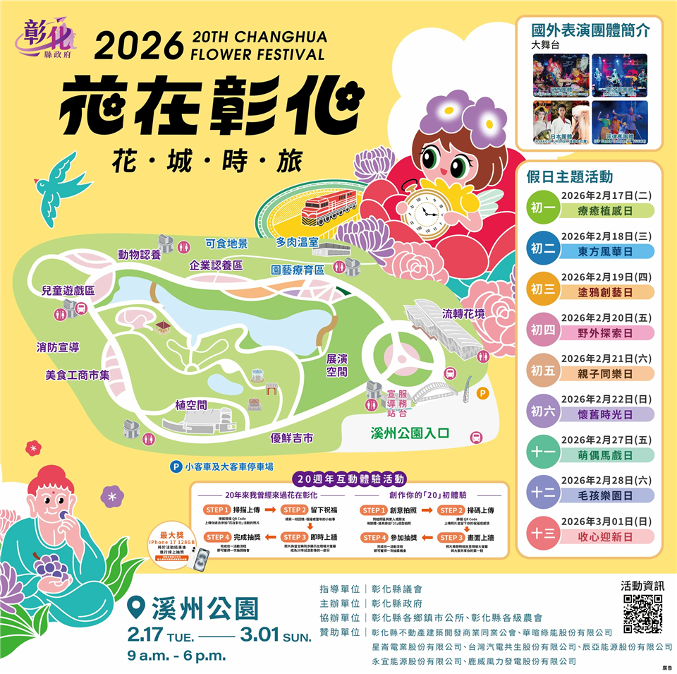 全台春節走春第一品牌「花在彰化」迎來20週年里程碑!彰化縣政府今(3)日於縣府中庭舉辦記者會,縣長王惠美宣布 2026「花在彰化」以「花城時旅」為主題,從大年初一(2月17日)至正月十三(3月1日)在溪州公園盛大登場。王縣長表示,今年花在彰化有三大亮點,一是繽紛的花卉饗宴,以「花城時旅」為活動主題,融合生活花藝、永續概念與沉浸式體驗;二是精彩的9大假日主題活動,從親子同樂到毛孩樂園、國際團隊演出及特色市集,推出「滿額送」及「兩倍券」促銷;三是「20週年主題互動體驗」,上傳精彩回憶,即時呈現電視牆、列印紀念照,還可抽 iPhone 17 與農特產好禮!邀請全國民眾「回娘家」,見證彰化花卉產業的轉型與美學。 王縣長表示,20年來「花在彰化」從一場地方賞花活動走到今天,已經成為全台走春第一品牌,更是許多家庭每年新春的幸福記憶。2026年以「花城時旅」為主題,將20年的情感、記憶與想像融入其中,整合主題花展、生活花藝、多元展演、特色市集、園藝療育、可食地景、多肉溫室、食農教育與動物認養,打造結合文化、觀光、產業與生活美學的花卉盛會。讓走春不只是賞花,更是一趟能仔細品味的深度之旅。 王縣長指出,今年的展館處處皆驚喜,將彰化豐富的園藝產業提升至生活美學層次,「流轉花境」主展館分為五大主題區,從「花啟時分」跨越到「花漾未來式」;首度開放「多肉溫室」, 集結各類仙人掌與多肉植物,營造出極具生命力的異域森林;「植空間」與「園藝療育區」,則提供食農教育、園藝手作課程,針對現代人設計「綠意伸展體驗」,讓家長與上班族在春節期間能徹底放鬆身心。 王縣長進一步表示,活動期間規劃9大假日主題,從大年初一的療癒植感日、初二東方風華日、初三塗鴉創藝日、初四野外探索日、初五親子同樂日、初六懷舊時光日、大年十一萌偶馬戲日、年十二毛孩樂園日到年十三收心迎新日,玩法天天更新。此外,更重金邀請來自巴西、摩洛哥、日本及菲律賓的國際表演團隊演出。彰化優鮮及美食市集部分,也特別推出「滿額送」及「兩倍券」促銷,讓鄉親買到最優質的農產美食。 議員李俊諭代表致詞時表示,「花在彰化」正式邁入第 20 年,擔任議員以來一路看過歷任縣長,做的最用心的當屬王縣長。王縣長考量到長輩與鄉親的體力,規劃停車場在中央路旁邊,讓大家不用走遠路就能入園參觀,這種細微處的貼心,就是體恤鄉親的證明。除了溪州公園的主展區,還投入千萬元優化森林區及周邊環境,讓大家來溪州不只能看花,還能舒適散步。 溪州鄉長江淑芬代表致詞表示,欣逢花在彰化20周年,王縣長縣府團隊將農業融入人文,加上全國最大花卉市場田尾的花卉,以「花城時旅」為主題規劃5大館,歡迎全國好朋友來打卡,到田尾拈花惹草,萬景藝苑也值得欣賞,也記得把錢「花」在彰化。 彰化縣農會總幹事呂佩臻表示,在王縣長縣府團隊的用心下,花在彰化已經邁入第20年,過年期間春遊首選就是花在彰化,除了看花卉、品嘗美食外,還有26鄉鎮的農特產品可以開心選購。 彰化縣政府表示,誠摯邀請全國民眾,今年春節一定要來彰化,一起踏上20周年的「花城時旅」。白天在溪州公園賞花,晚上逛八卦山月影燈季,保證讓大家在彰化度過最難忘、最精彩的春節假期! 與會貴賓有縣議員李俊諭、陳玉姬、議員温芝樺服務團隊、溪州鄉長江淑芬、田尾鄉長許淑美、農業部農村發展及水土保持署南投分署副分署長陳存凱、臺中區農業改良場分場長陳盟松、交通部觀光署參山國家風景區管理處副處長廖錫標、彰化縣農會總幹事呂佩臻及各農會代表、彰化縣青農聯誼會總會長孫崇鈞、縣府秘書長蔡明娟、農業處長郭志善、新聞處長李俊德、各級民意代表與地方仕紳。 官方活動資訊: 白天賞花:溪州公園-花在彰化 活動期間:115/2/17~115/3/1 9:00~18:00 活動官網:https://www.ch-flower2026.com.tw/ 夜間賞燈:八卦山-月影燈季 點燈期間:114/12/27~115/3/1 17:30~22:00 活動官網:https://ch-rody.mystrikingly.com/
